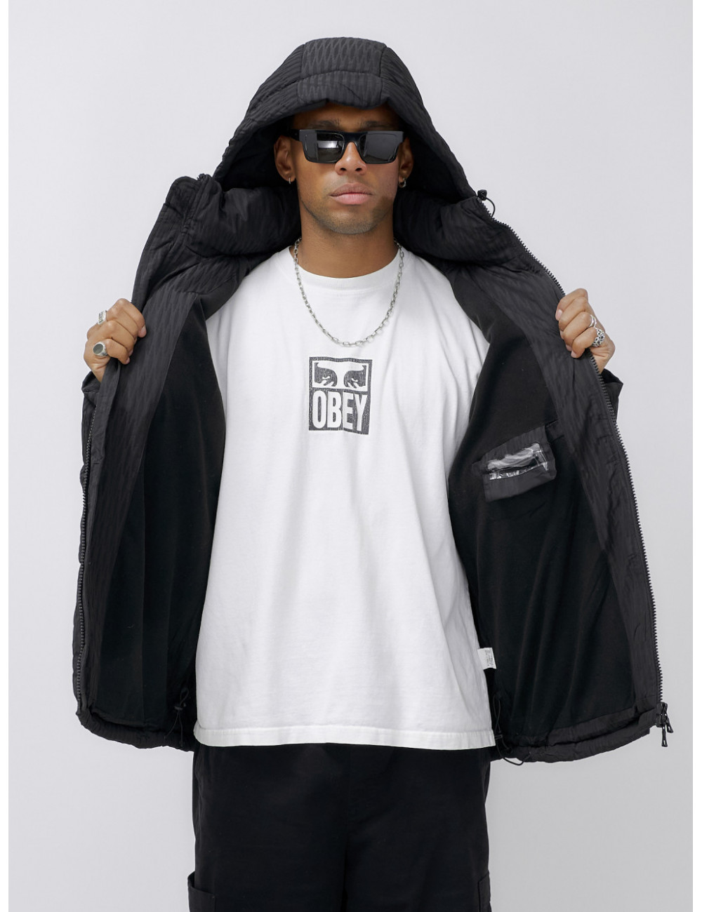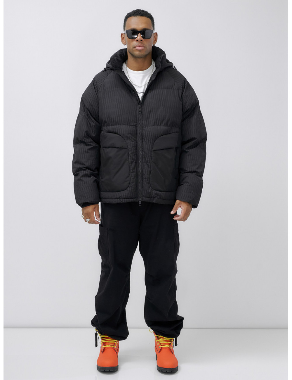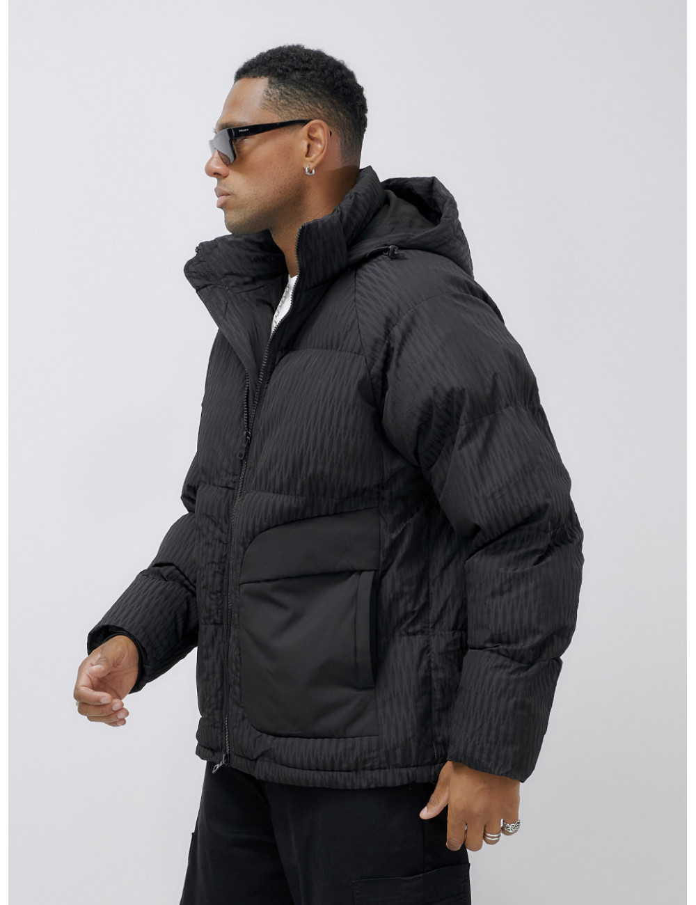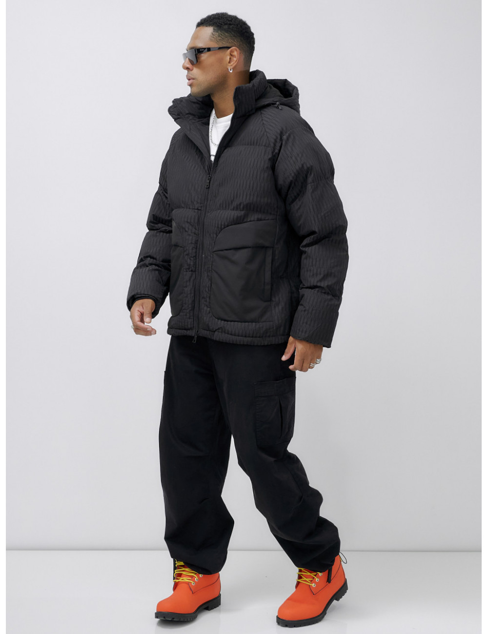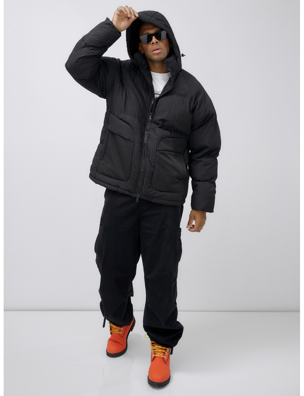 Чёрная мужская зимняя куртка с капюшоном для молодёжи