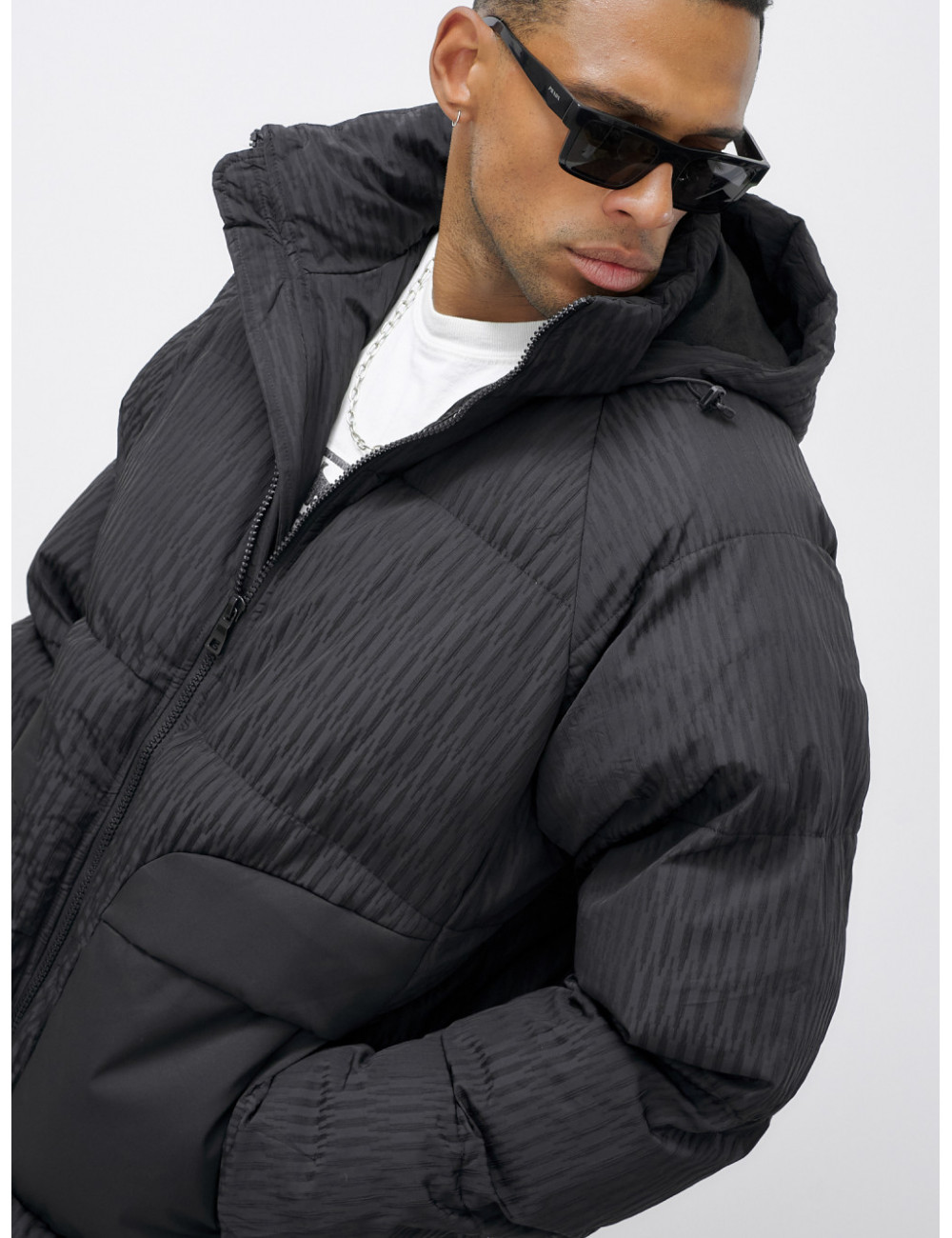Купить за 14352 ₽ в Москве Чёрная мужская зимняя куртка с капюшоном для молодёжи Мужская зимняя куртка свободного кроя