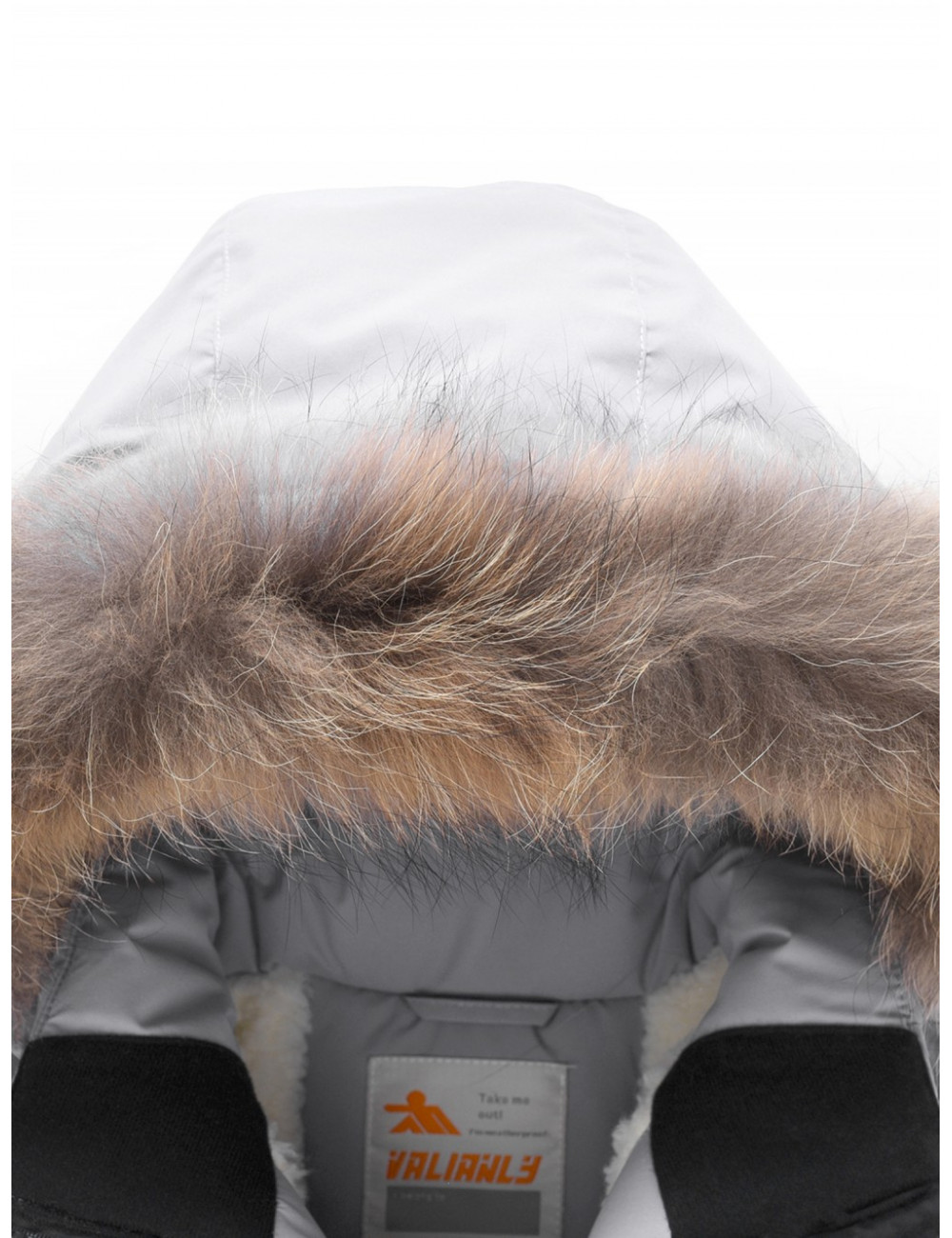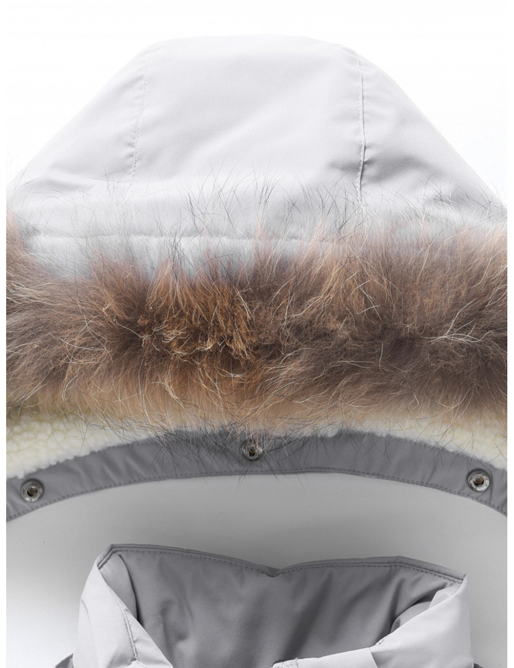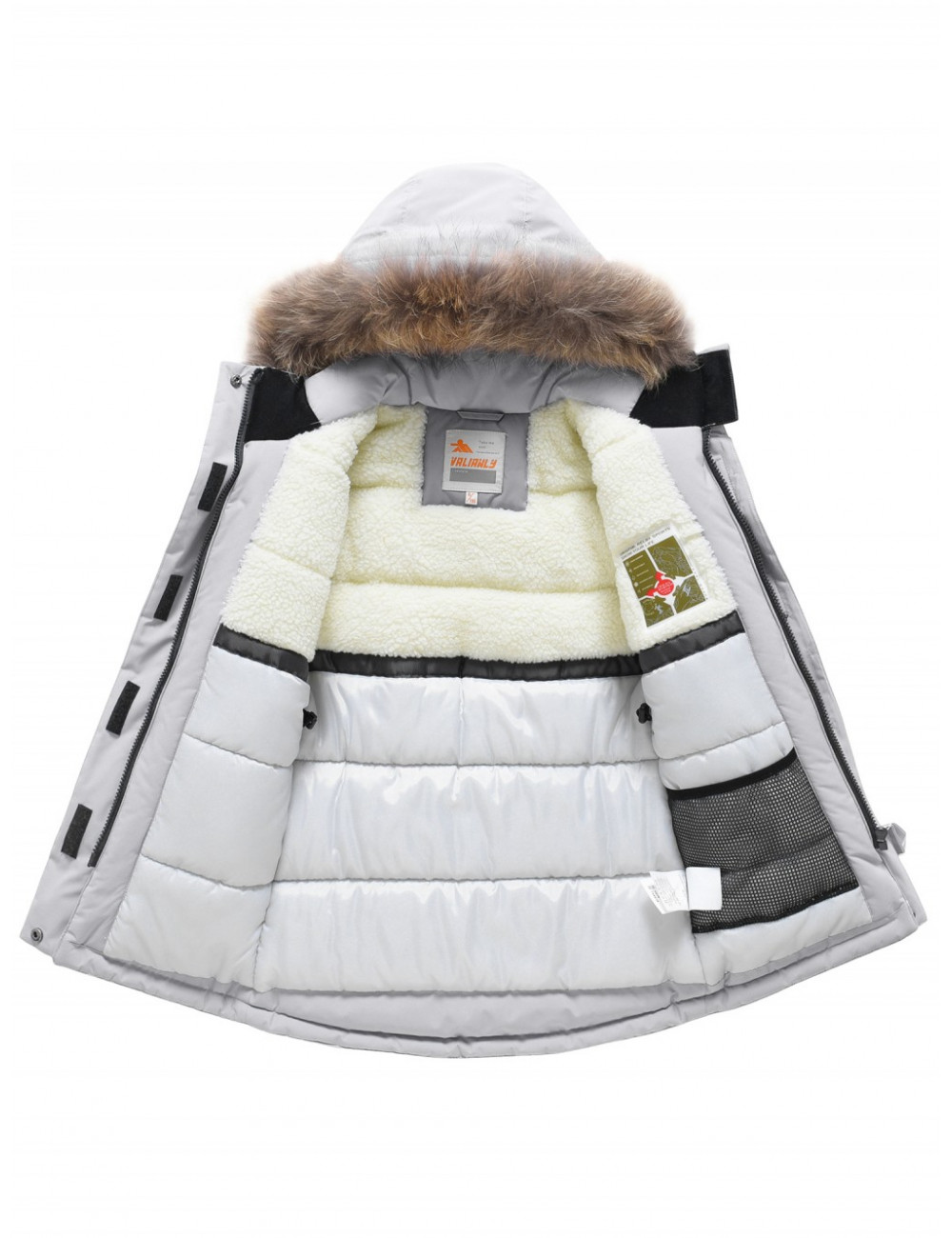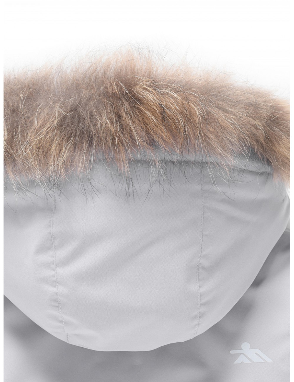 - Объёмный капюшон с роскошным мехом, который защищает от ветра и снега.