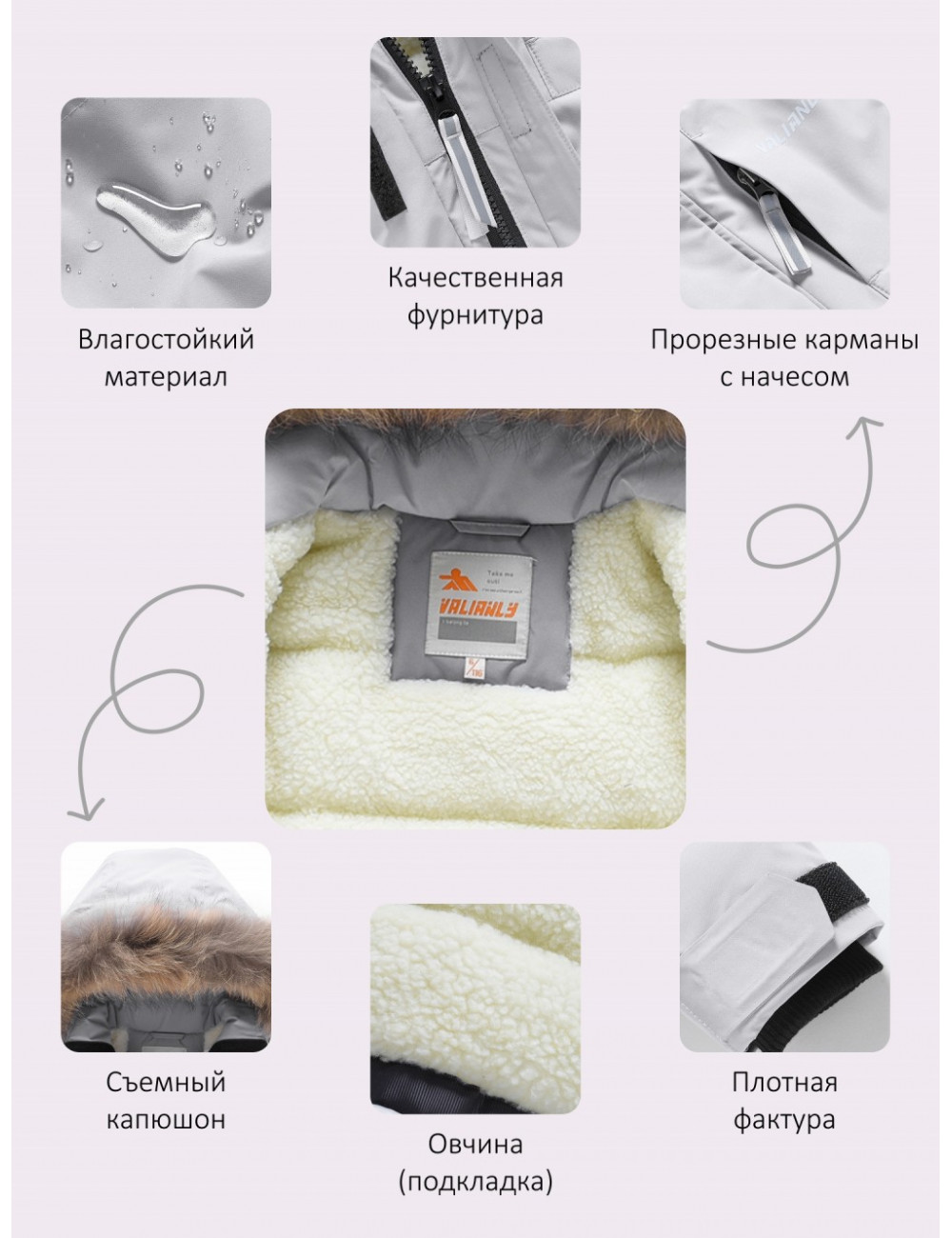 - Прочные молнии и удобные липучки на манжетах для надёжной фиксации.