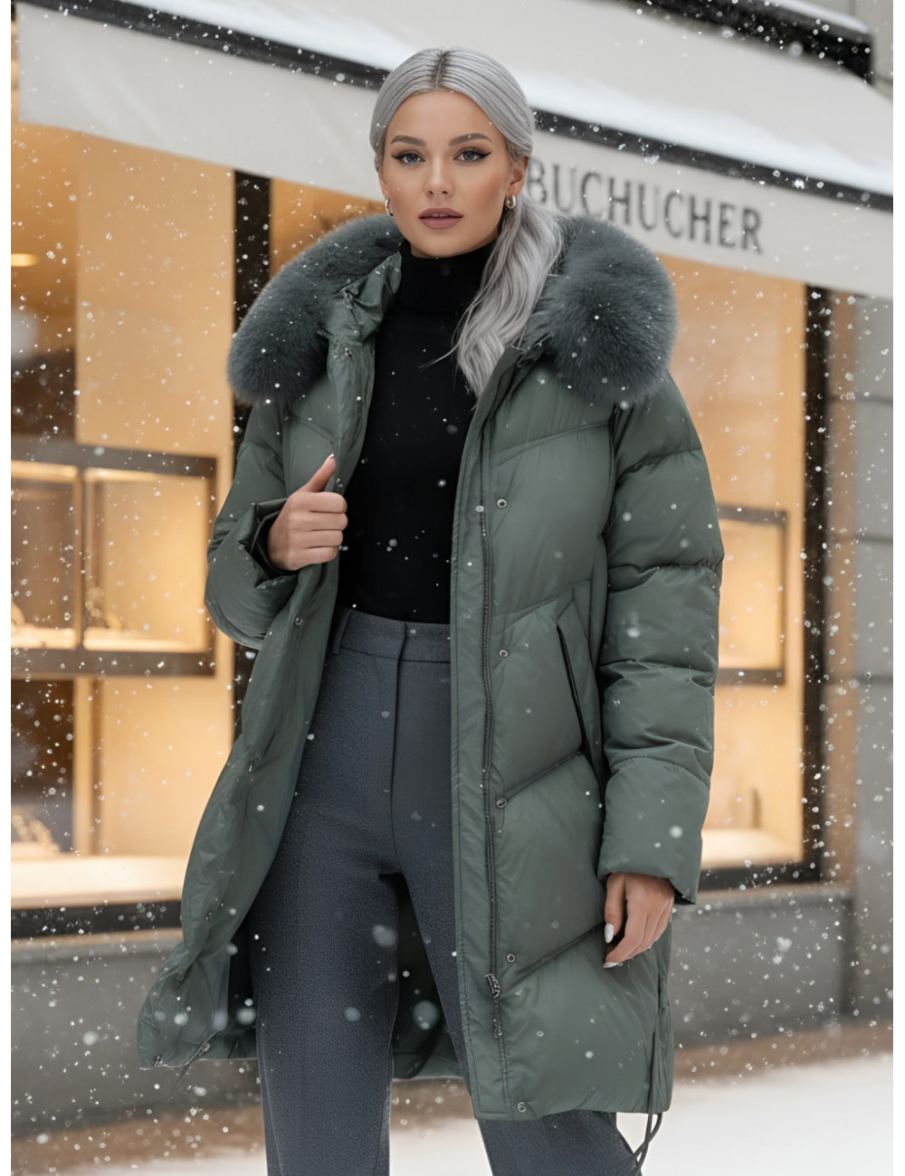 Откройте для себя новый уровень зимнего комфорта с пуховиком от Ketsi! Подчеркните свой статус и безупречный вкус. Создавайте великолепные образы для офиса, деловых встреч и активного отдыха! Доставка по Москве и Московской области Длинный пуховик двубортный хаки с мехом и капюшоном