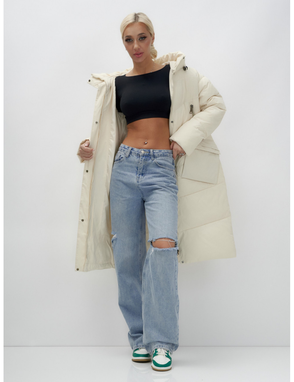Не упустите шанс стать обладательницей этого стильного пуховика! Закажите его прямо сейчас и наслаждайтесь зимой с комфортом и элегантностью! Доставка по Москве и Московской области Длинный женский пуховик с капюшоном, бежевый.