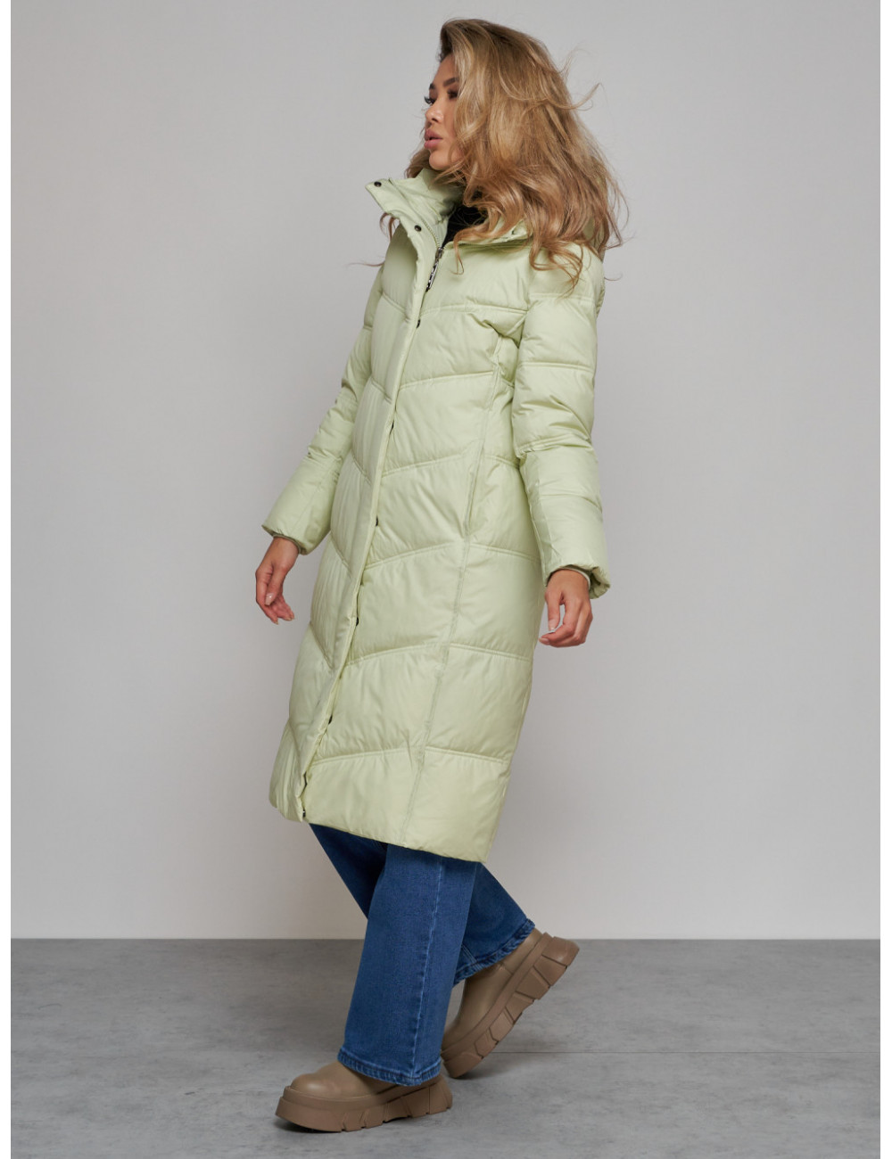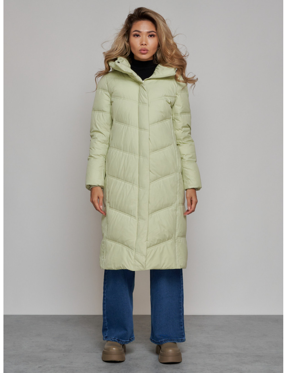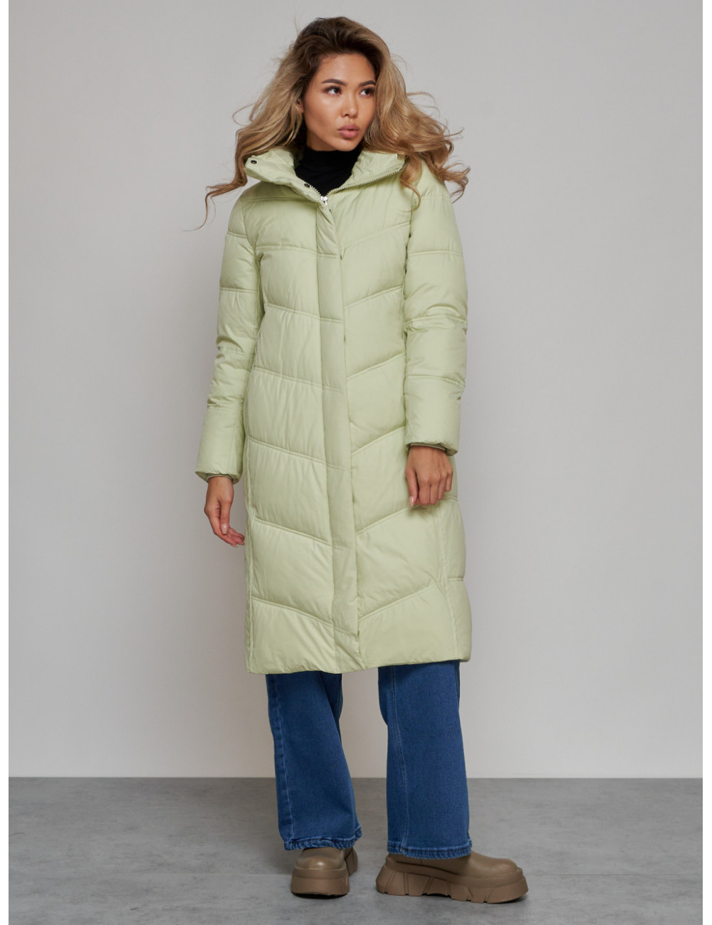 Не упустите возможность приобрести качественный и стильный пуховик от Ketsi и чувствовать себя комфортно в любую погоду! Доставка по Москве и Московской области Длинный пуховик для женщин зимний утеплённый светло-зелёный