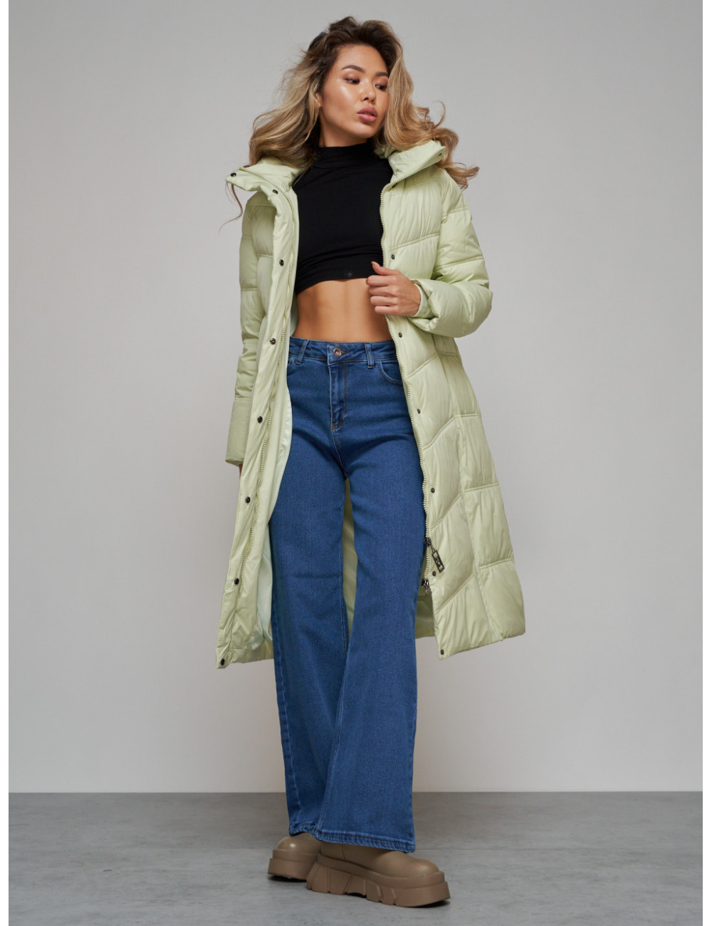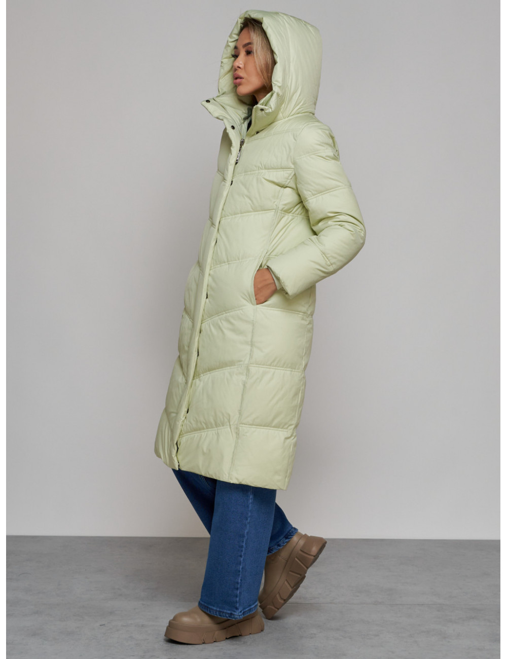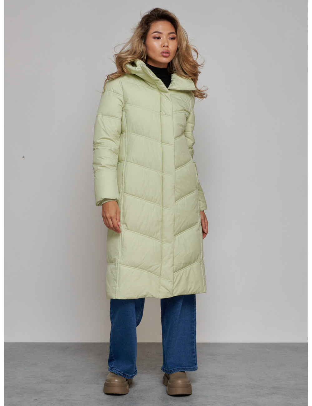 Не упустите возможность приобрести качественный и стильный пуховик от Ketsi и чувствовать себя комфортно в любую погоду! Доставка по Москве и Московской области Длинный пуховик для женщин зимний утеплённый светло-зелёный