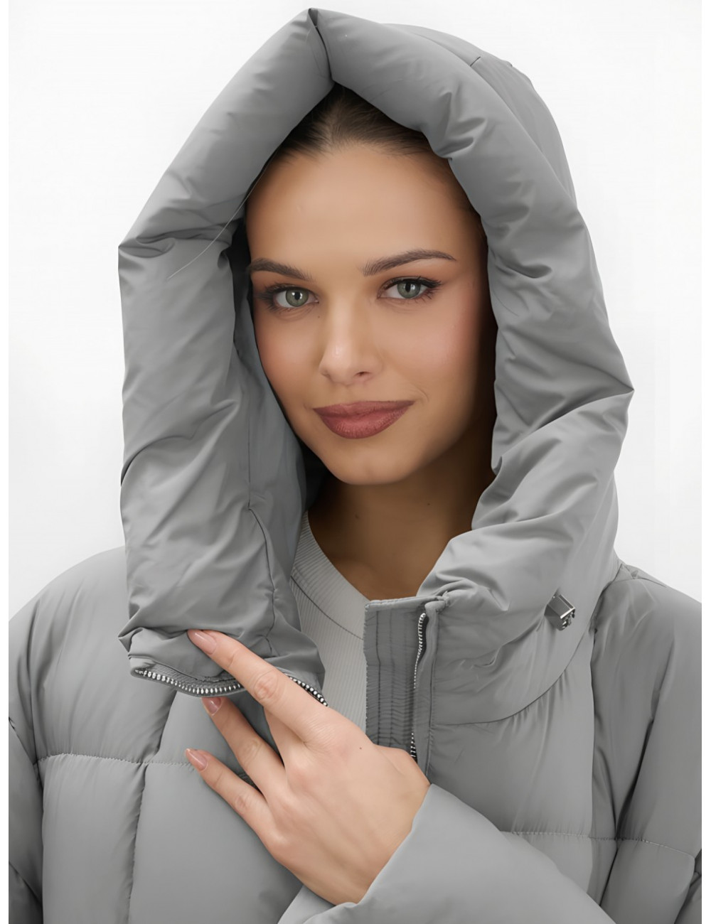 Не упустите возможность добавить этот универсальный пуховик в ваш гардероб! Заказывайте прямо сейчас и наслаждайтесь зимой в полной мере! Доставка по Москве и Московской области Длинный женский пуховик с капюшоном, серый.