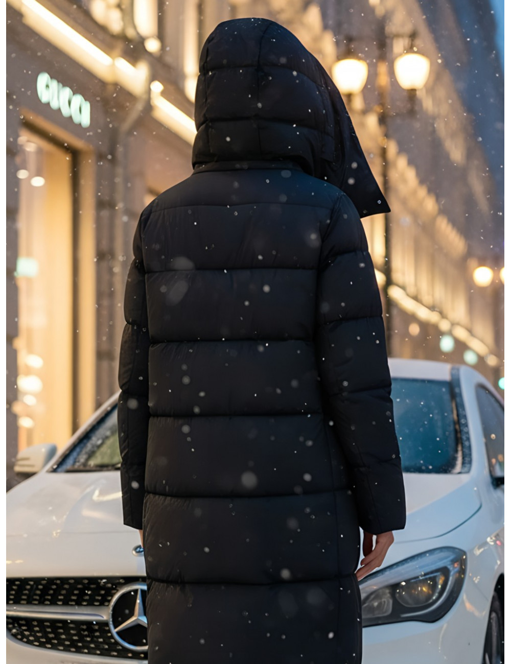 Не упустите возможность стать обладательницей этого великолепного пуховика из коллекции осень-зима 2025 от Ketsi! Доставка по Москве и Московской области Длинный женский пуховик с капюшоном, чёрный.
