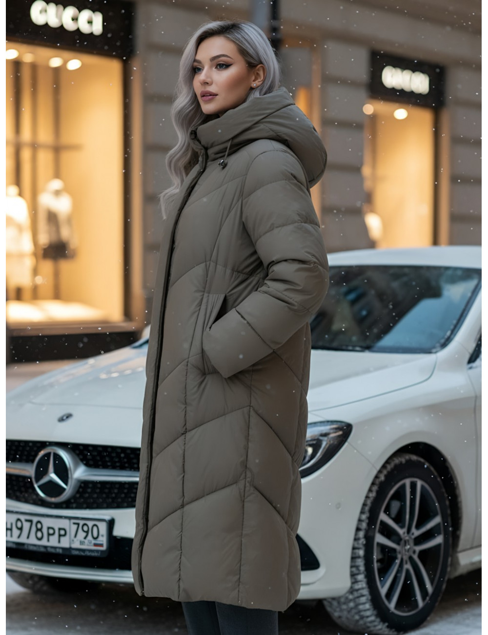 Стёганная фактура придаёт изделию стильный вид. Декоративные элементы, такие как капюшон, карманы и манжеты, подчёркивают функциональность и эстетику.