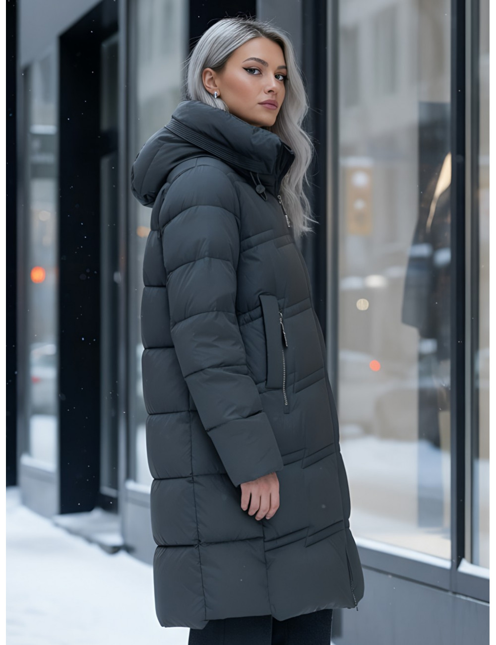 Удлинённый покрой до колена и прямой/свободный силуэт подчёркивают вашу фигуру, придавая вам стильный и современный вид. Пуховик подходит как для офисных будней, так и для повседневных прогулок.