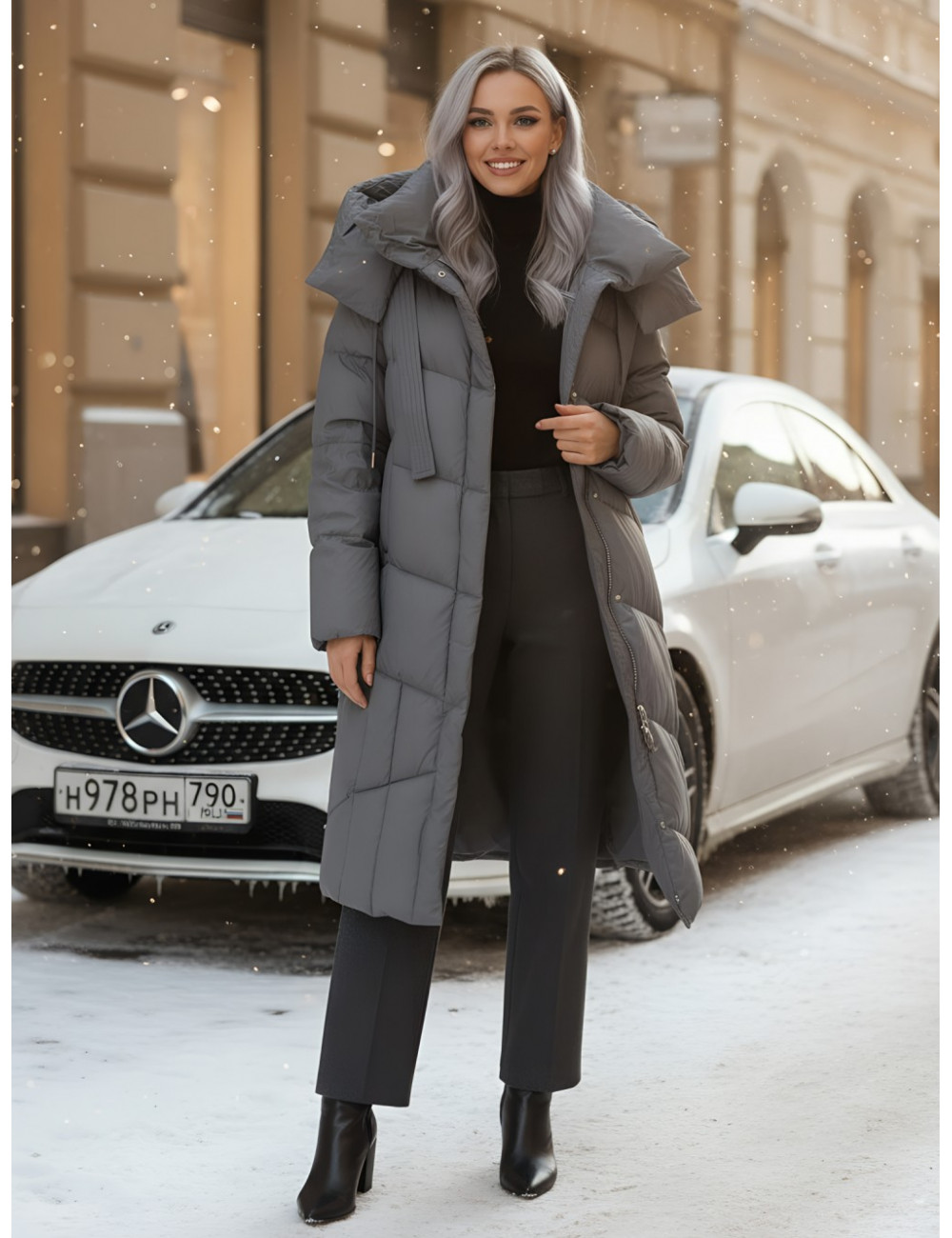 Не упустите шанс стать обладательницей этой тёплой и стильной модели из коллекции «Осень-зима 2025»! Закажите пуховик от Ketsi прямо сейчас и позвольте себе наслаждаться комфортом и стилем в любую погоду! Доставка по Москве и Московской области Длинный пуховик для женщин тёмно-серого цвета с капюшоном.