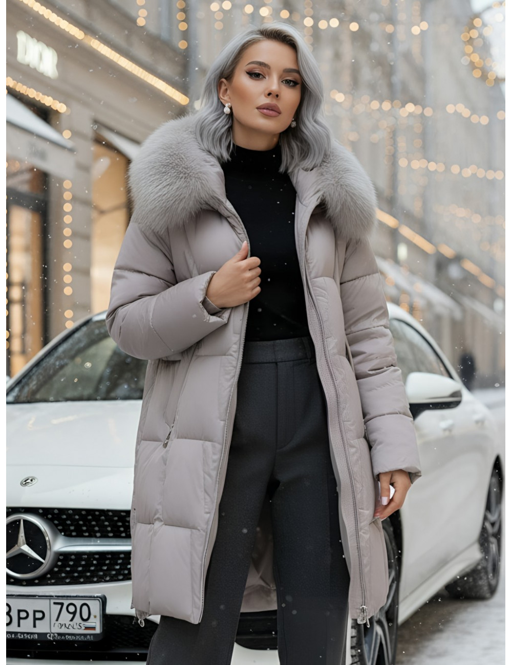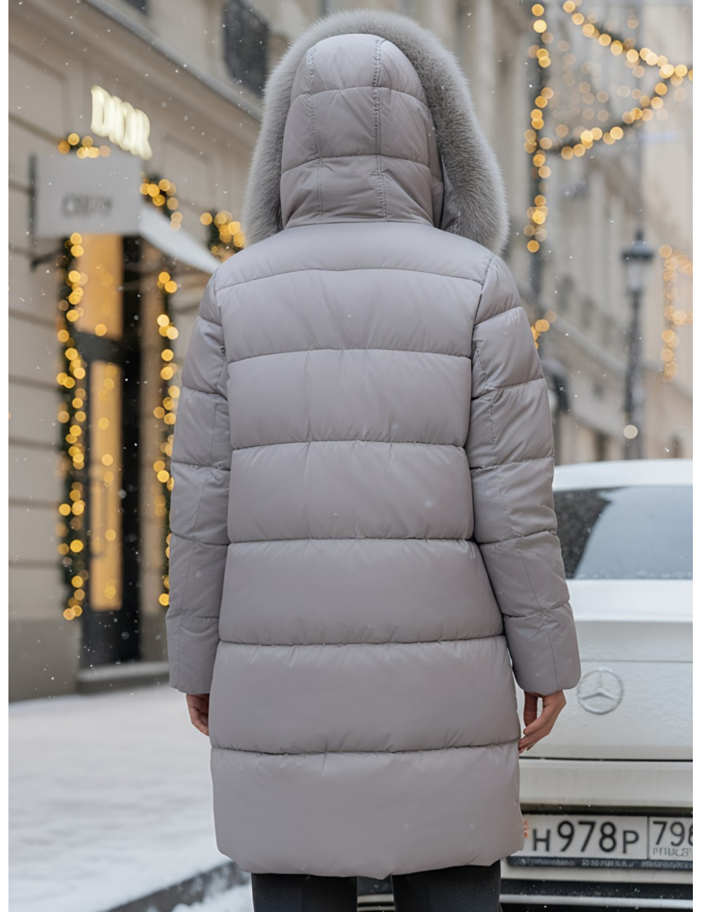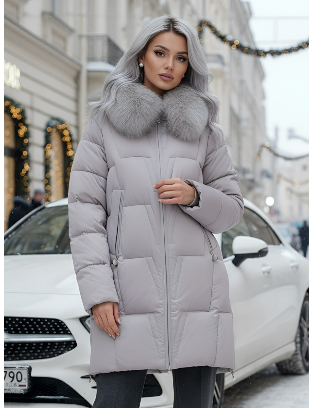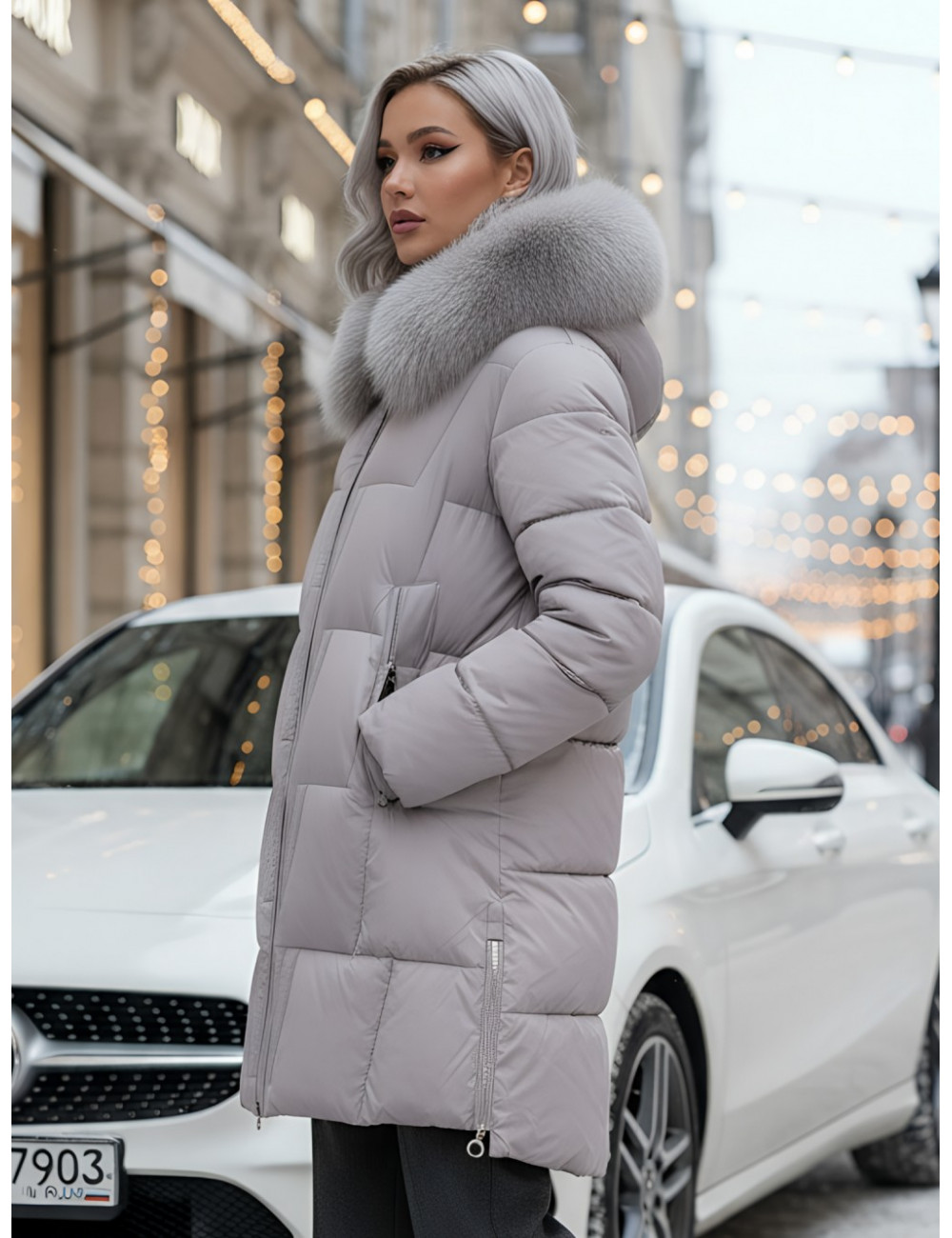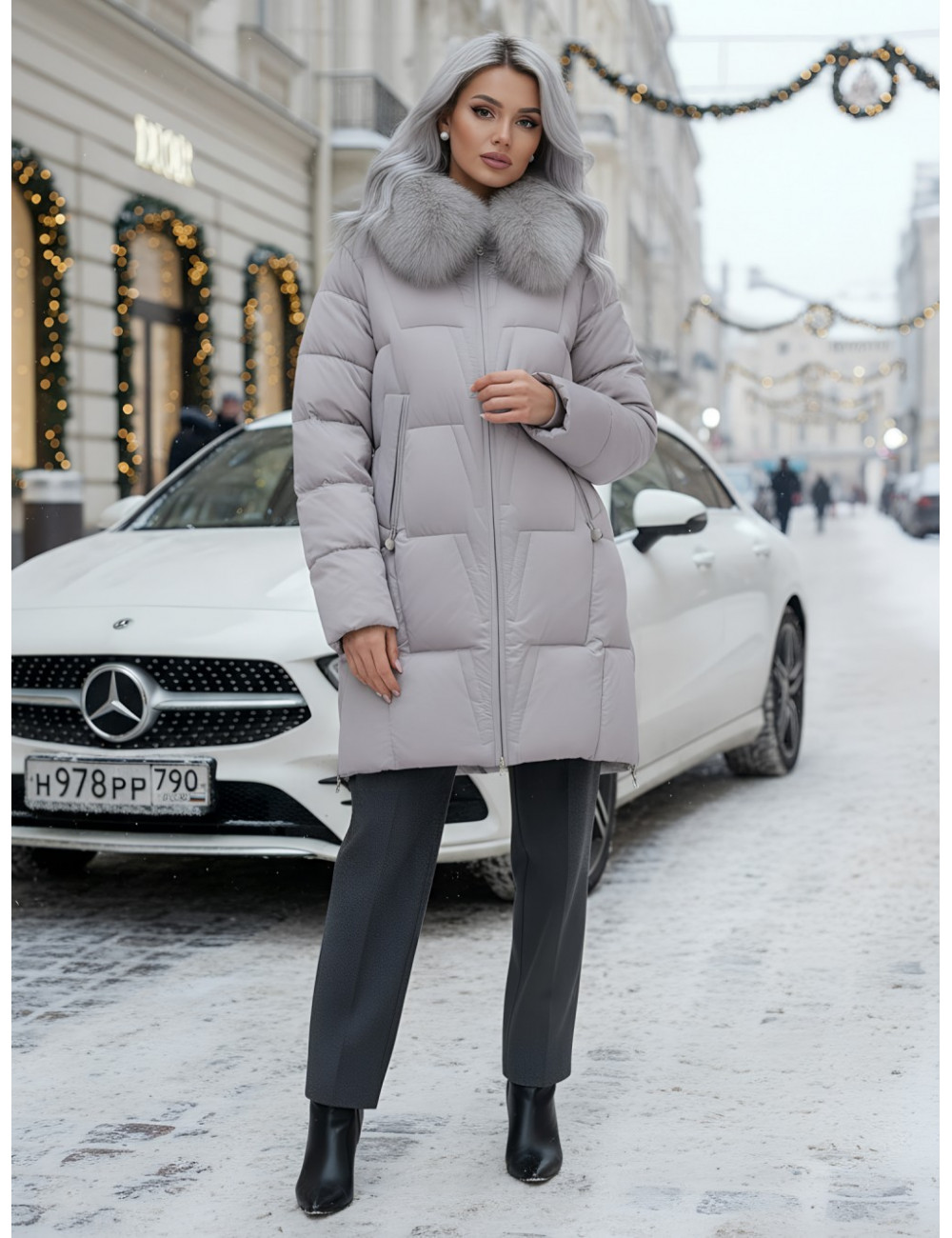 - Изысканный дизайн: съёмная опушка из натурального песца создаёт неповторимый силуэт.
