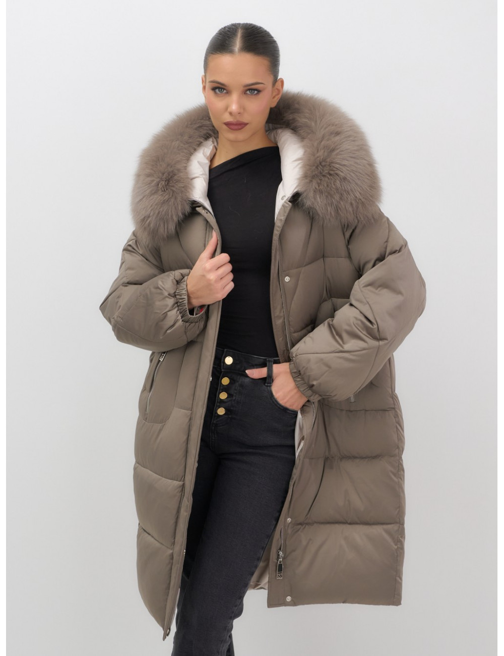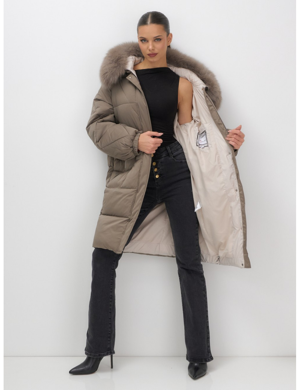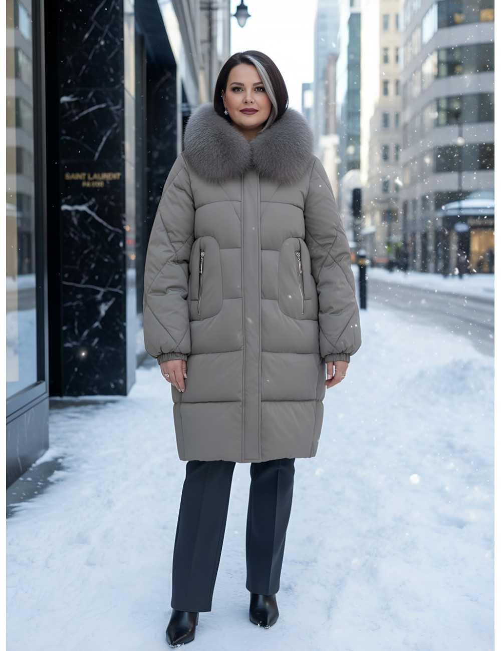 - Стильный дизайн. Пуховик представлен в четырёх благородных оттенках: глубокий чёрный, роскошный коричневый, изысканный светло-коричневый и стильный горчичный. Удлинённый силуэт до колена и свободный крой. Изысканная съёмная опушка из натурального песца создаёт роскошный образ.