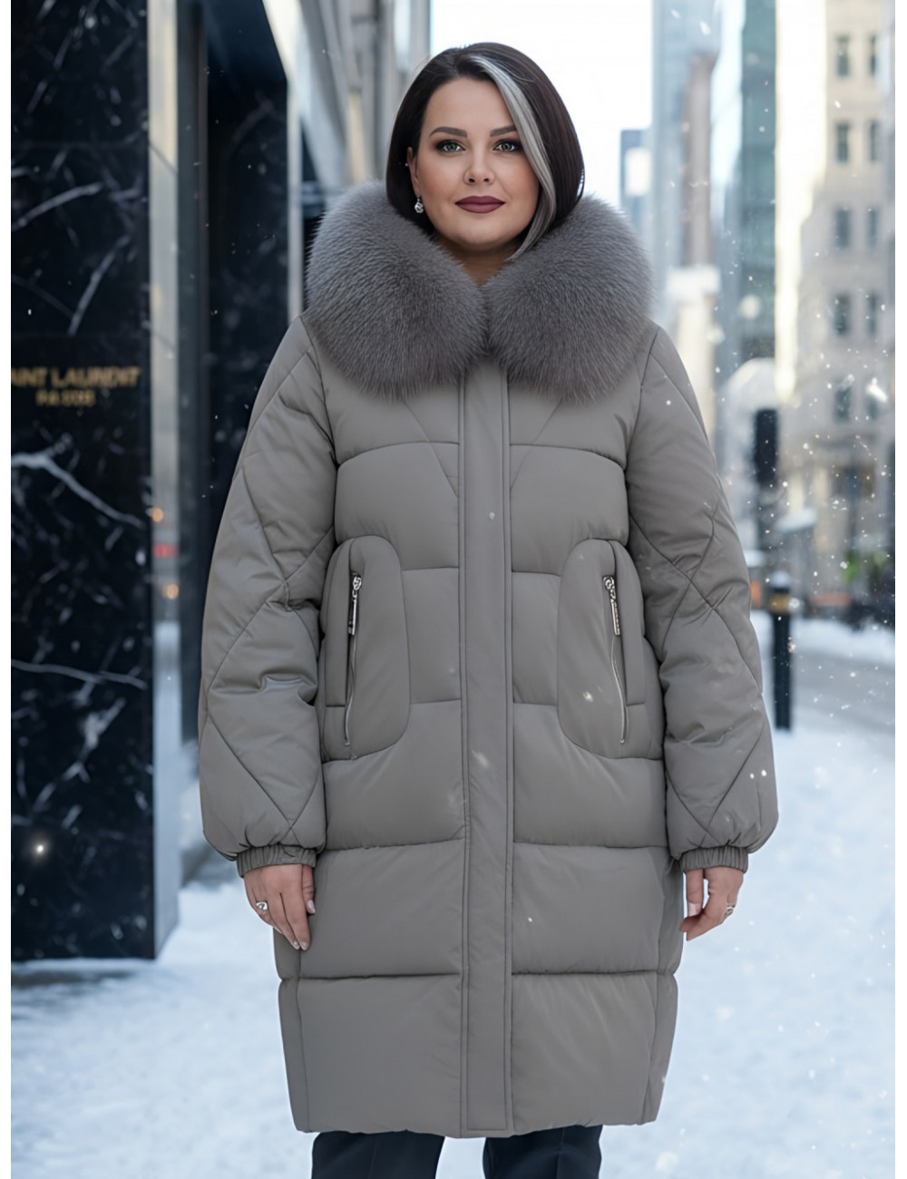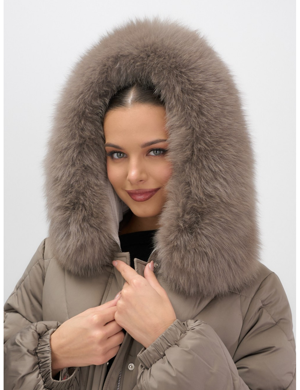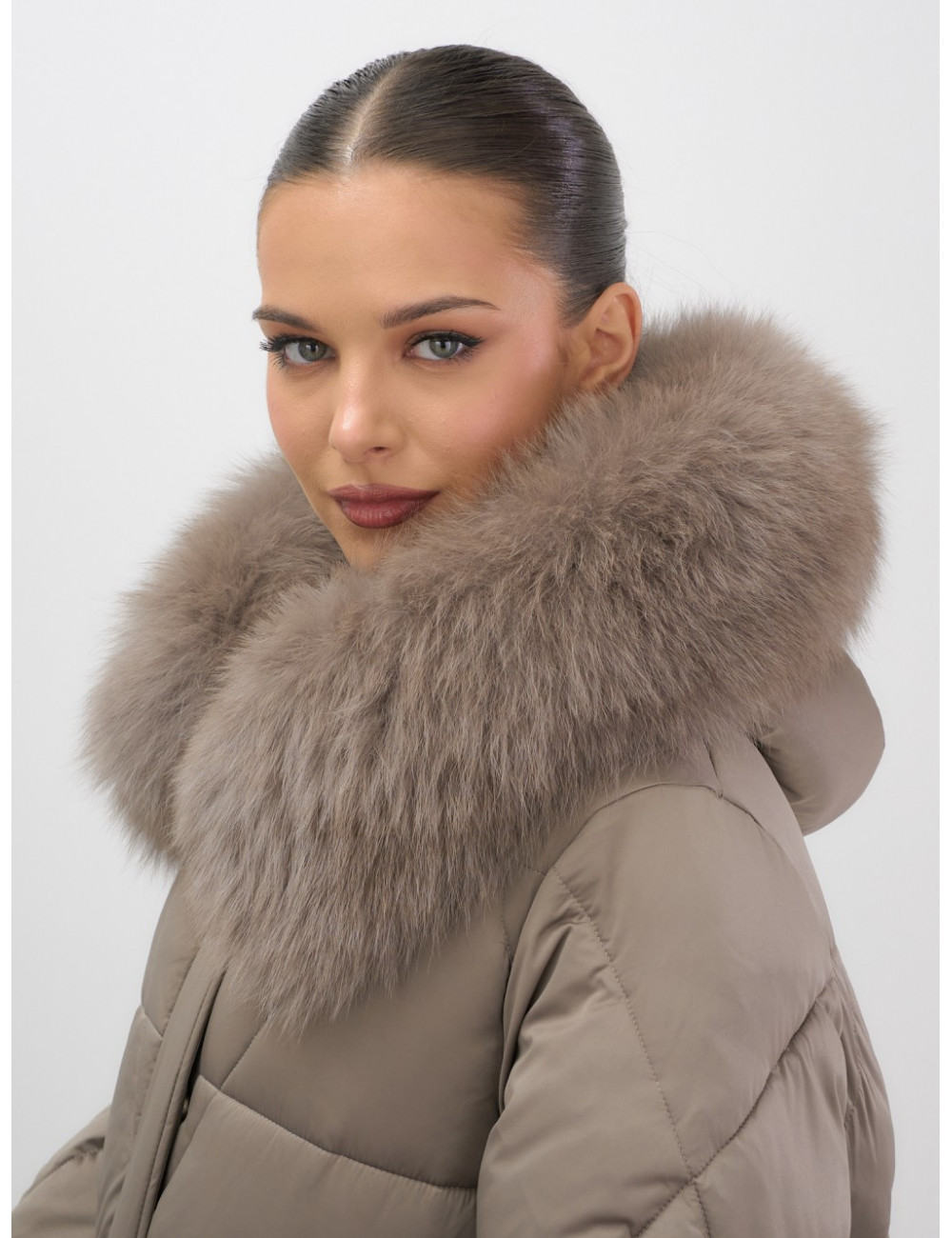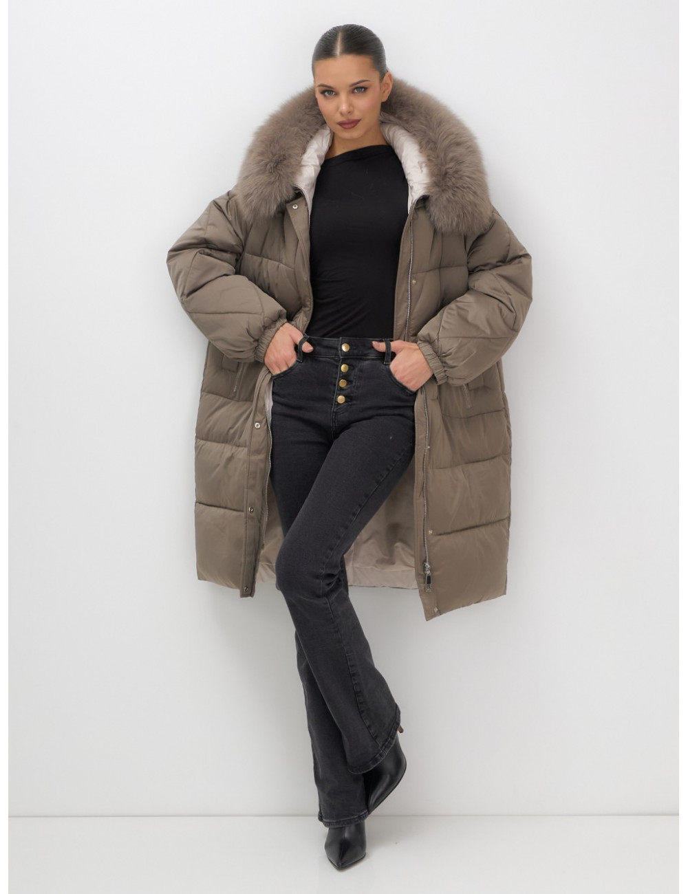 - Стильный дизайн. Пуховик представлен в четырёх благородных оттенках: глубокий чёрный, роскошный коричневый, изысканный светло-коричневый и стильный горчичный. Удлинённый силуэт до колена и свободный крой. Изысканная съёмная опушка из натурального песца создаёт роскошный образ.
