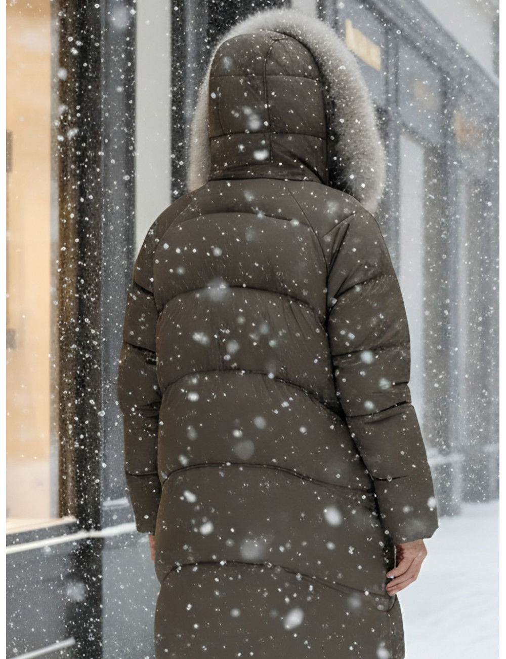 Откройте для себя новый уровень зимнего комфорта с пуховиком от Ketsi! Доставка по Москве и Московской области Длинный пуховик с мехом и капюшоном, тёмно-коричневый.