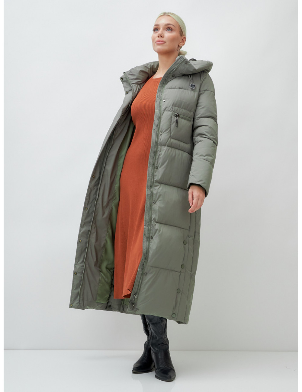 Не упустите возможность приобрести качественный и стильный пуховик от Ketsi! Доставка по Москве и Московской области Длинный пуховик женский с капюшоном, хаки, зимний.