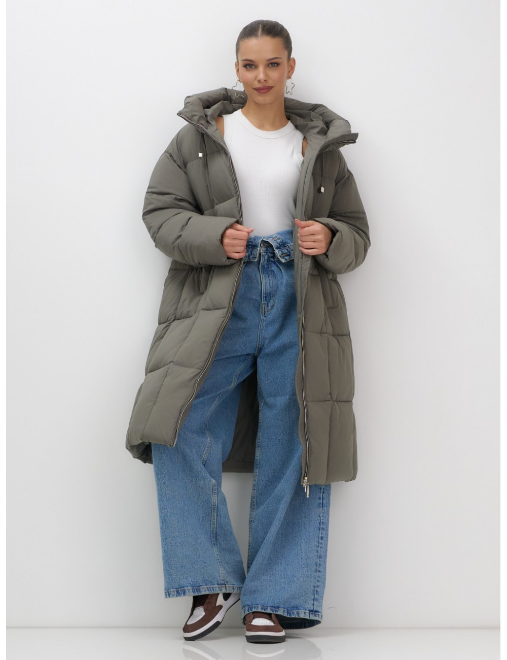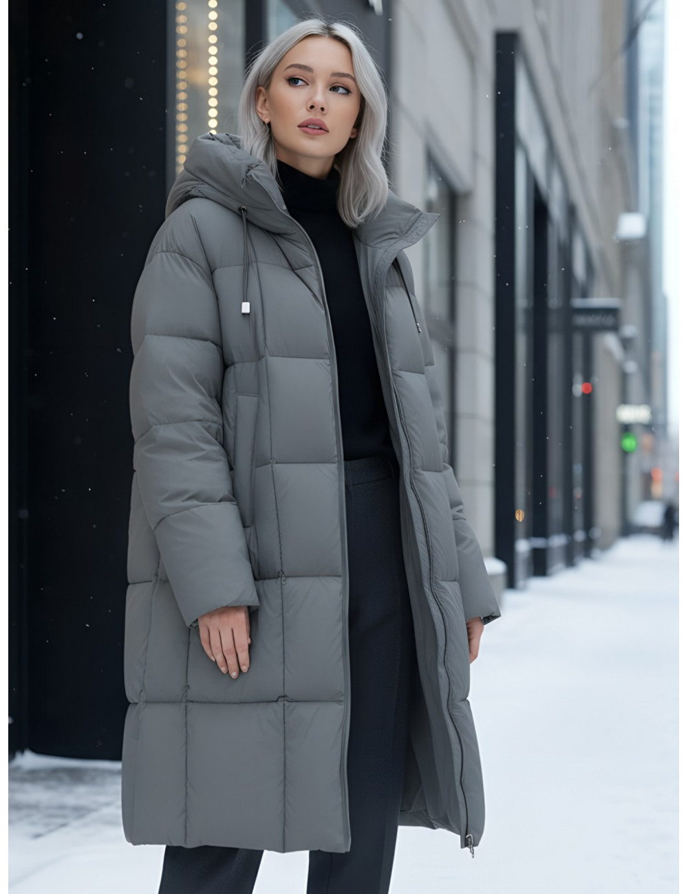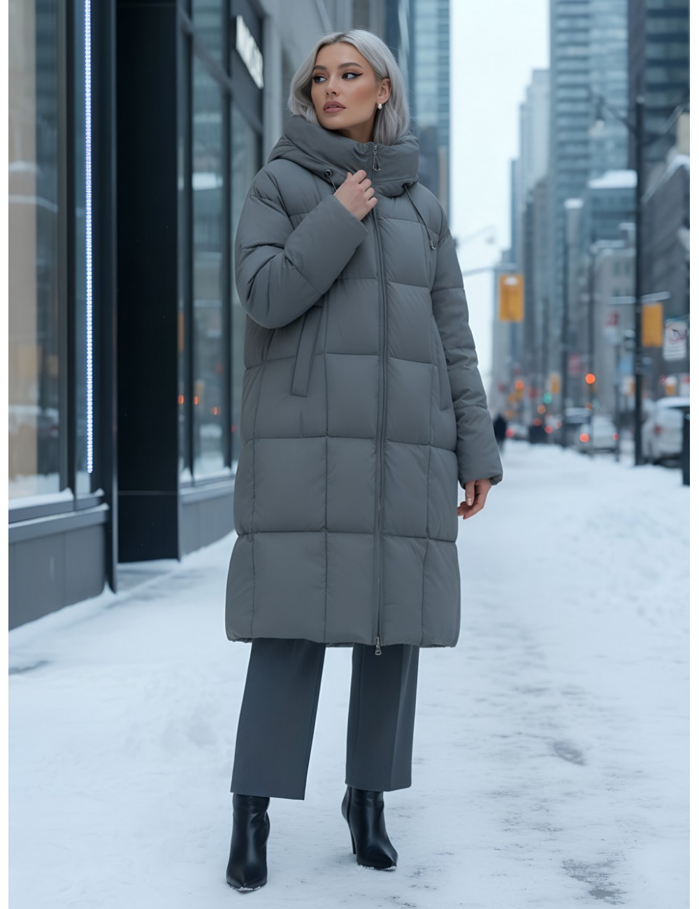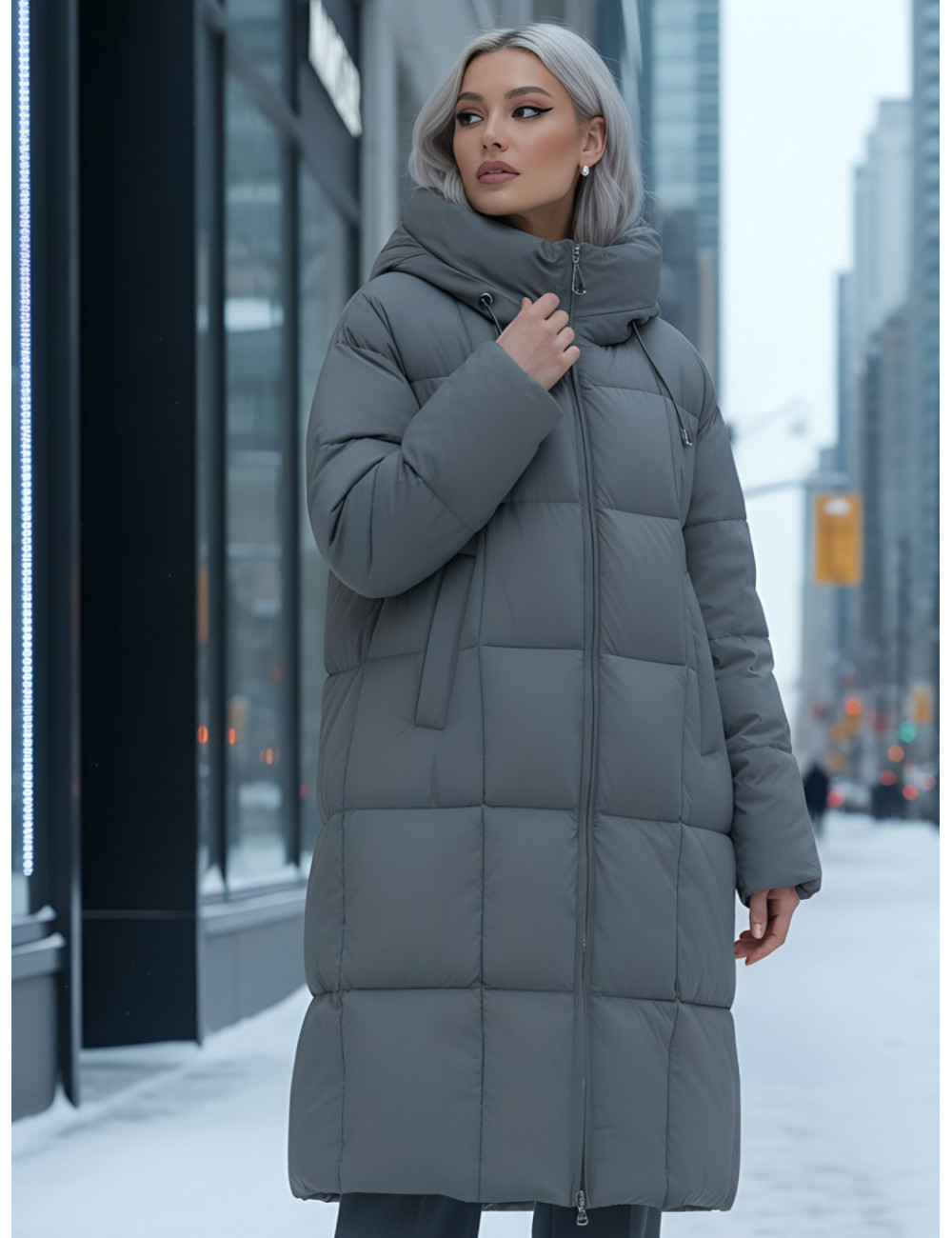 Не упустите возможность добавить этот универсальный пуховик в ваш гардероб и наслаждаться зимой в полной мере! Доставка по Москве и Московской области Длинный пуховик женский утеплённый с капюшоном, тёмно-серый.