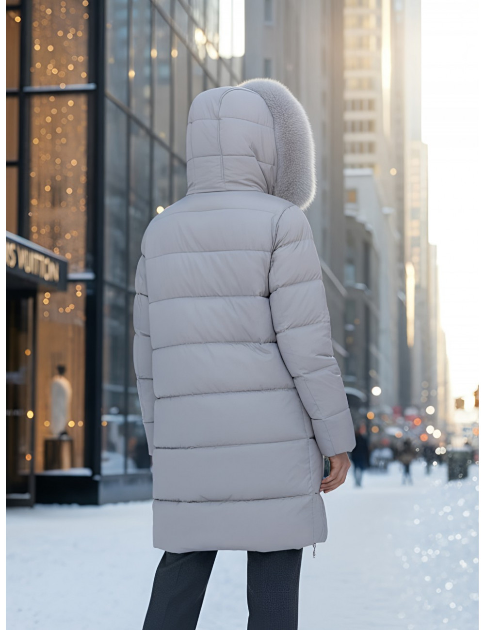 Пуховик обеспечивает тепло до −22 °C.