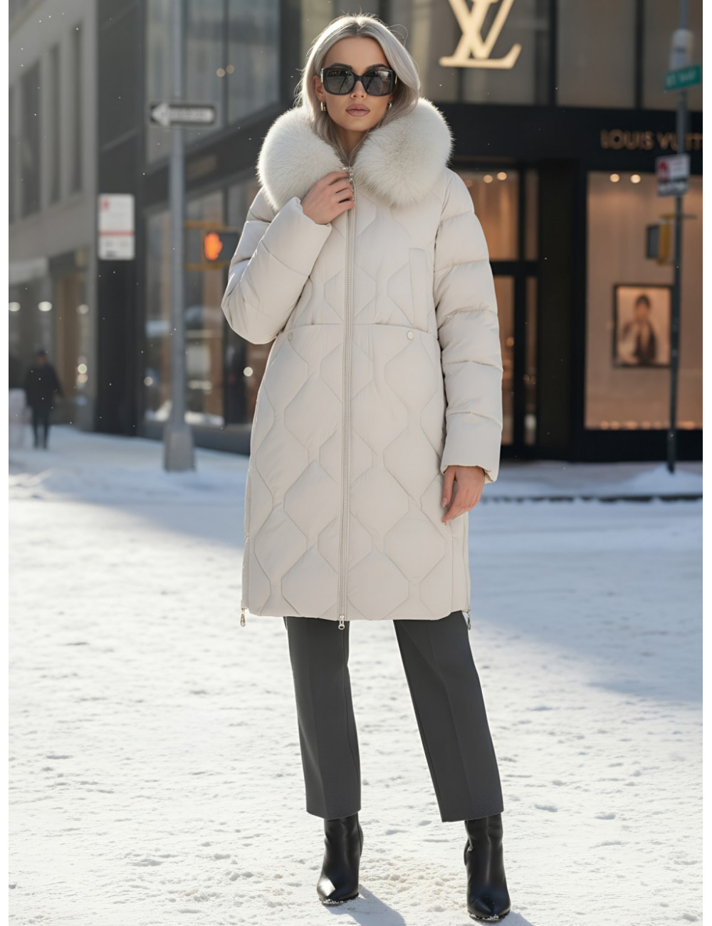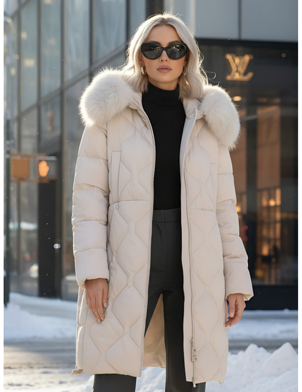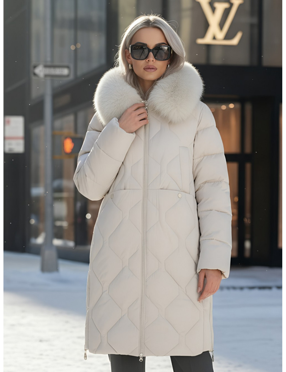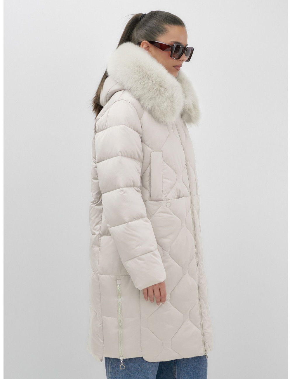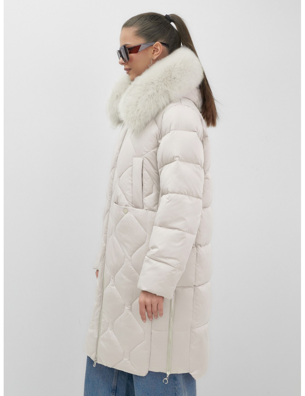 - Съёмная опушка из натурального песца.