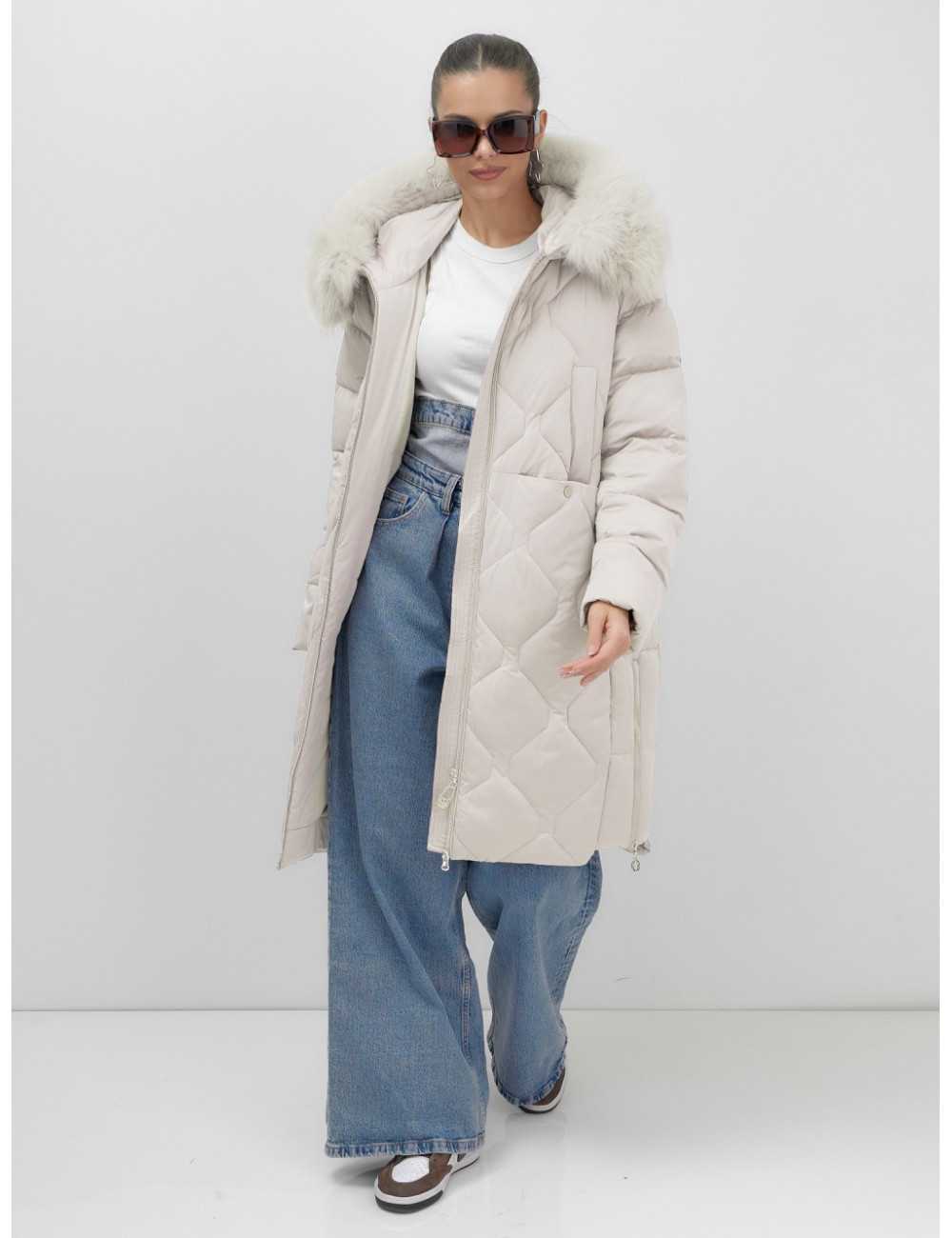 Станьте обладателем эксклюзивного пуховика премиум-класса от Ketsi и подчеркните свой статус и безупречный вкус! Доставка по Москве и Московской области Длинный пуховик с капюшоном, бежевый, утеплённый мехом