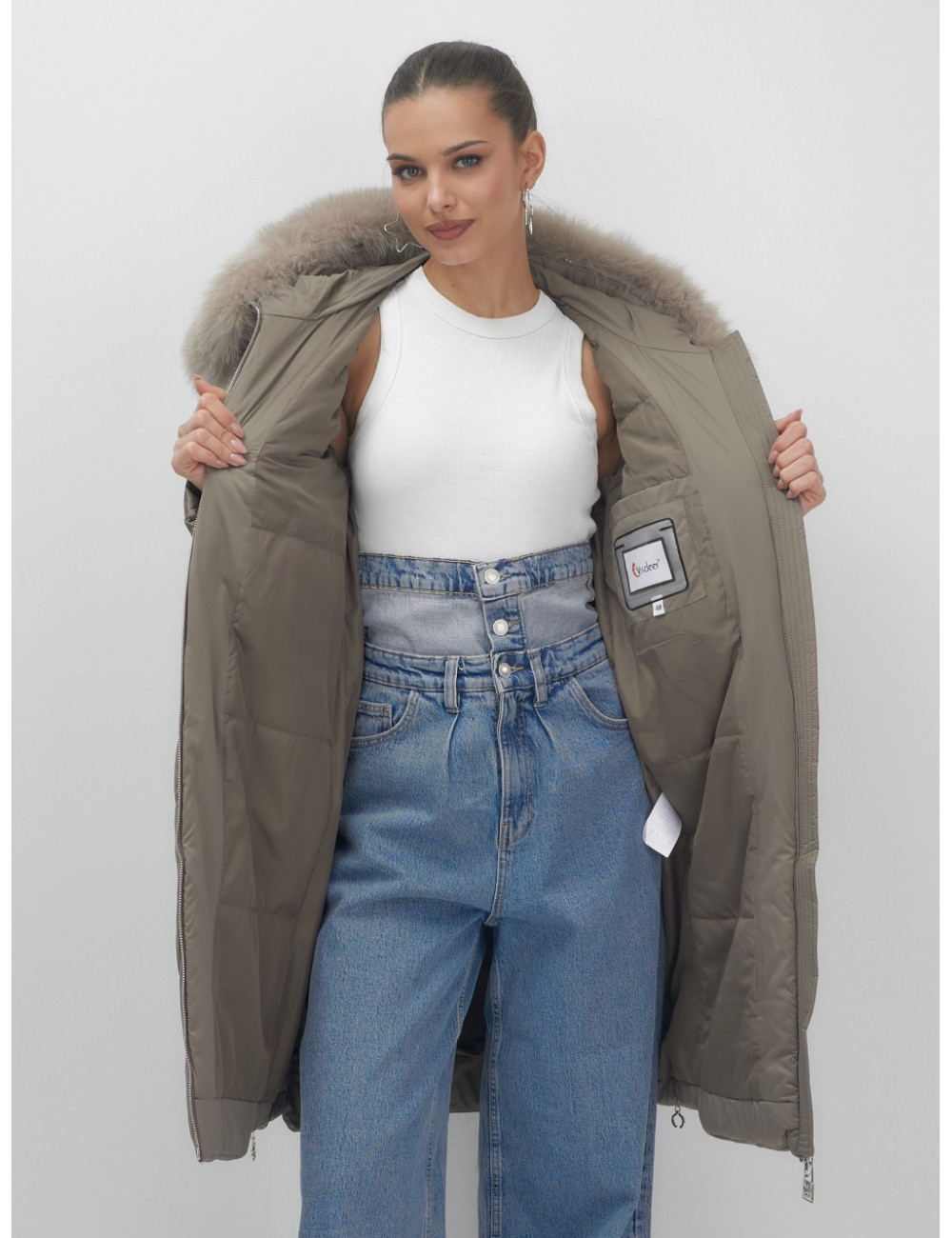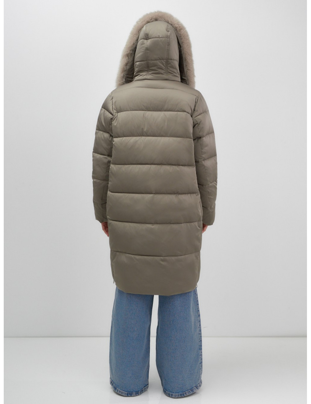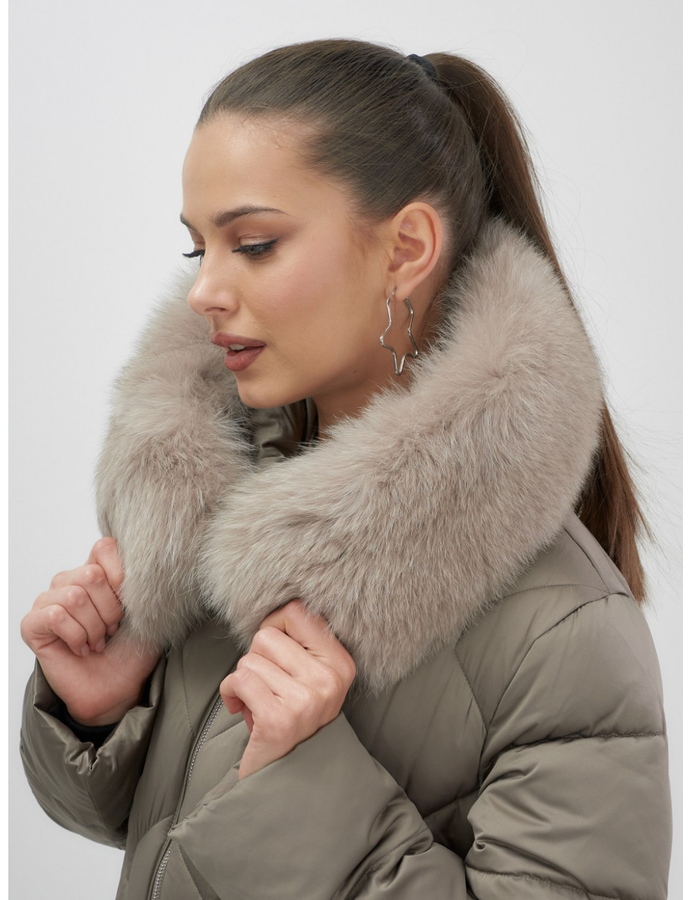 - Отделка. Съёмная опушка из натурального песца создаёт неповторимый образ.