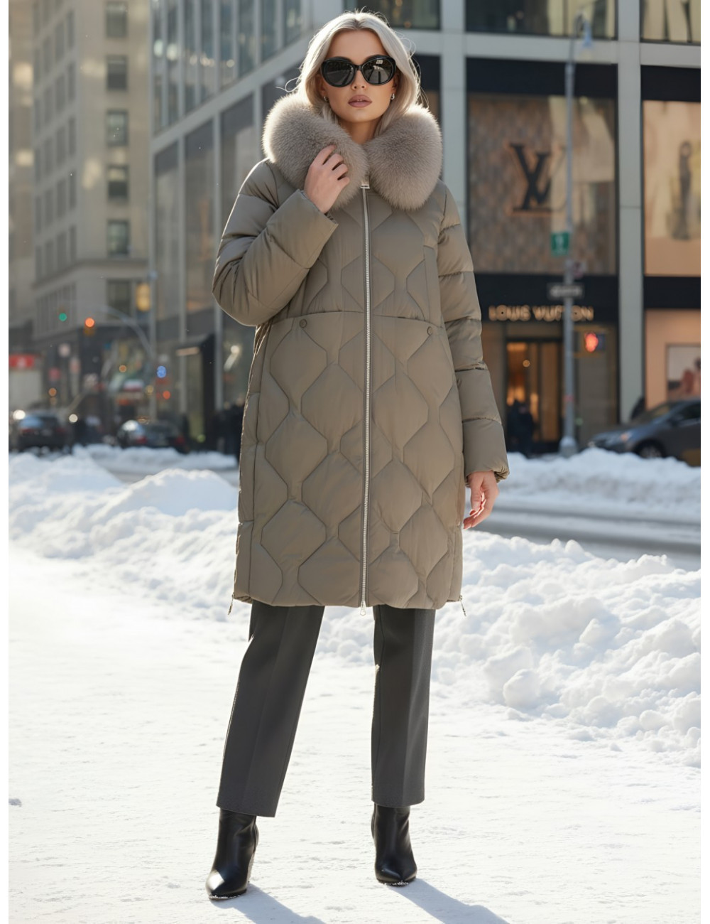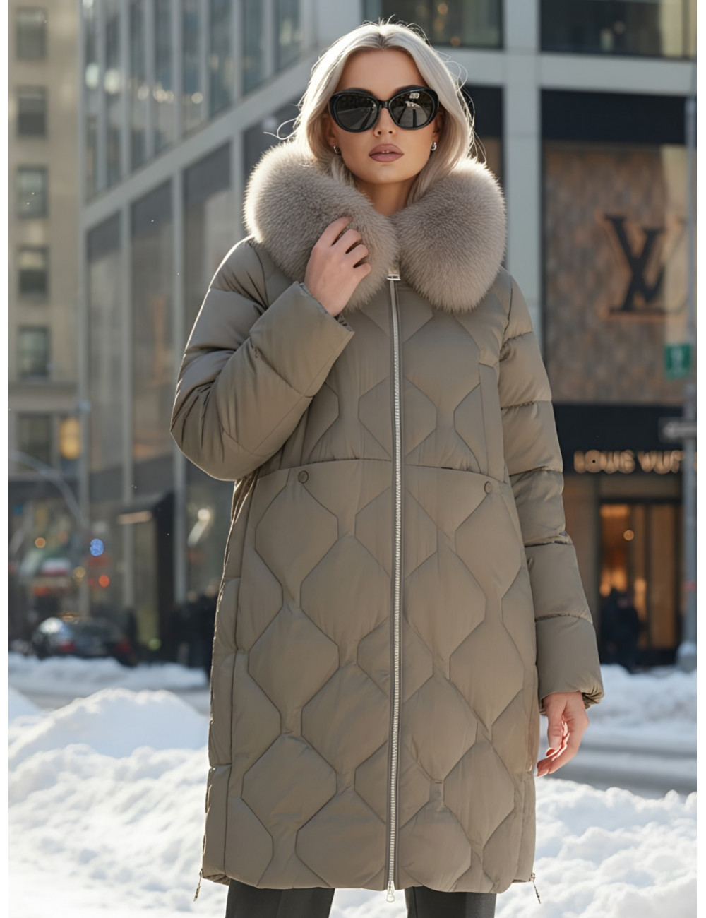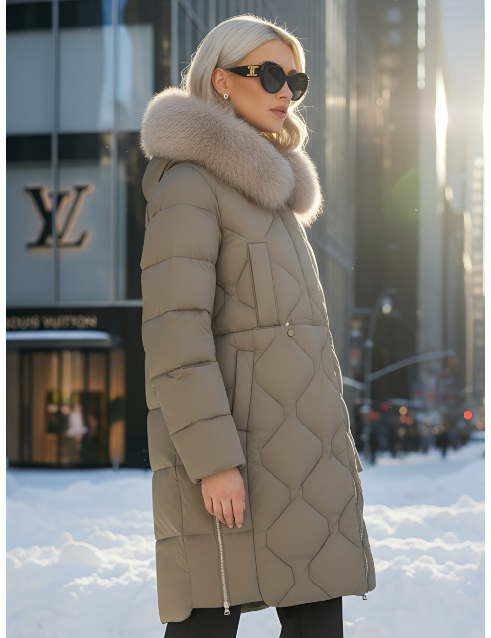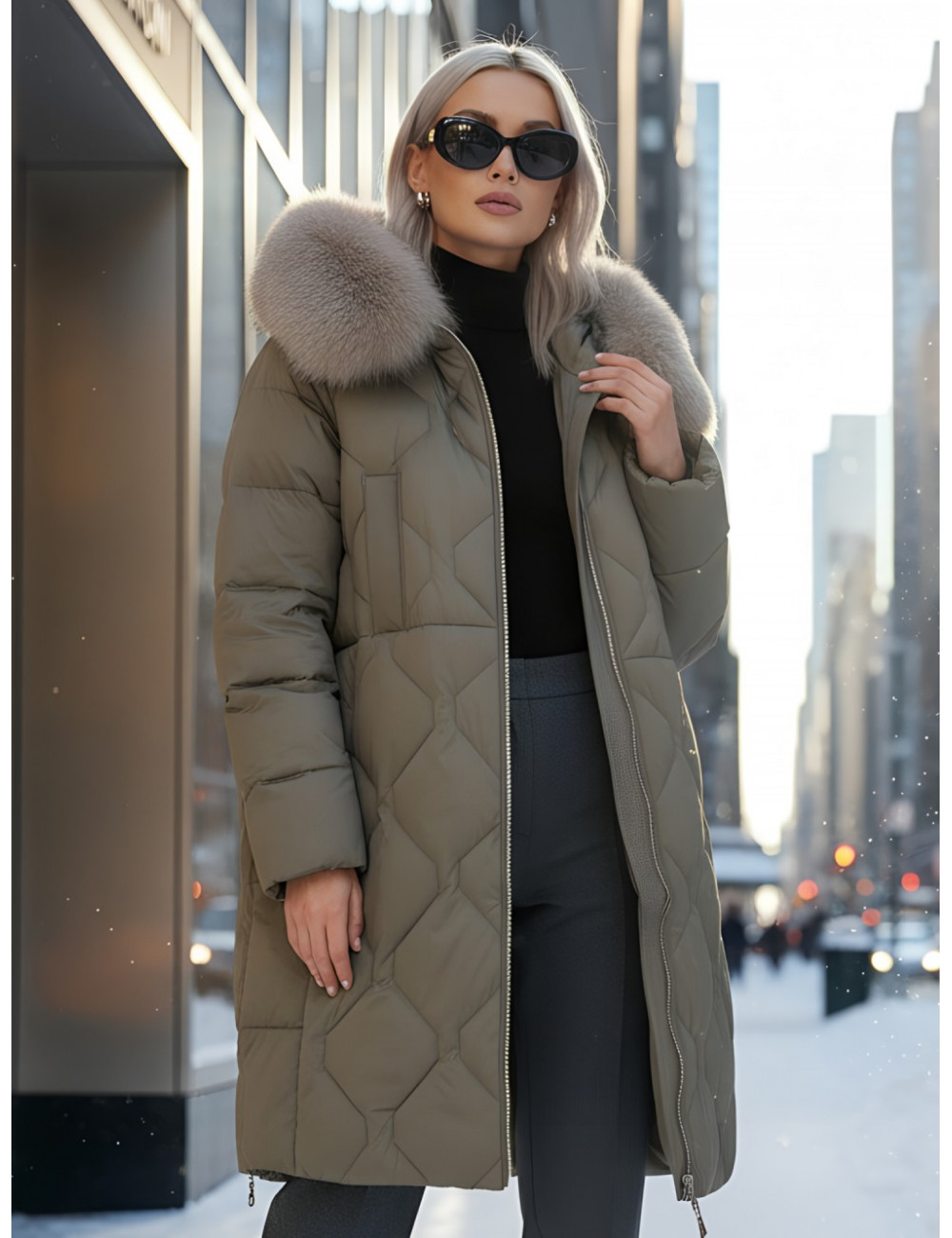 - Стильный образ. Пять благородных оттенков коллекции осень-зима 2025 (глубокий чёрный, роскошный коричневый, изысканный светло-коричневый, элегантный тёмно-коричневый и благородный тёмно-зелёный) великолепно сочетаются с натуральным мехом песца.