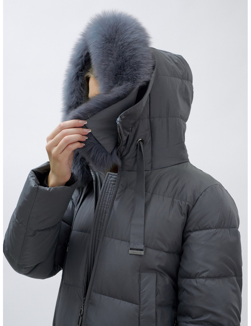 Натуральный мех песца придаёт пуховику изысканный вид и добавляет тепла в самые морозные дни. Съёмная опушка придаёт изящества образу и смотрится благородно.