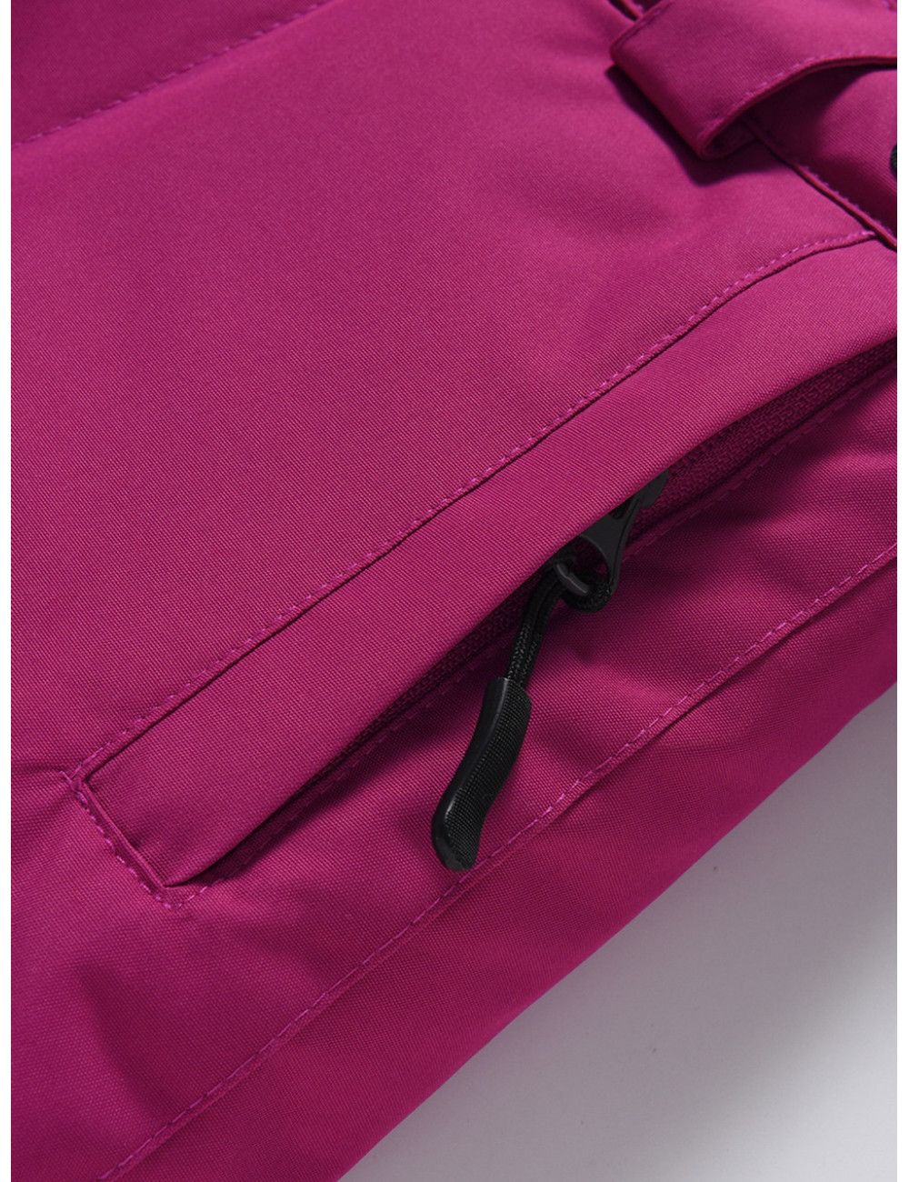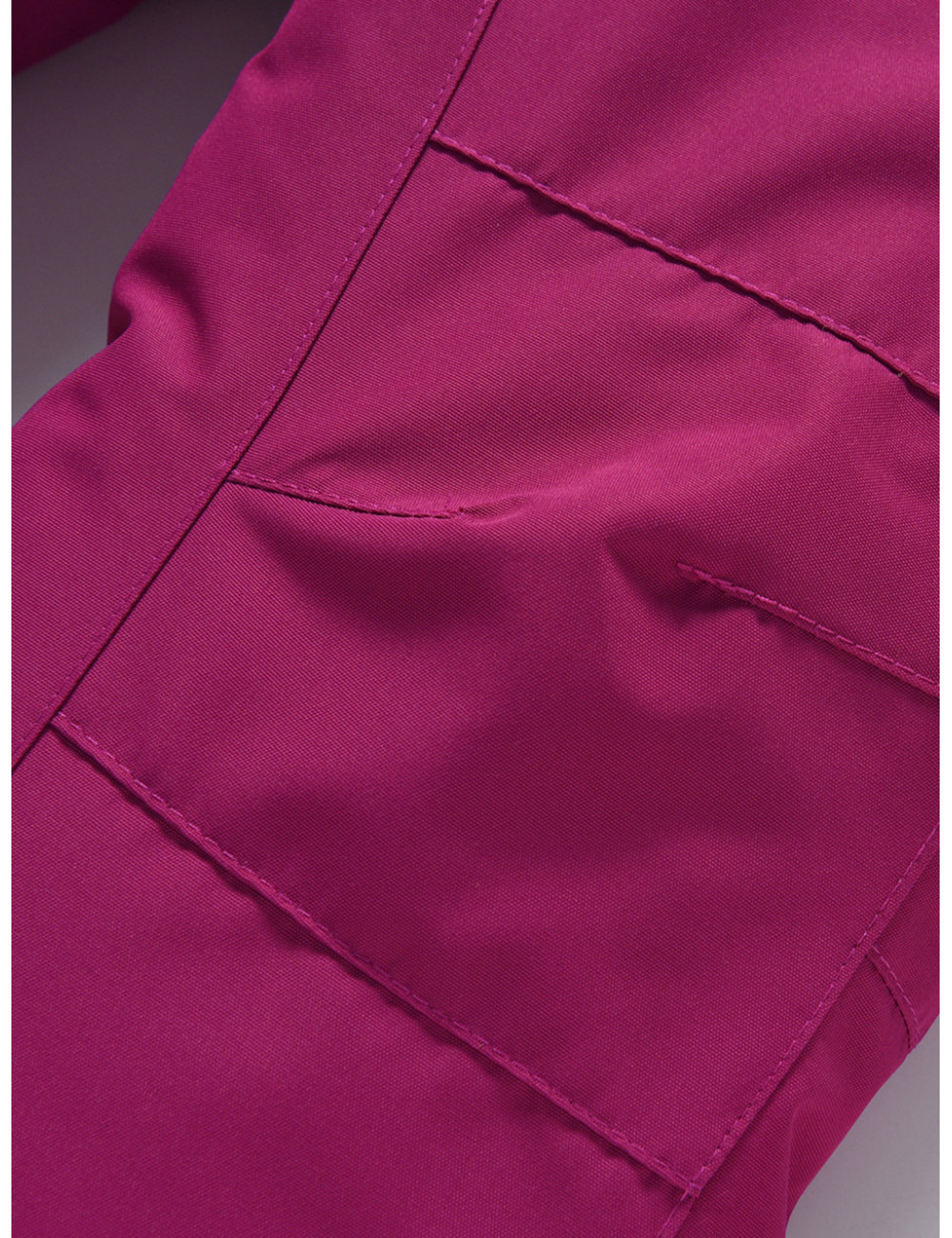 - Функциональность. Костюм оснащён всеми необходимыми деталями для зимних приключений: светоотражающие элементы, защита подбородка, снегозащитные гамаши и т. д.
