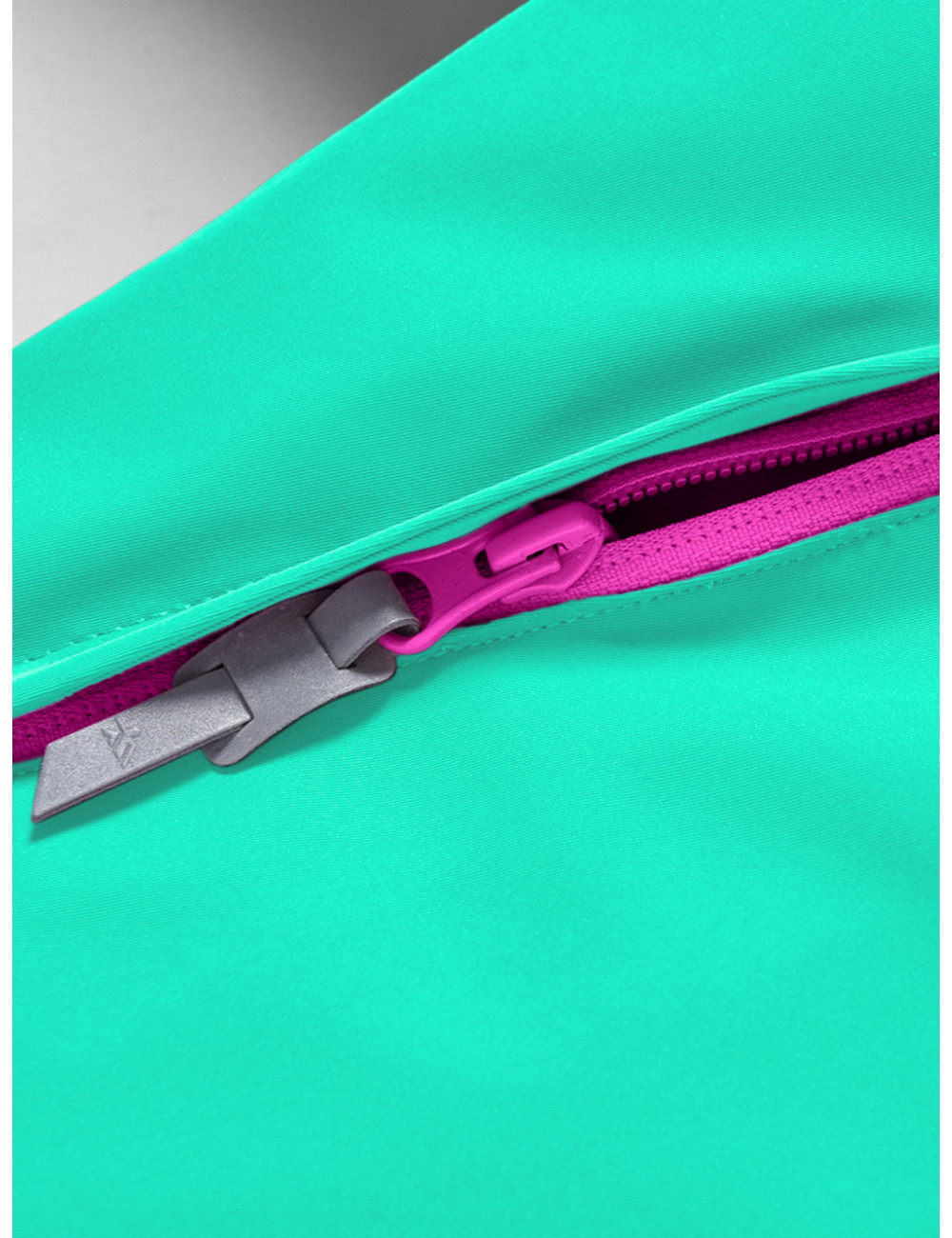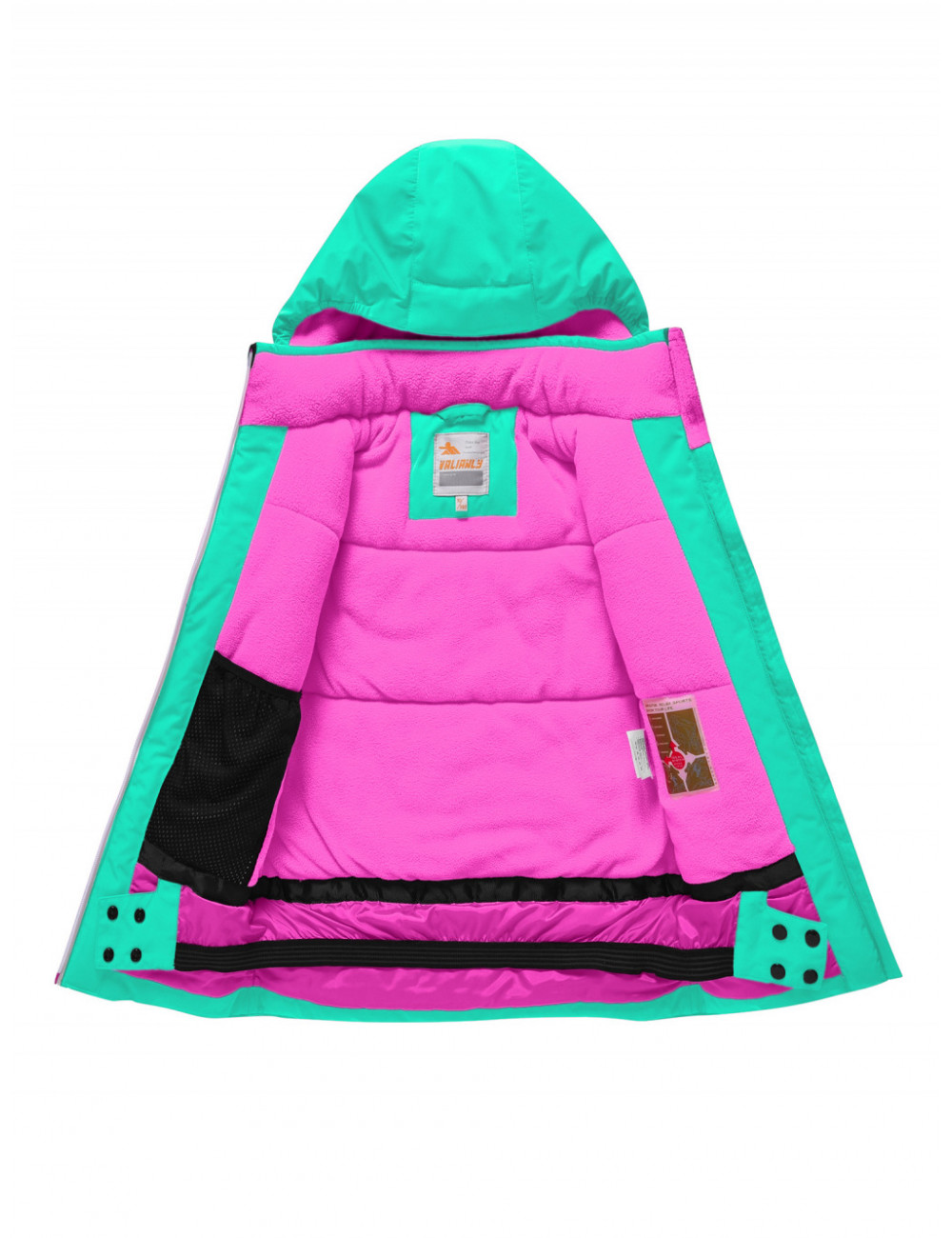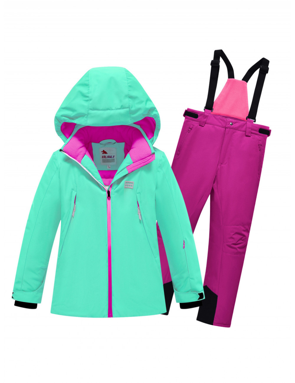 Следуйте рекомендациям по уходу, указанным на ярлыке изделия. Обычно горнолыжные костюмы требуют деликатной стирки и глажки при низкой температуре. Доставка по Москве и Московской области Горнолыжный зимний костюм для девочки бирюзового цвета, детский.