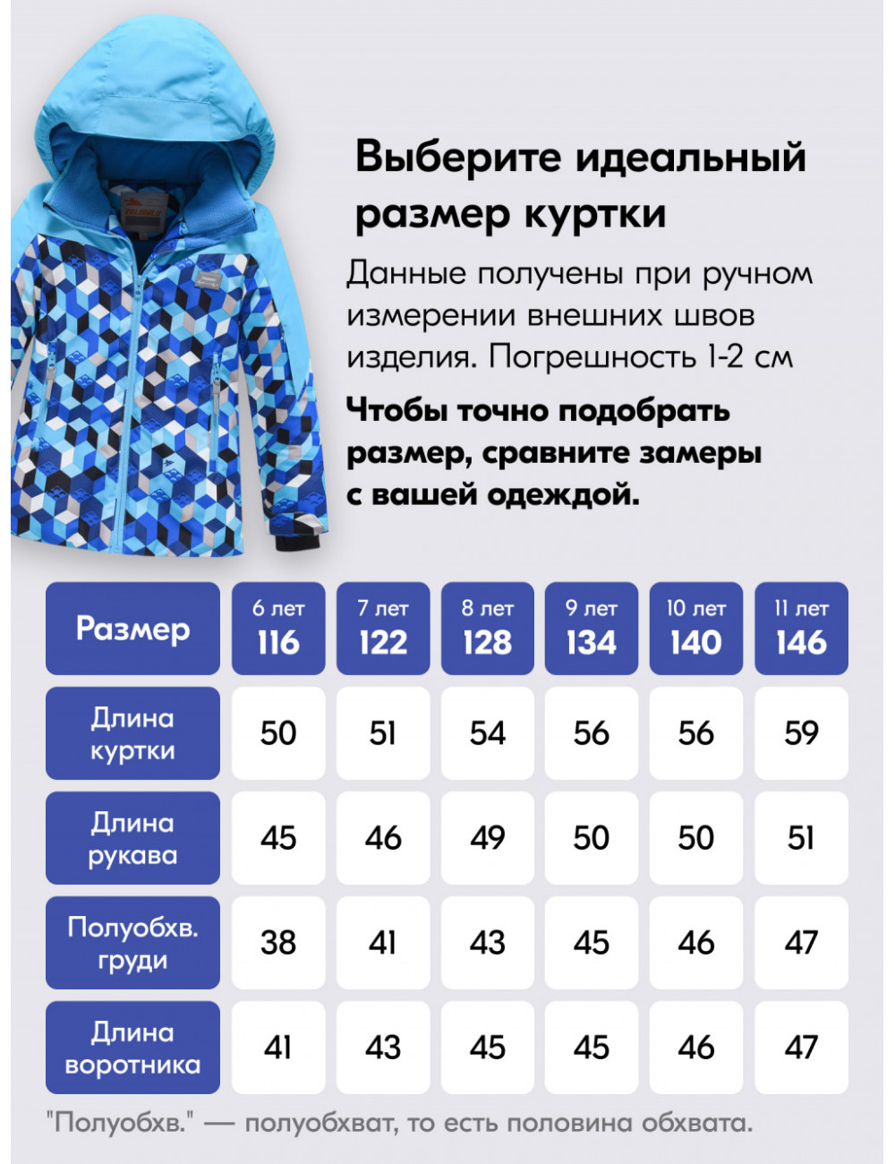 Для выбора идеального размера одежды рекомендуем измерить следующие параметры: длину куртки, полуобхват груди, длину плеч по спине, длину рукава, полуобхват бёдер. Используйте сантиметровую ленту для точности.