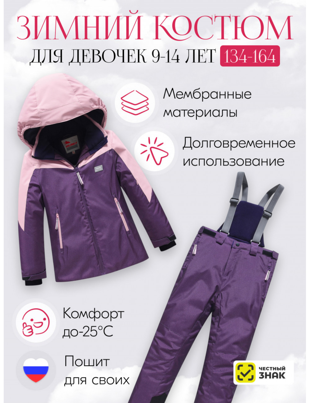 Стильный и функциональный костюм для активных зимних приключений. Подходит для юных лыжников и сноубордистов.
