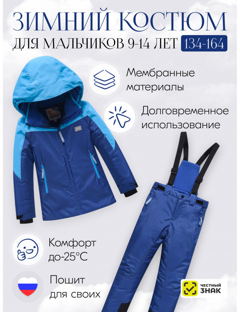 Технические характеристики Горнолыжный костюм зимний для мальчика синего цвета