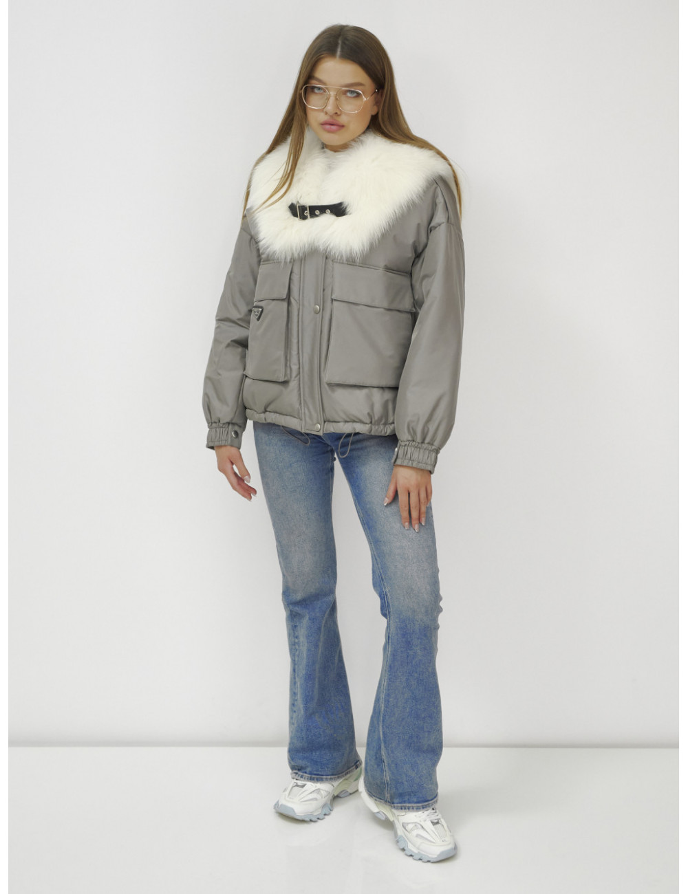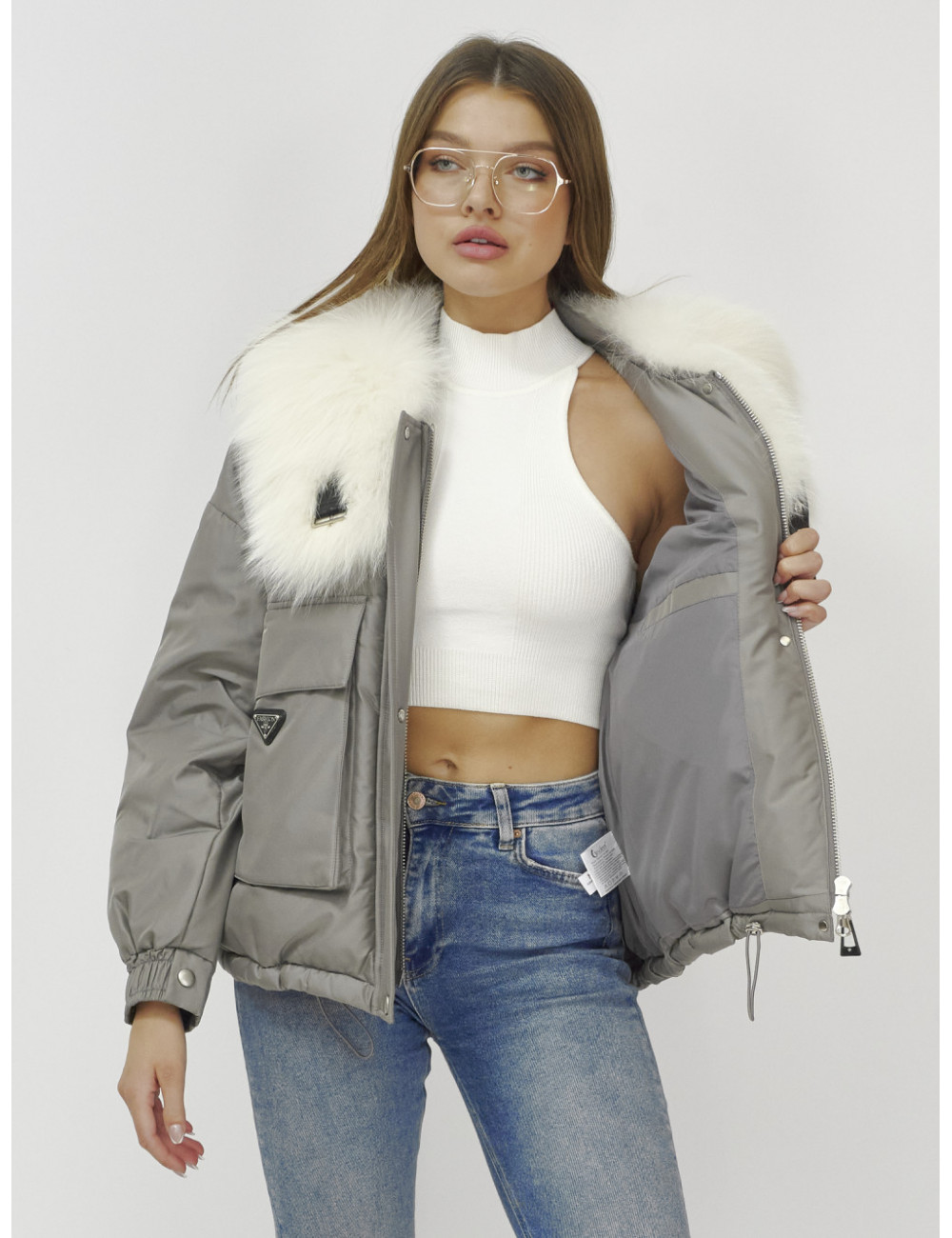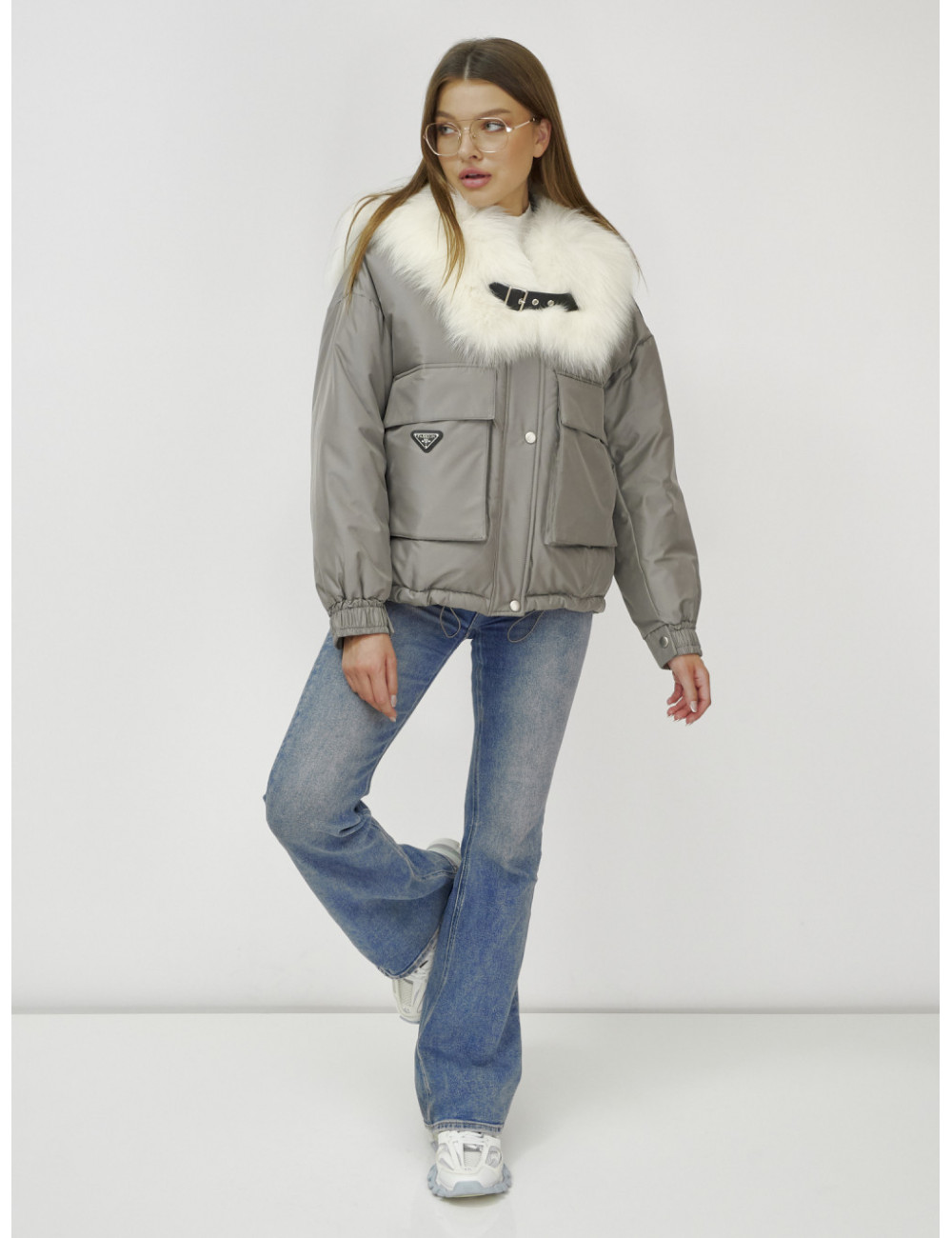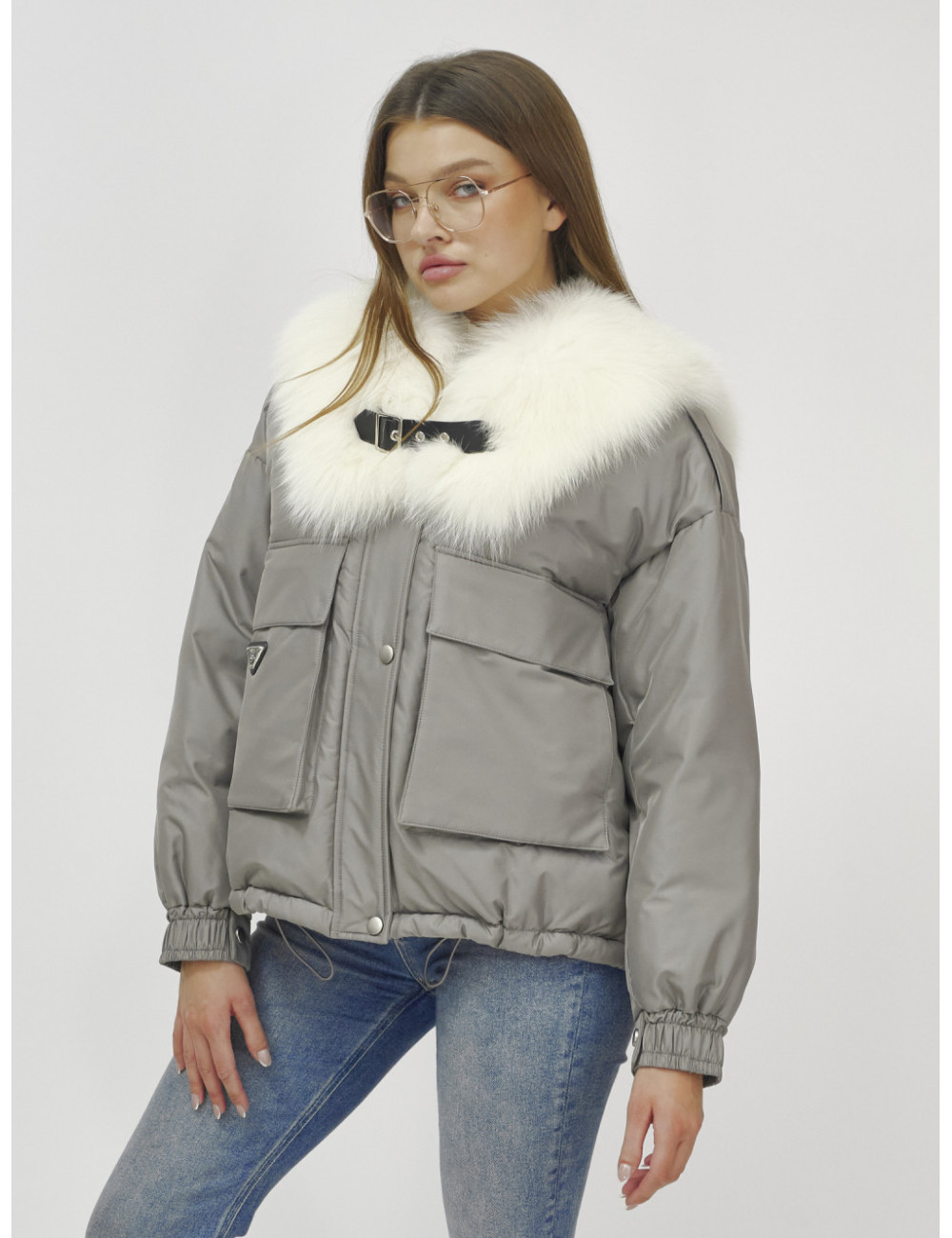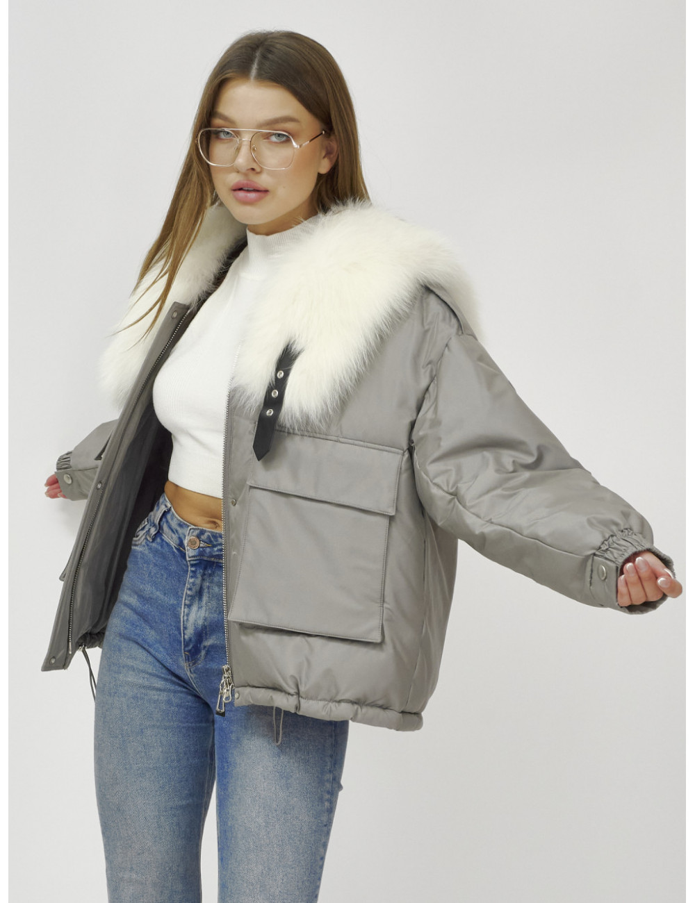 Не упустите возможность подчеркнуть свою индивидуальность и оставаться в тепле этой зимой! Доставка по Москве и Московской области Куртка-бомбер Ангел с мехом песца премиум-класса, серый.