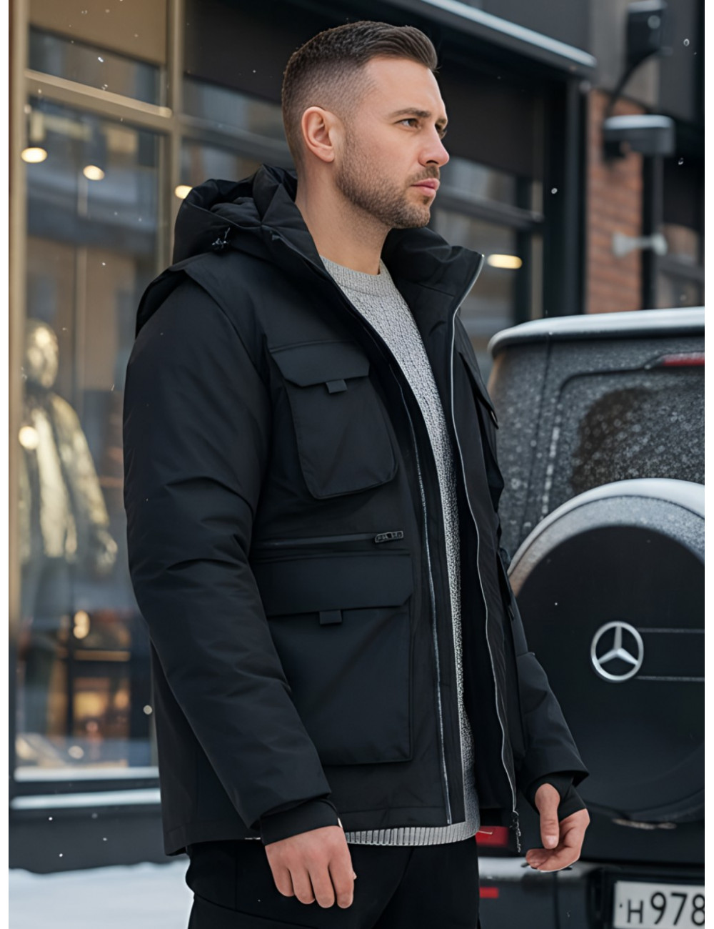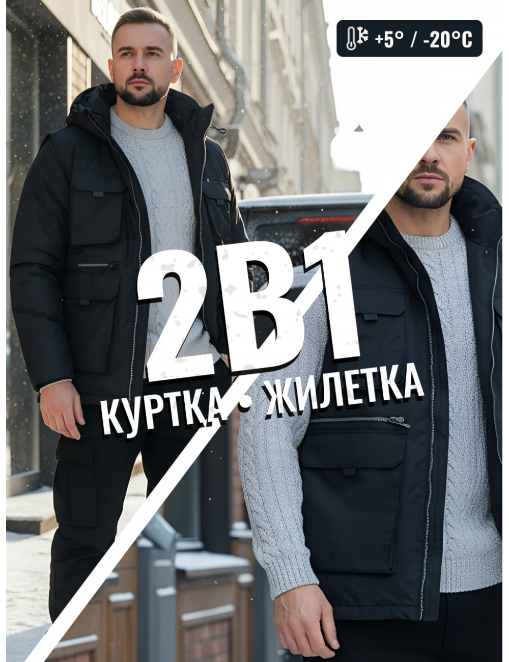Не упустите шанс сделать свой гардероб более функциональным и стильным с курткой-жилеткой 2 в 1 от Ketsi! Доставка по Москве и Московской области Мужская зимняя куртка-жилетка трансформер 2 в 1, чёрная, для активного отдыха.