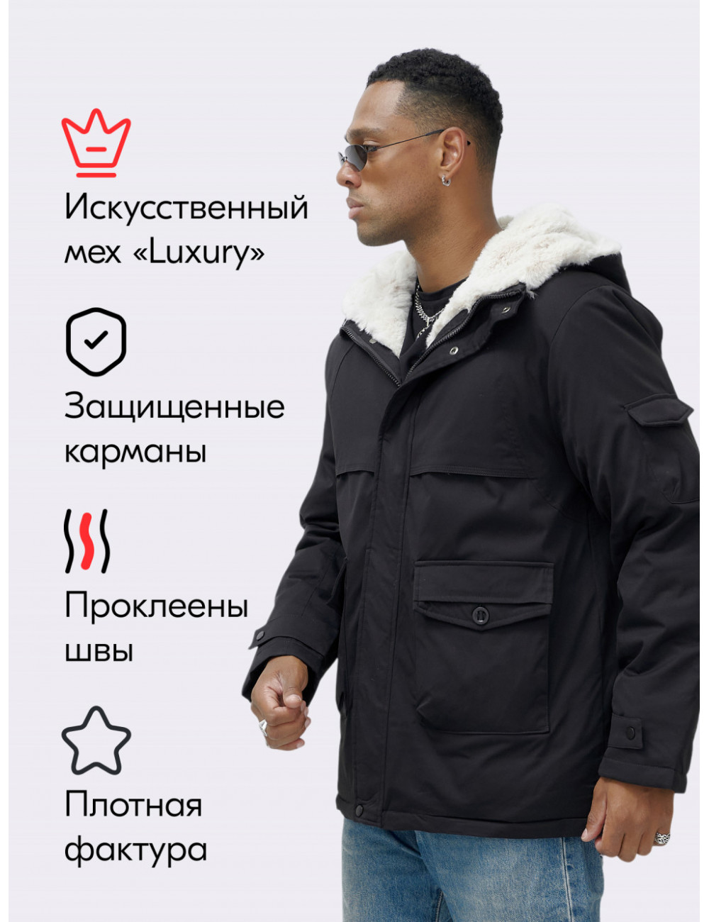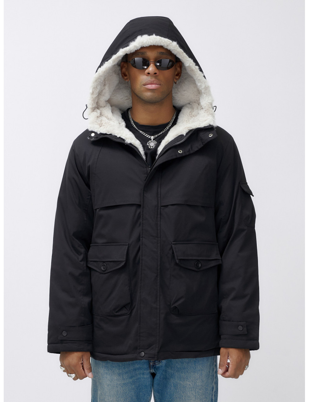 Не упустите возможность сделать зиму более уютной и комфортной! Закажите мужскую парку уже сегодня и будьте готовы к любым зимним вызовам. Учитывайте особенности строения фигуры при выборе размера. Перед использованием как следует отпарьте изделие. Доставка по Москве и Московской области Мужская зимняя удлиненная парка с мехом, чёрная
