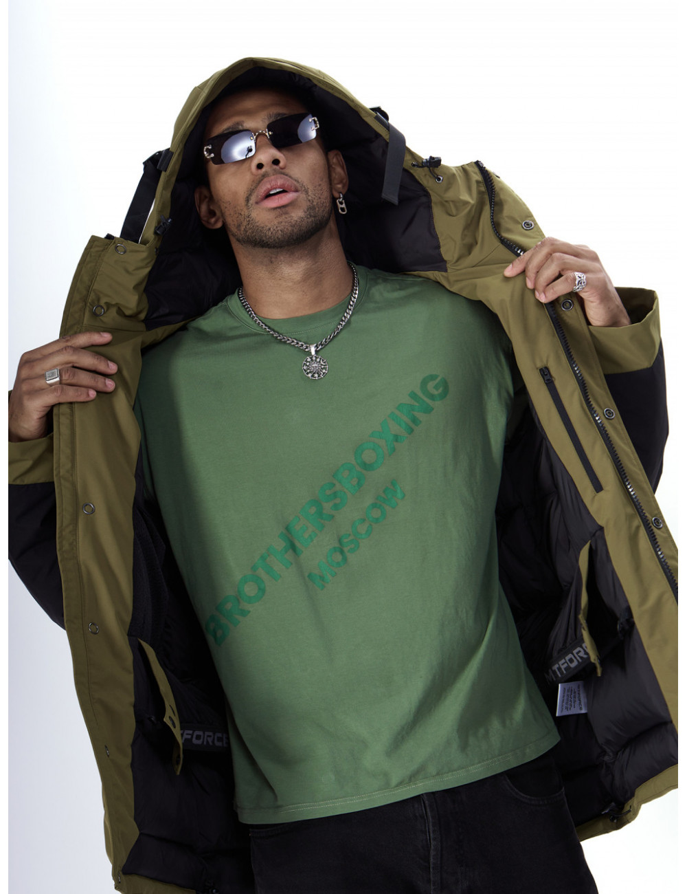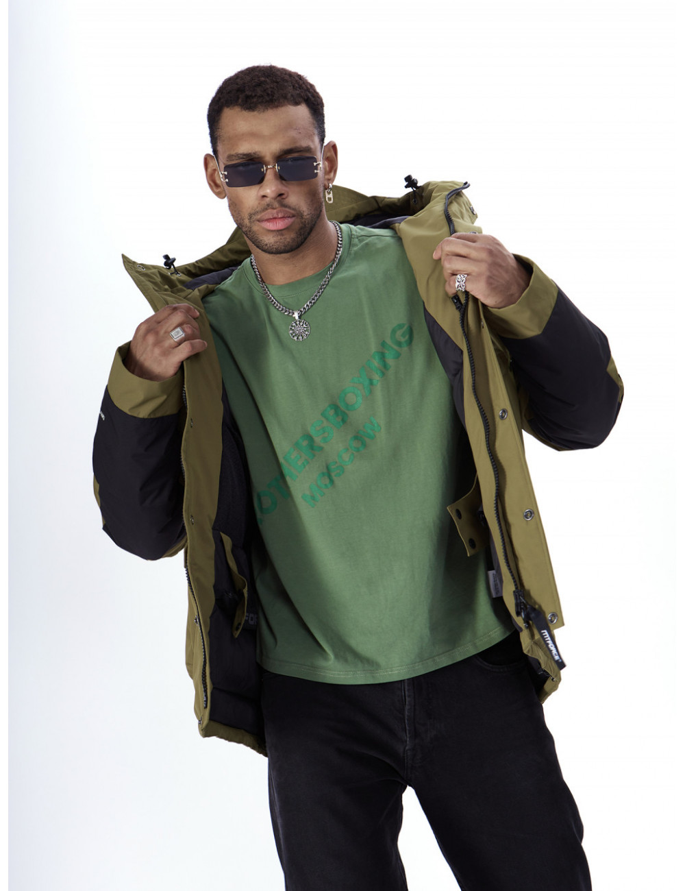 - Дизайн: однотонный, с печатной надписью на рукавах.
