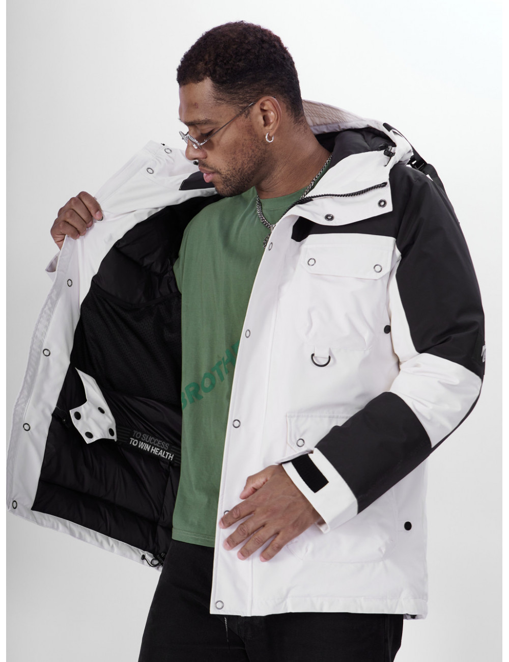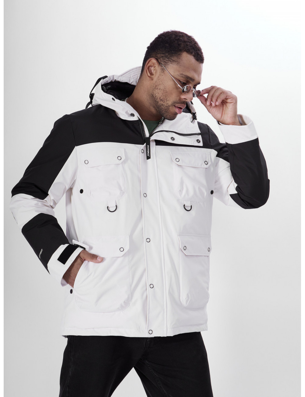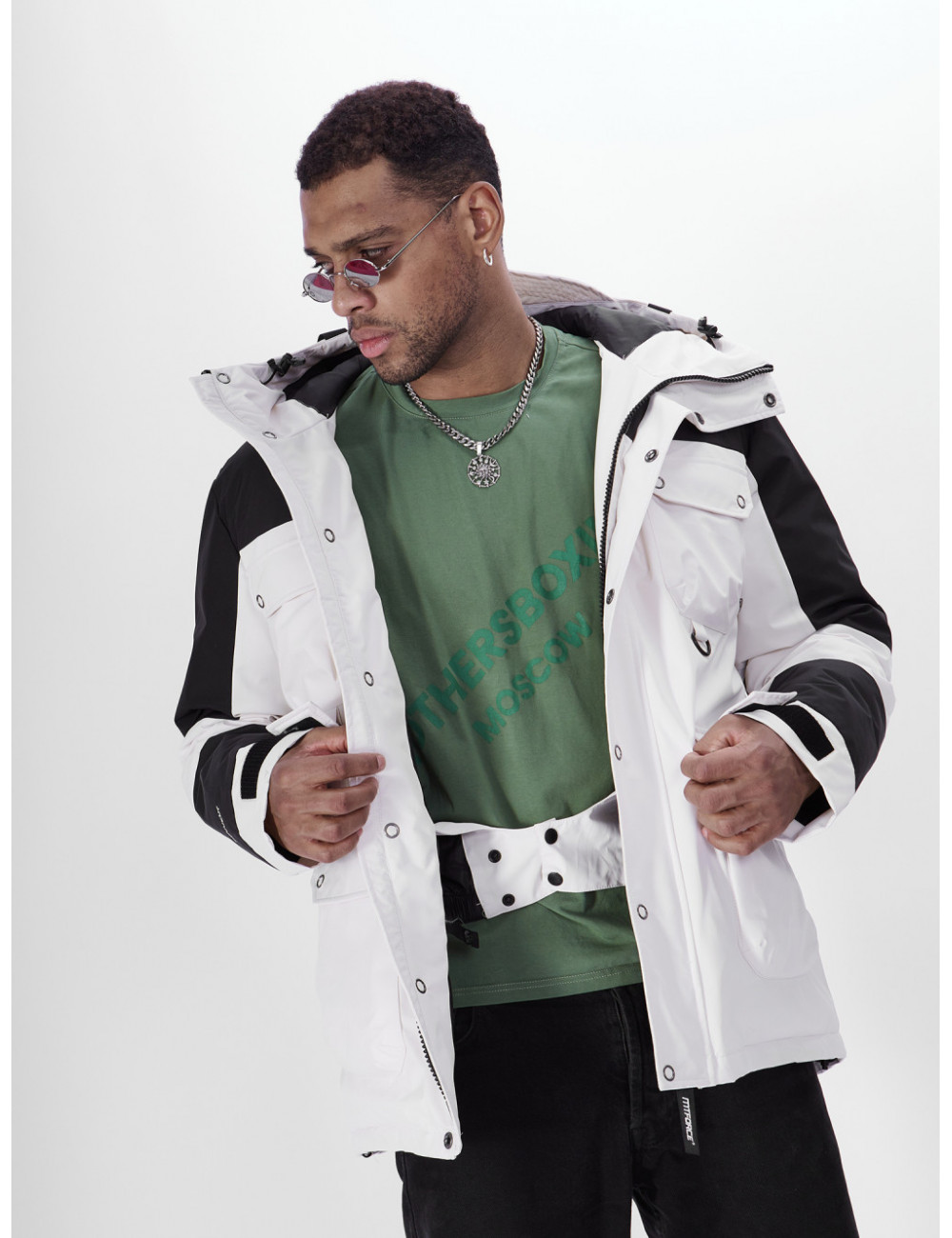 Рекомендуется выбирать деликатный режим стирки, деликатный отжим и горизонтальную сушку. Перед использованием как следует отпарьте изделие. Доставка по Москве и Московской области Мужская горнолыжная куртка для зимних видов спорта, белый цвет.
