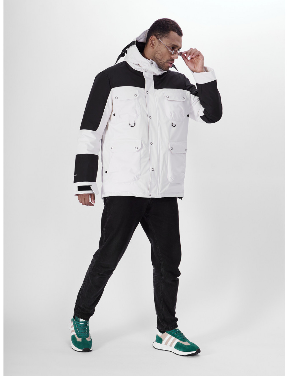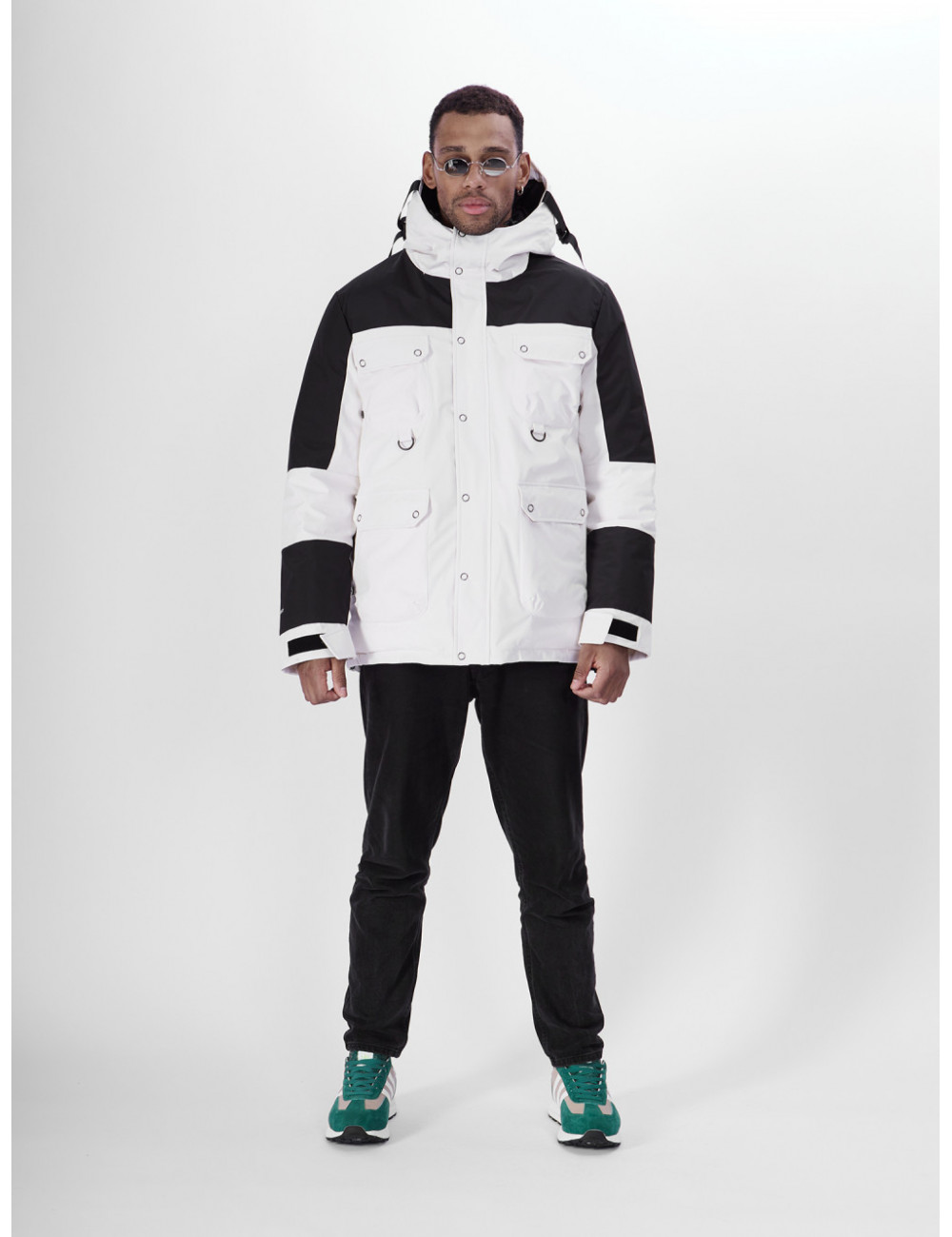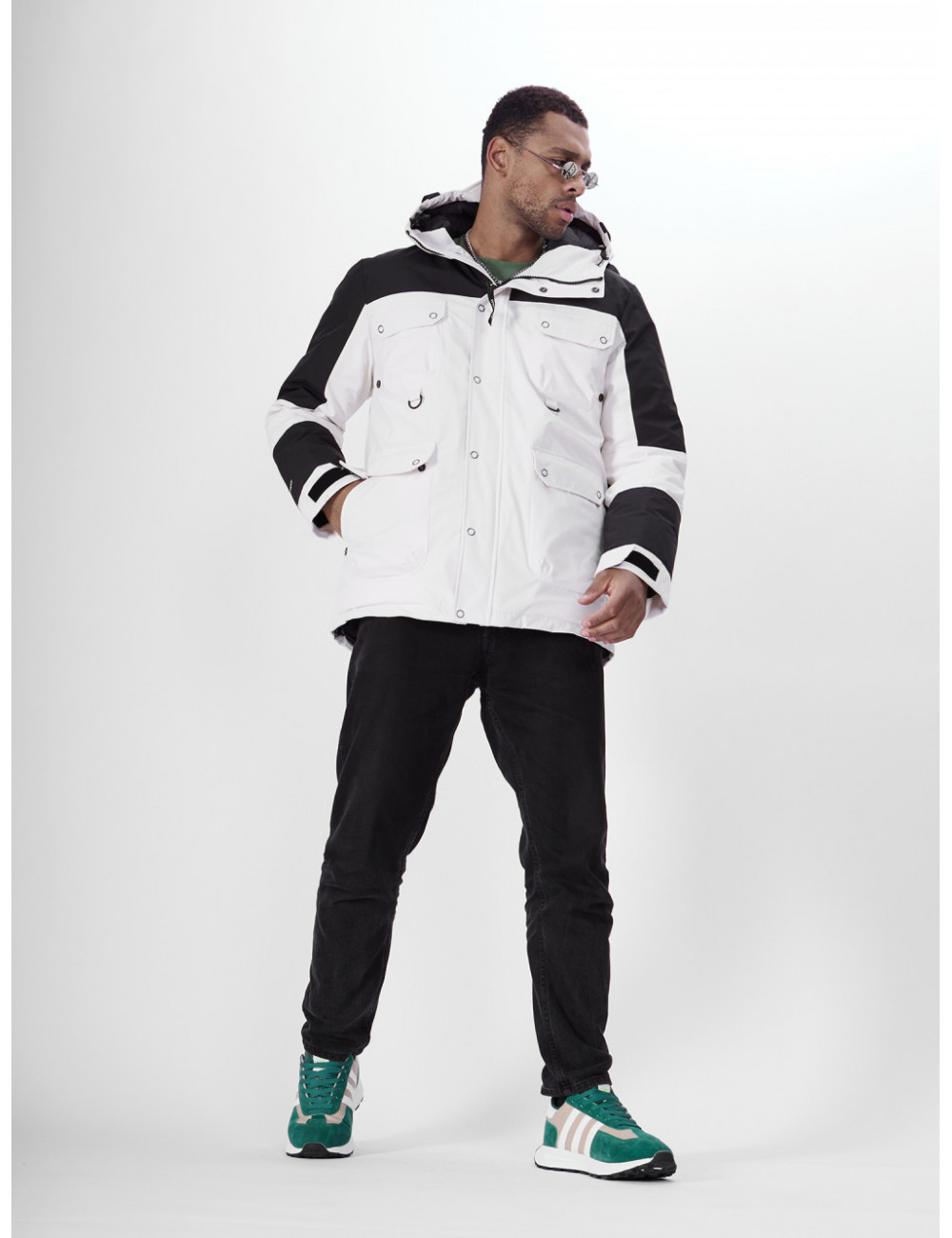 Рекомендуется выбирать деликатный режим стирки, деликатный отжим и горизонтальную сушку. Перед использованием как следует отпарьте изделие. Доставка по Москве и Московской области Мужская горнолыжная куртка для зимних видов спорта, белый цвет.