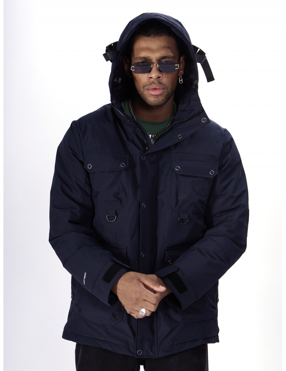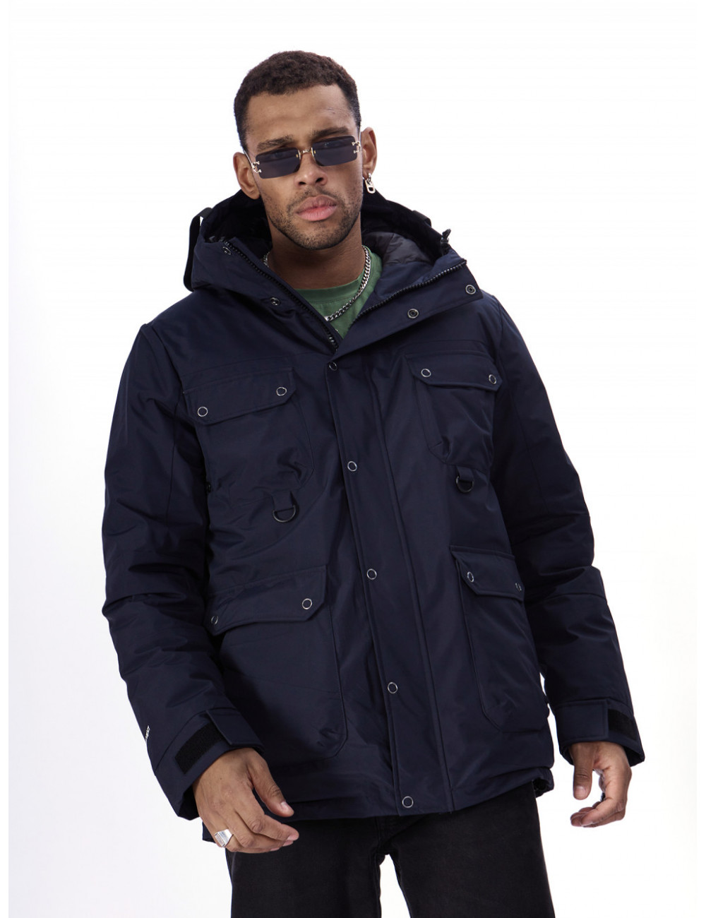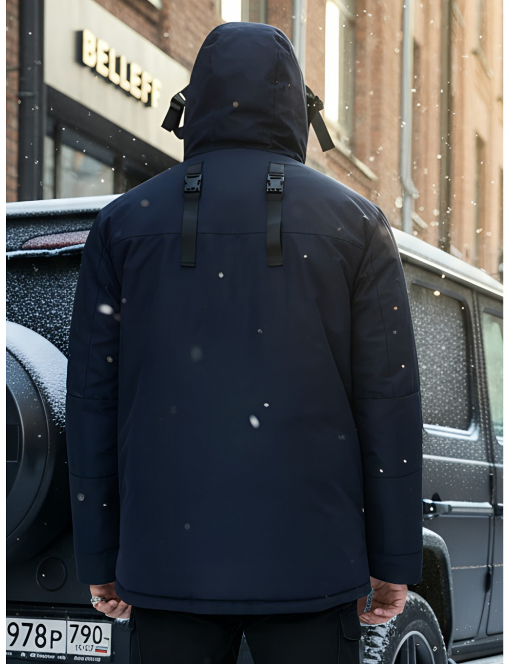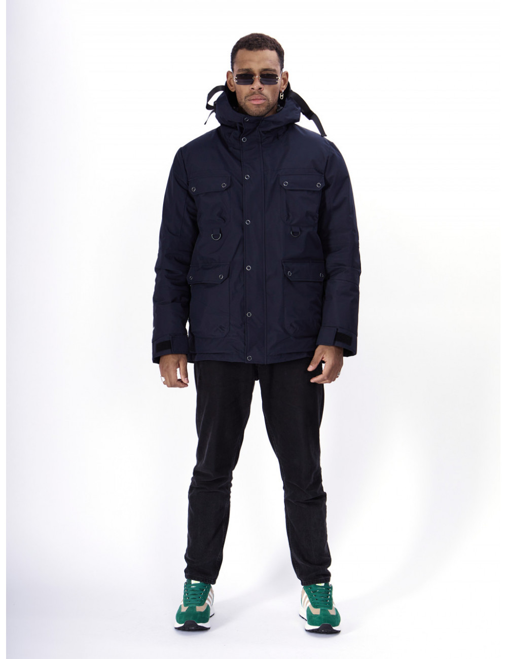 - Капюшон: несъёмный, с фиксаторами и козырьком, для дополнительной защиты от ветра и снега.