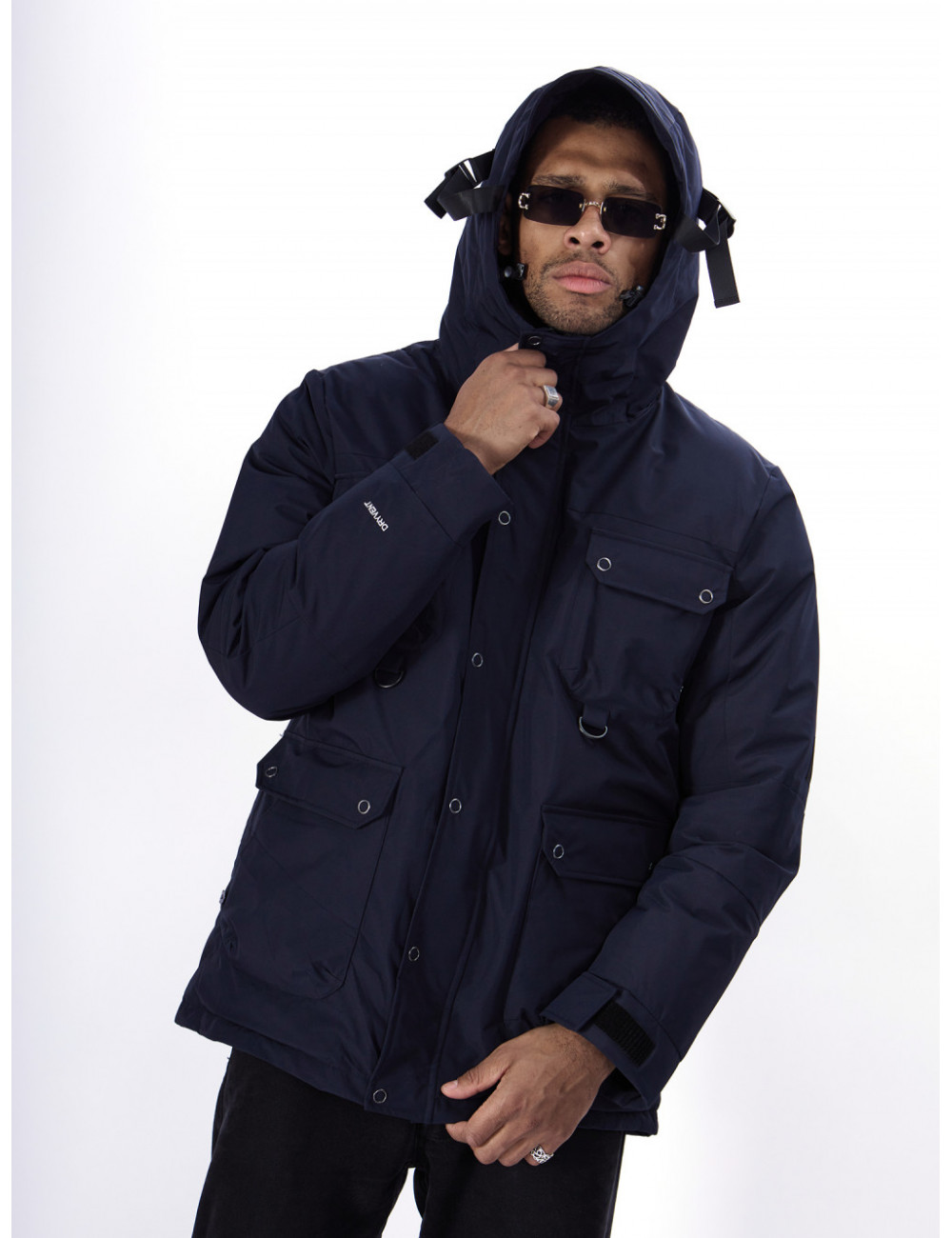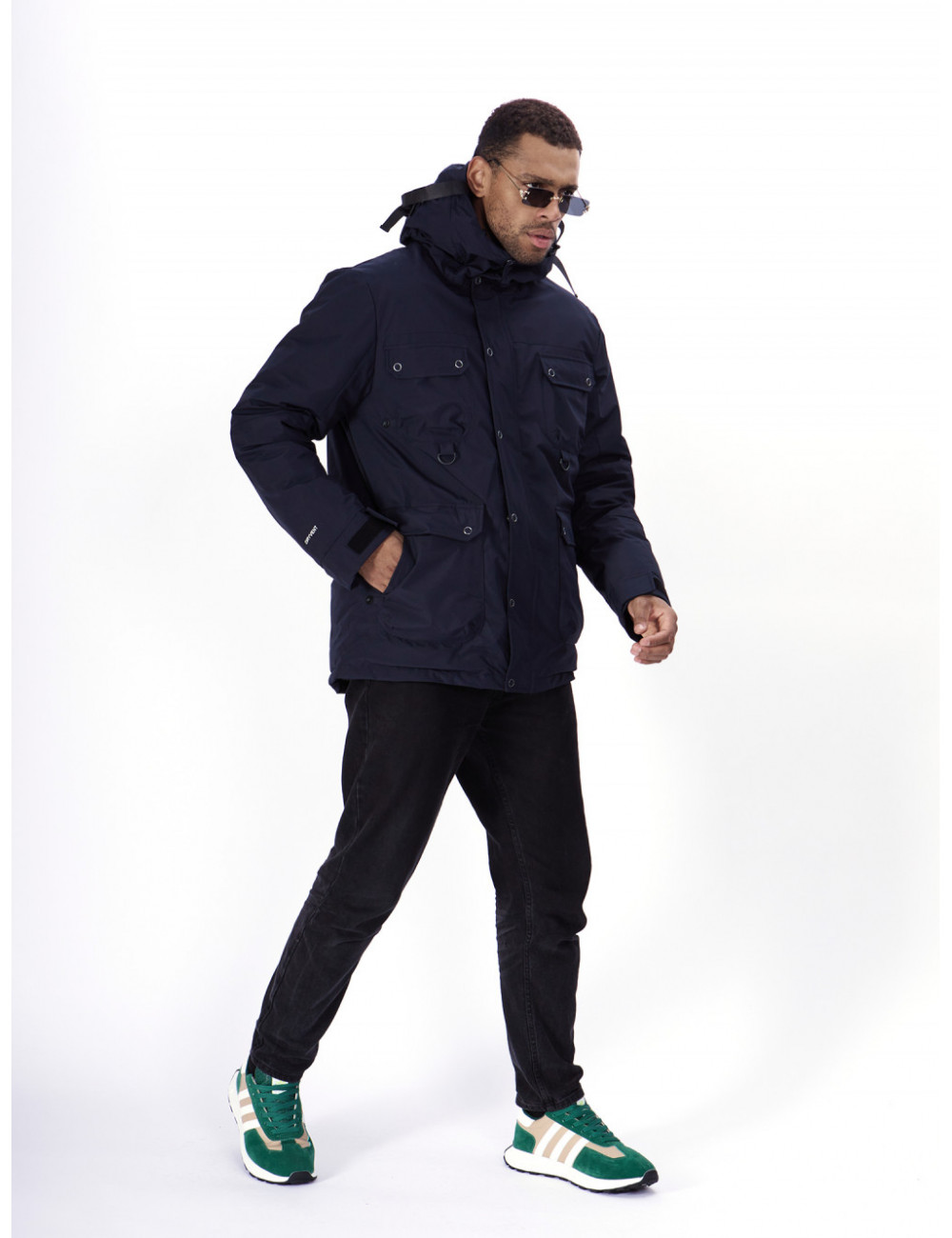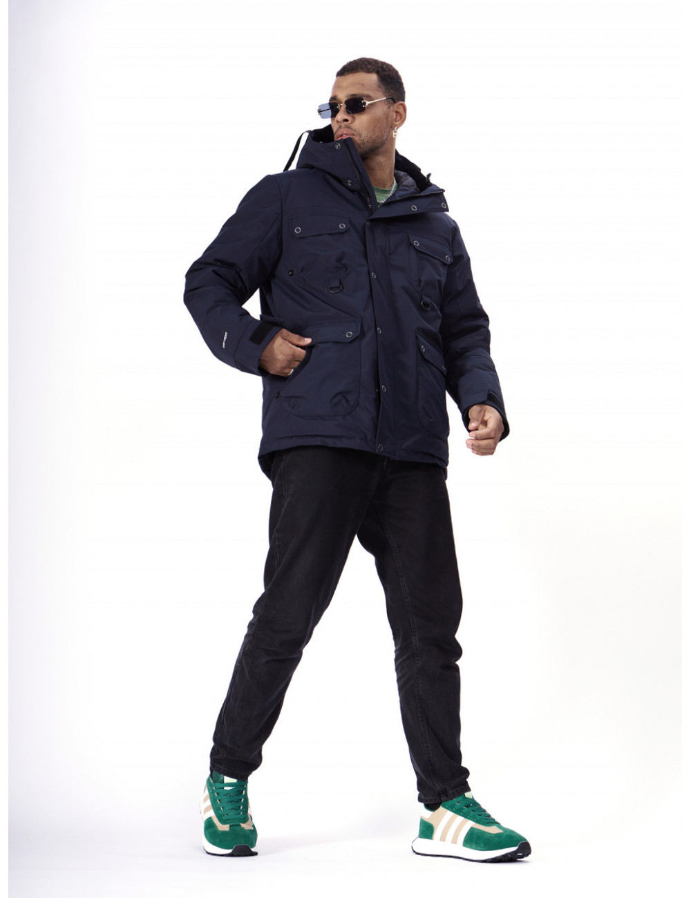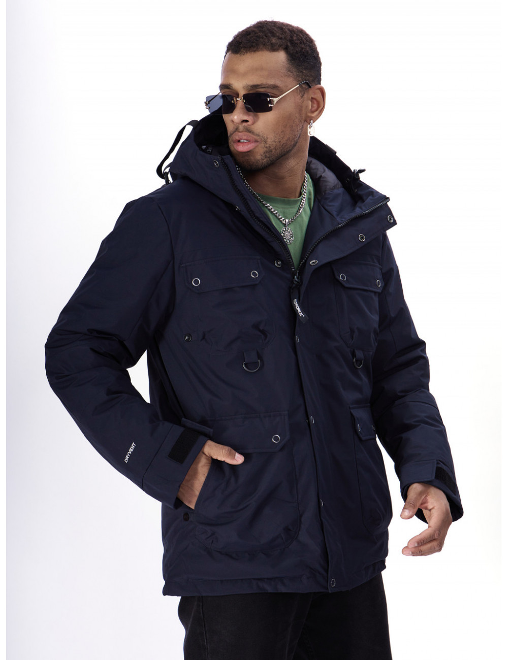 - Капюшон: несъёмный, с фиксаторами и козырьком, для дополнительной защиты от ветра и снега.