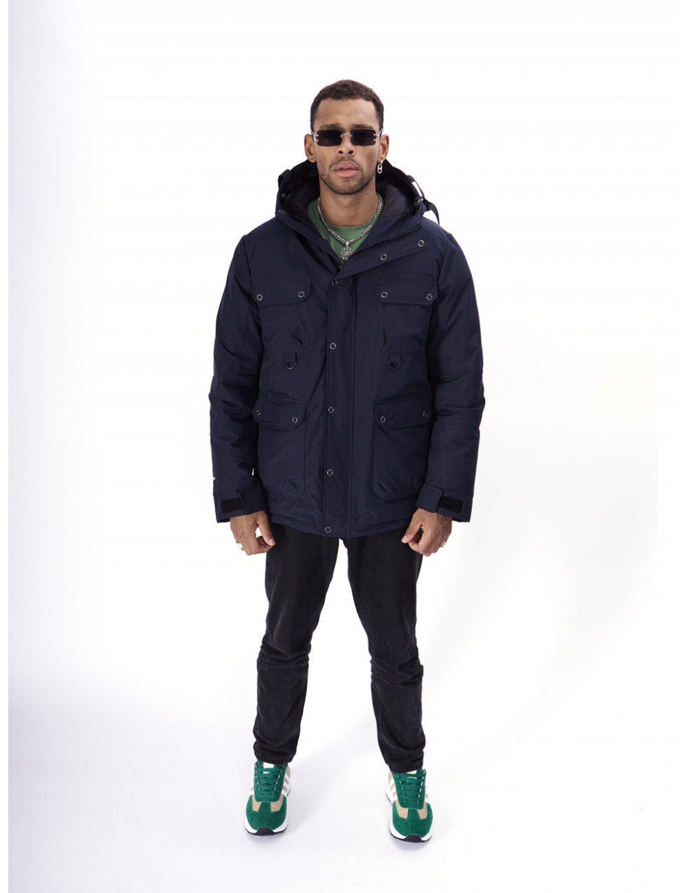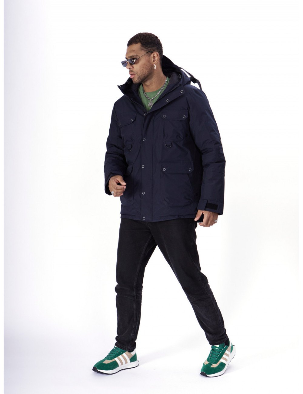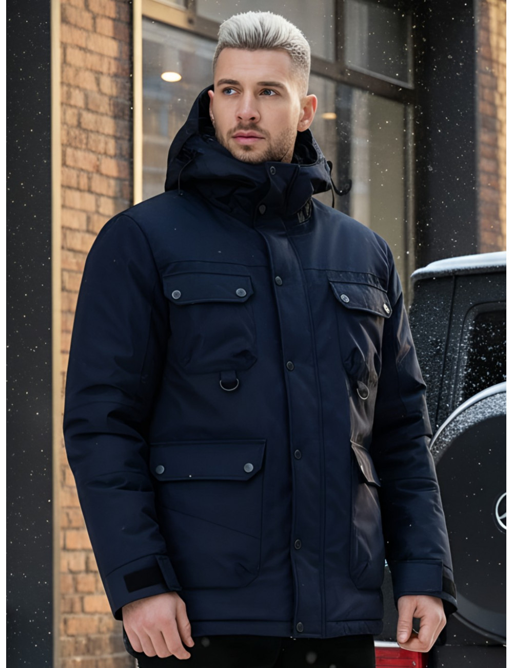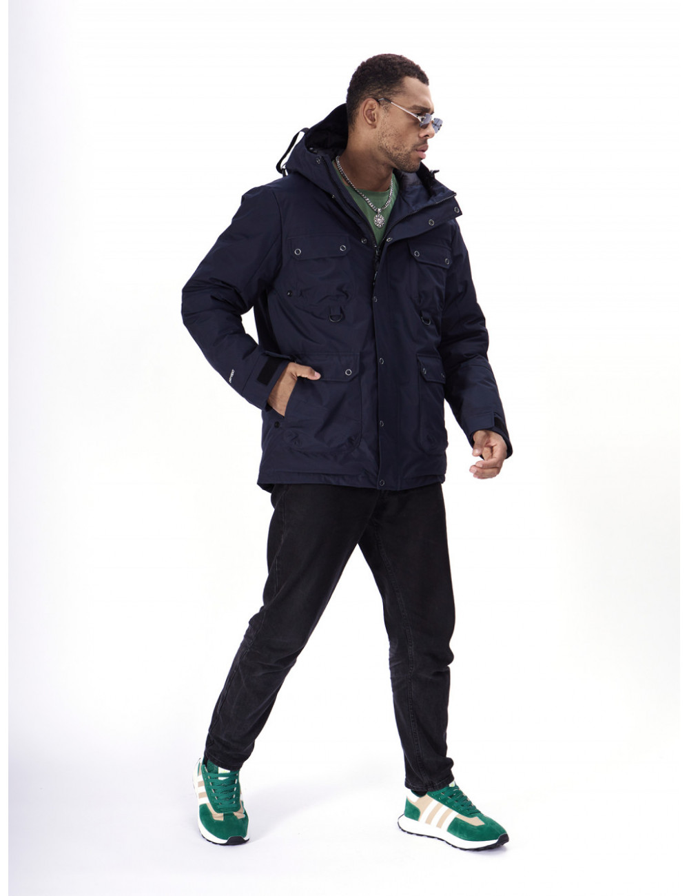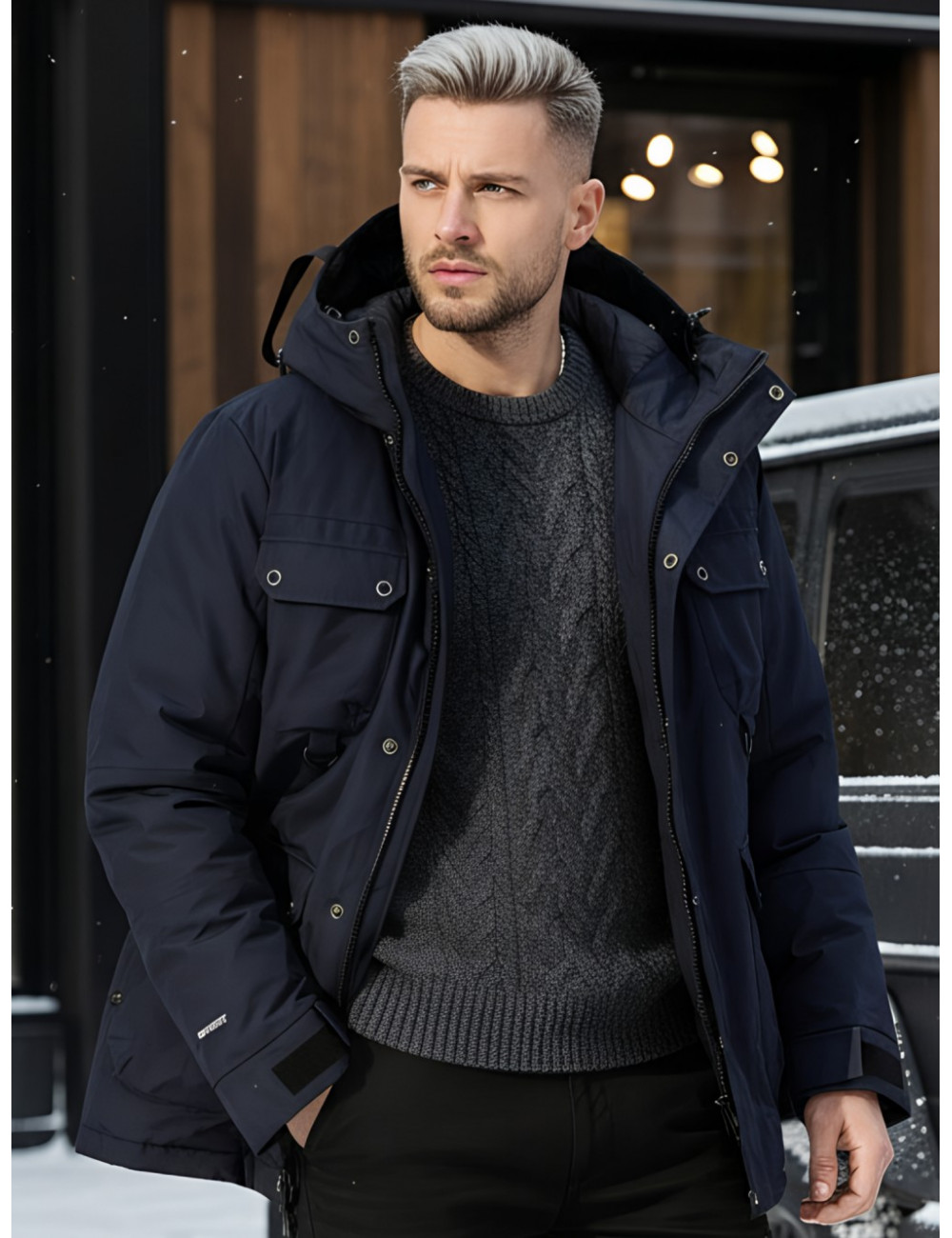 - Капюшон: несъёмный, с фиксаторами и козырьком, для дополнительной защиты от ветра и снега.