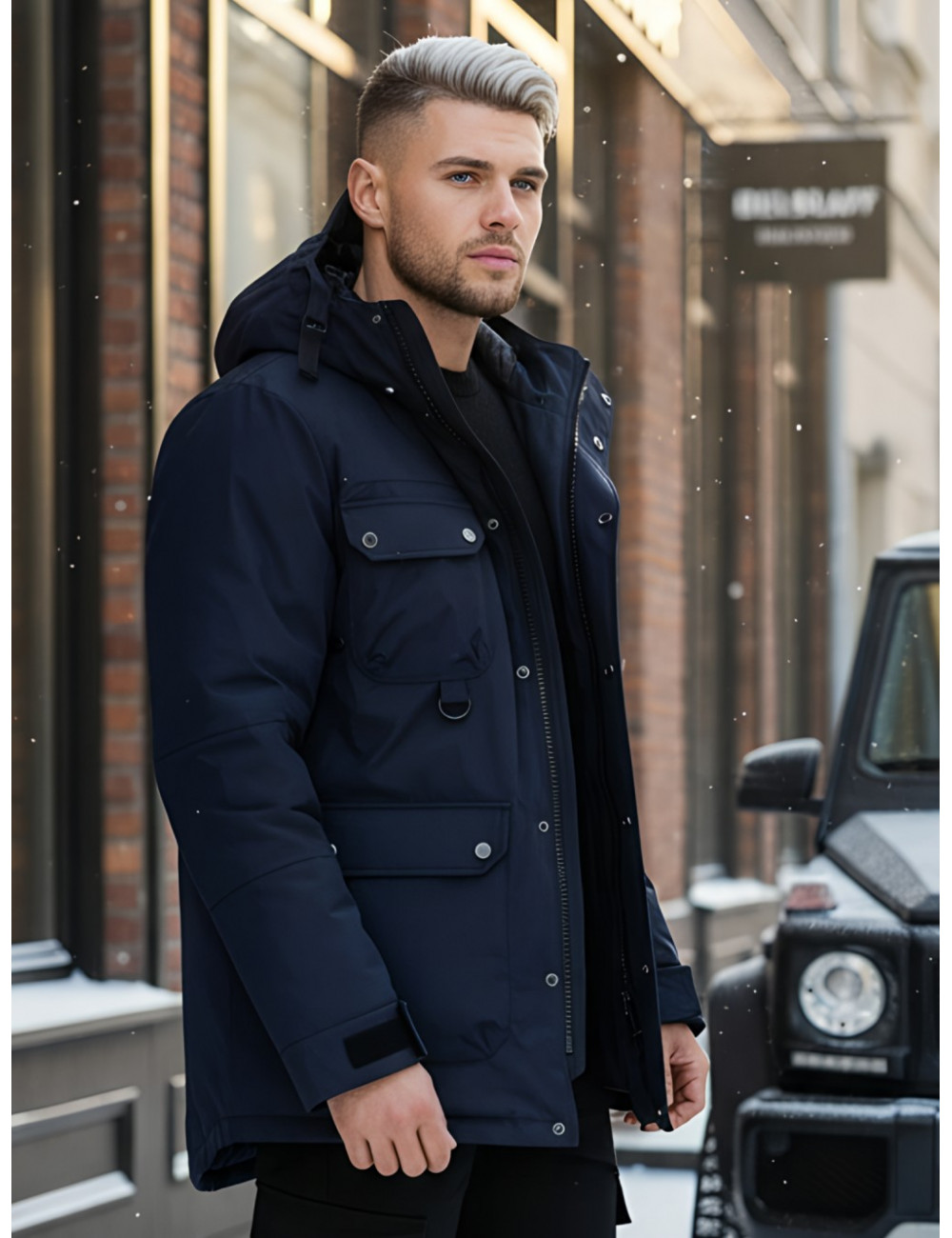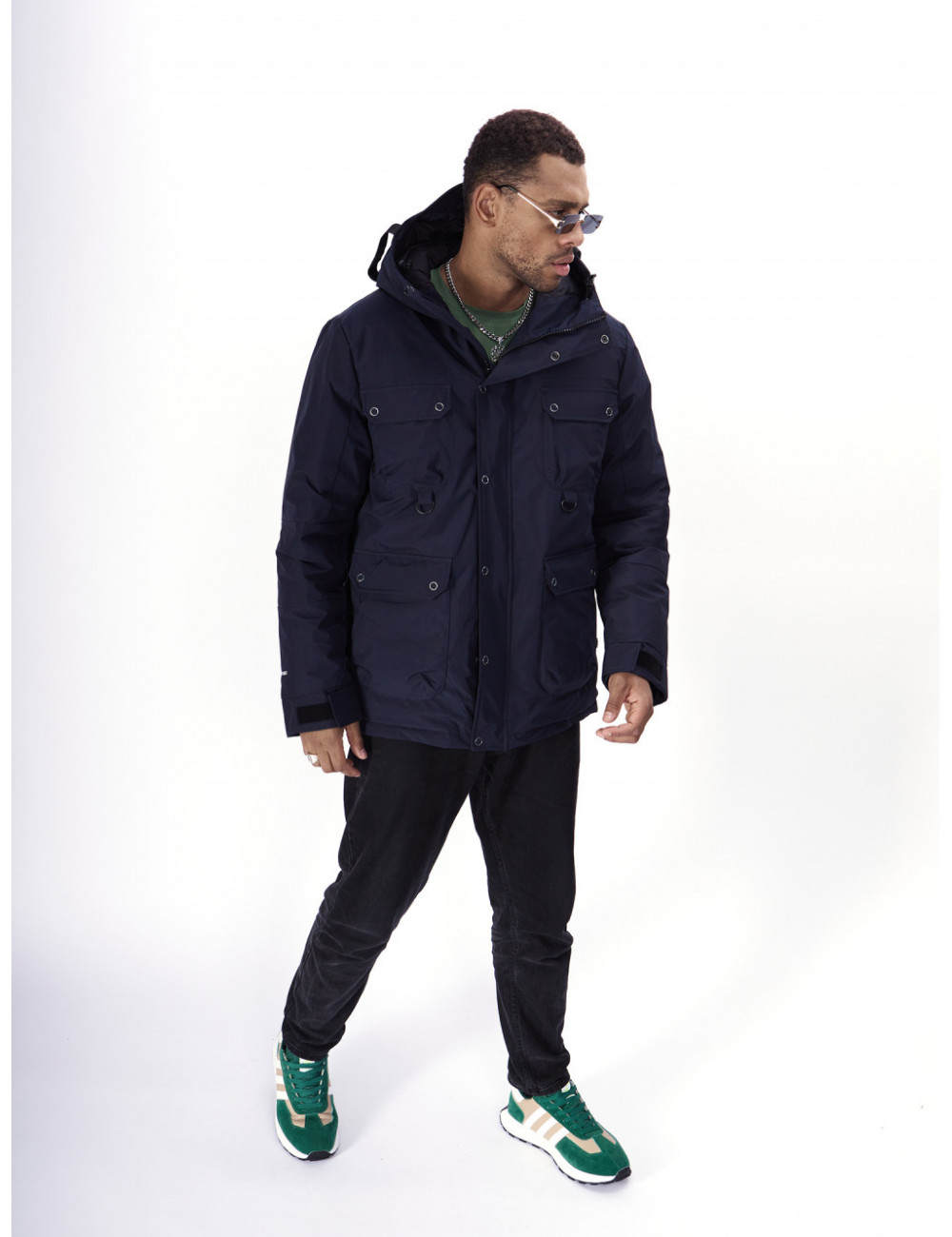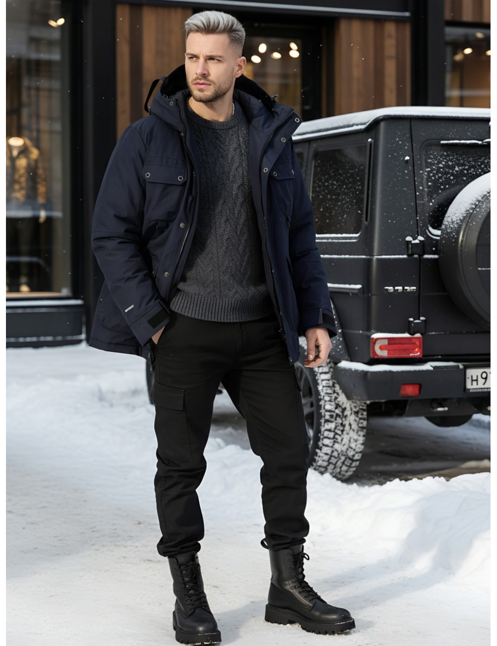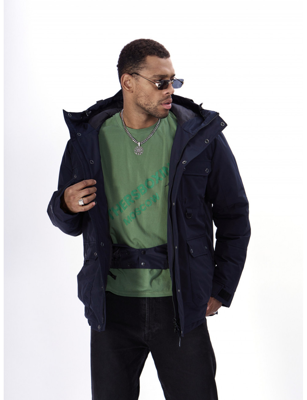- Капюшон: несъёмный, с фиксаторами и козырьком, для дополнительной защиты от ветра и снега.