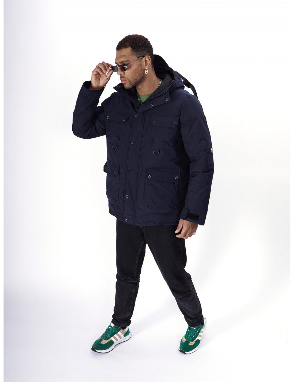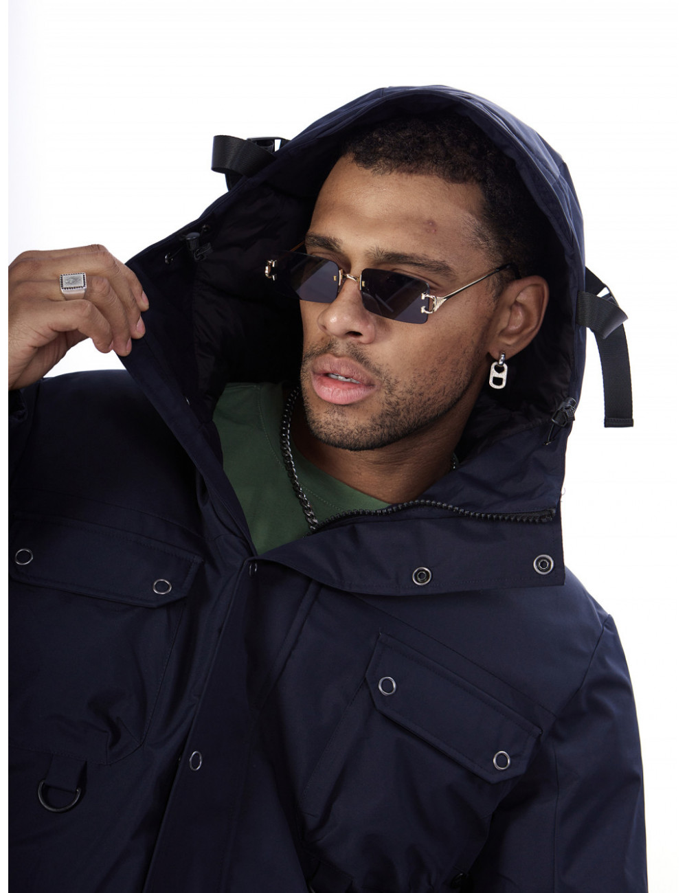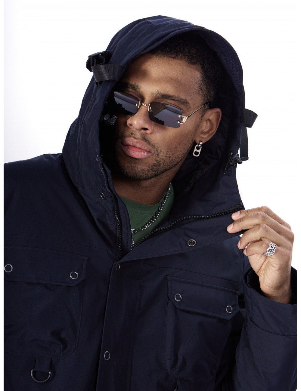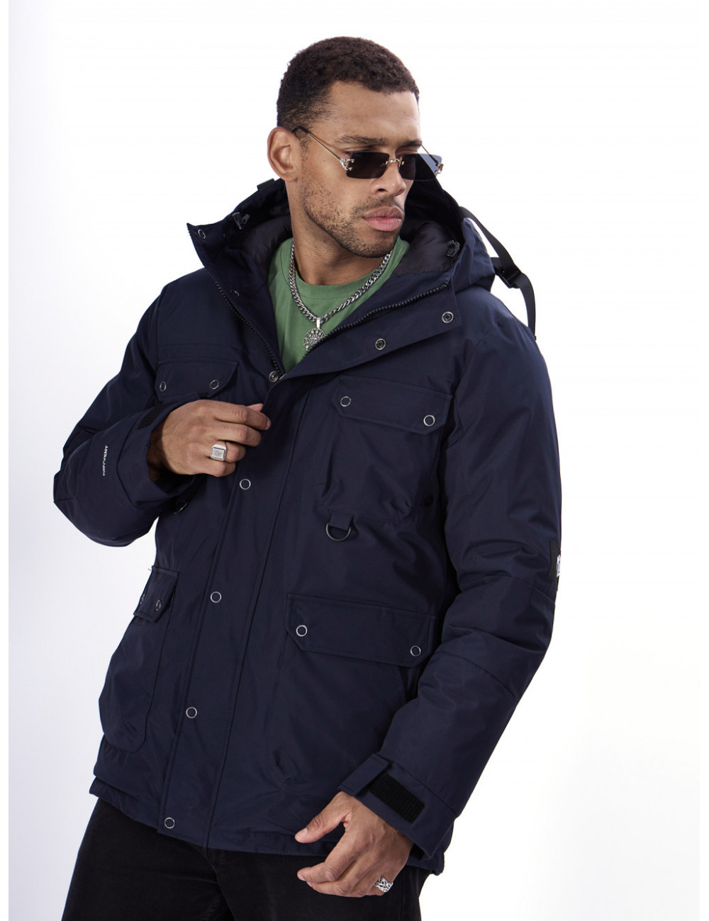 - Капюшон: несъёмный, с фиксаторами и козырьком, для дополнительной защиты от ветра и снега.