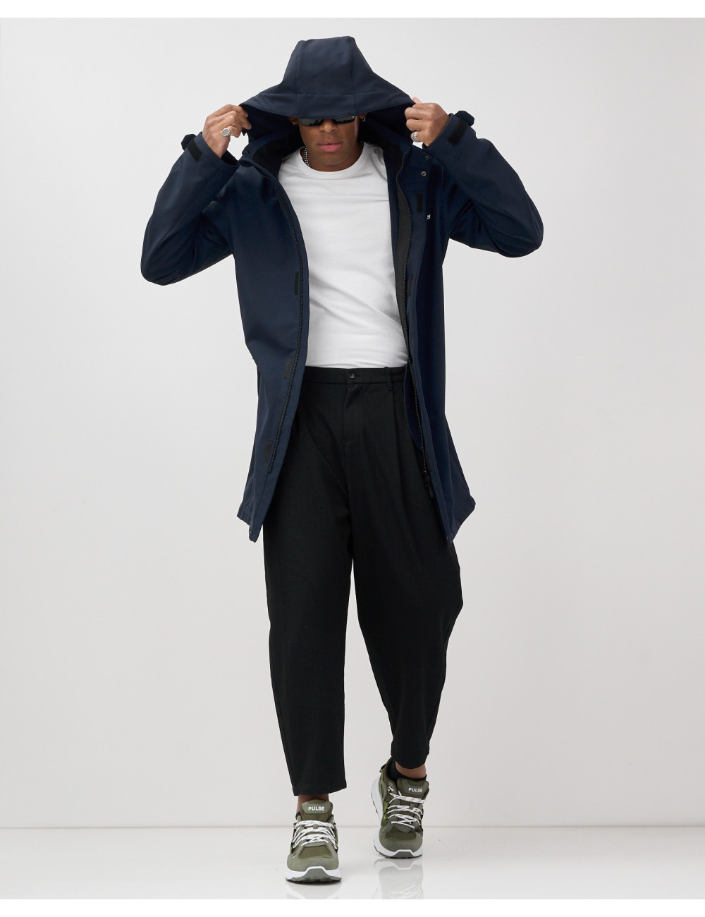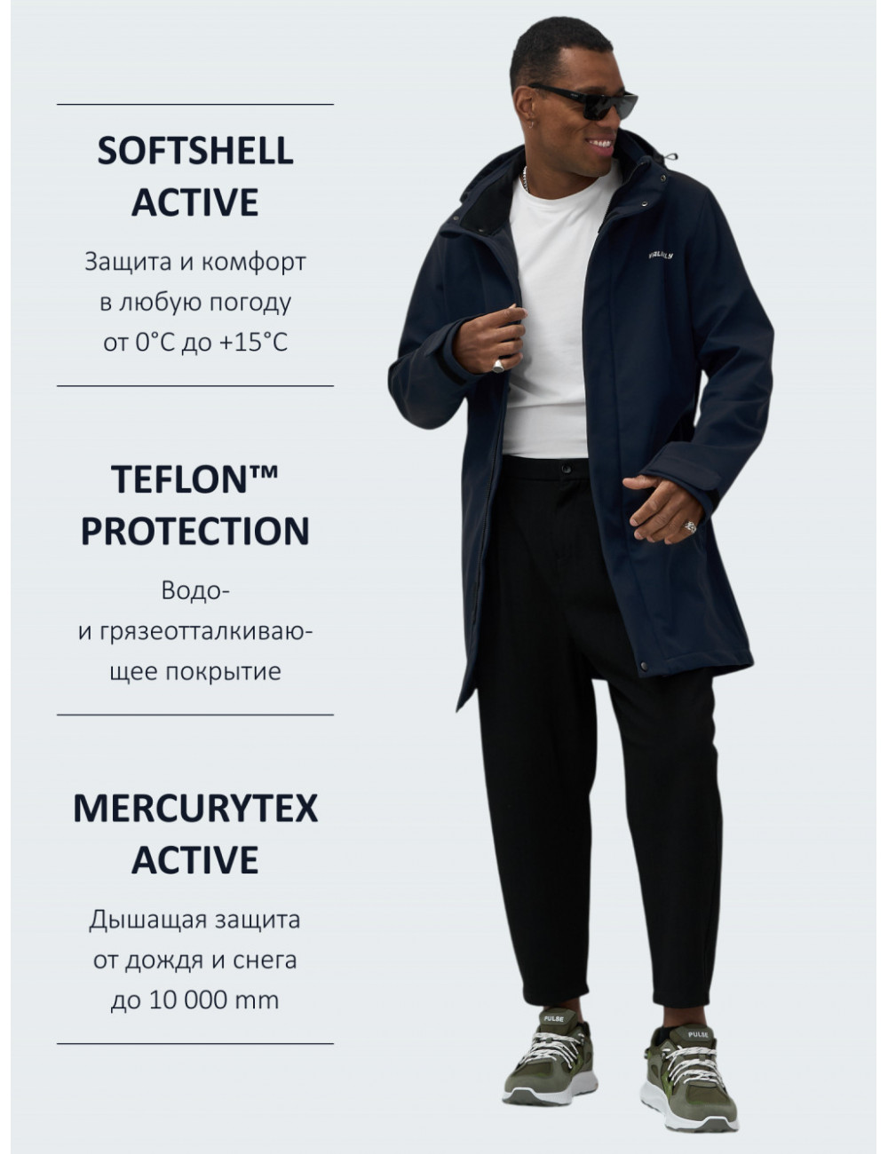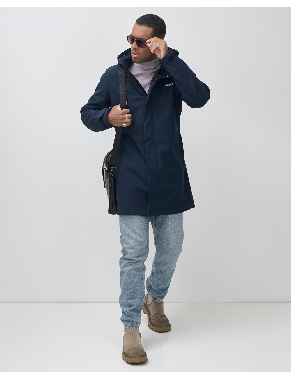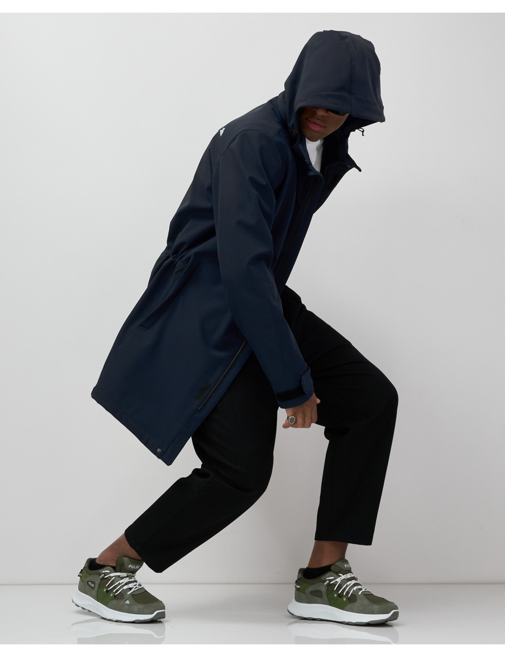 Эта спортивная парка — ваш надёжный спутник в любых условиях. Закажите её сегодня и будьте готовы к новым приключениям! Доставка по Москве и Московской области Мужская спортивная парка с капюшоном softshell тёмно-синего цвета