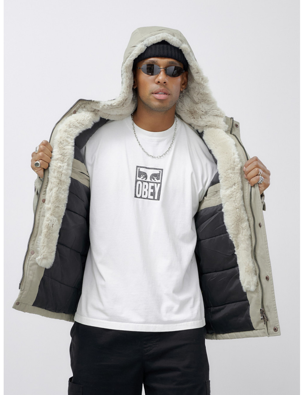 Парку можно сочетать с джинсами, спортивными брюками или утеплёнными штанами. Она будет отлично смотреться с тёплыми шапками и перчатками. Завершите образ уютными ботинками на толстой подошве для максимальной защиты от холода. Доставка по Москве и Московской области Мужская зимняя куртка с мехом бежевого оттенка