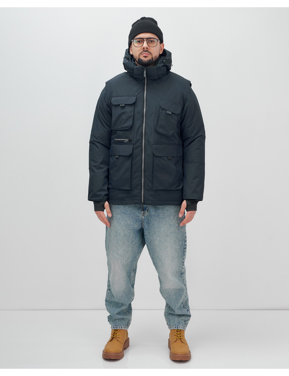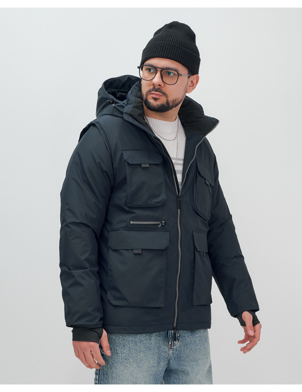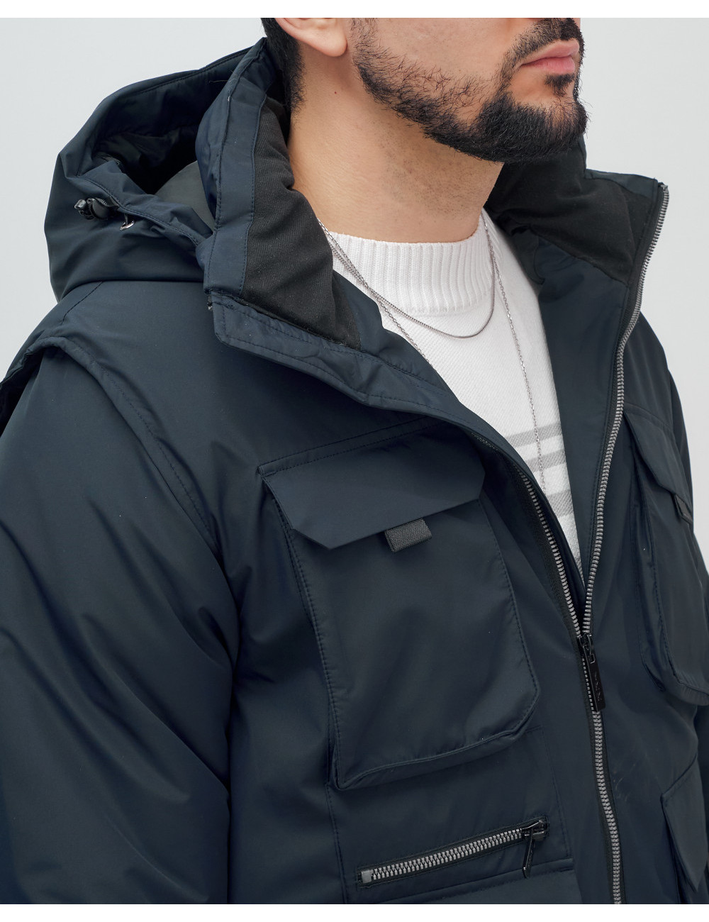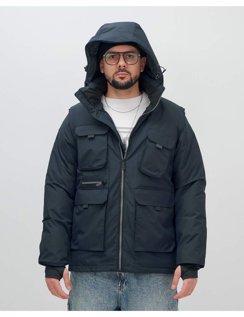 Не упустите шанс сделать свой гардероб более функциональным и стильным с нашей курткой-жилетом 2 в 1! Доставка по Москве и Московской области Мужская зимняя куртка-жилетка трансформер 2 в 1 тёмно-синего цвета