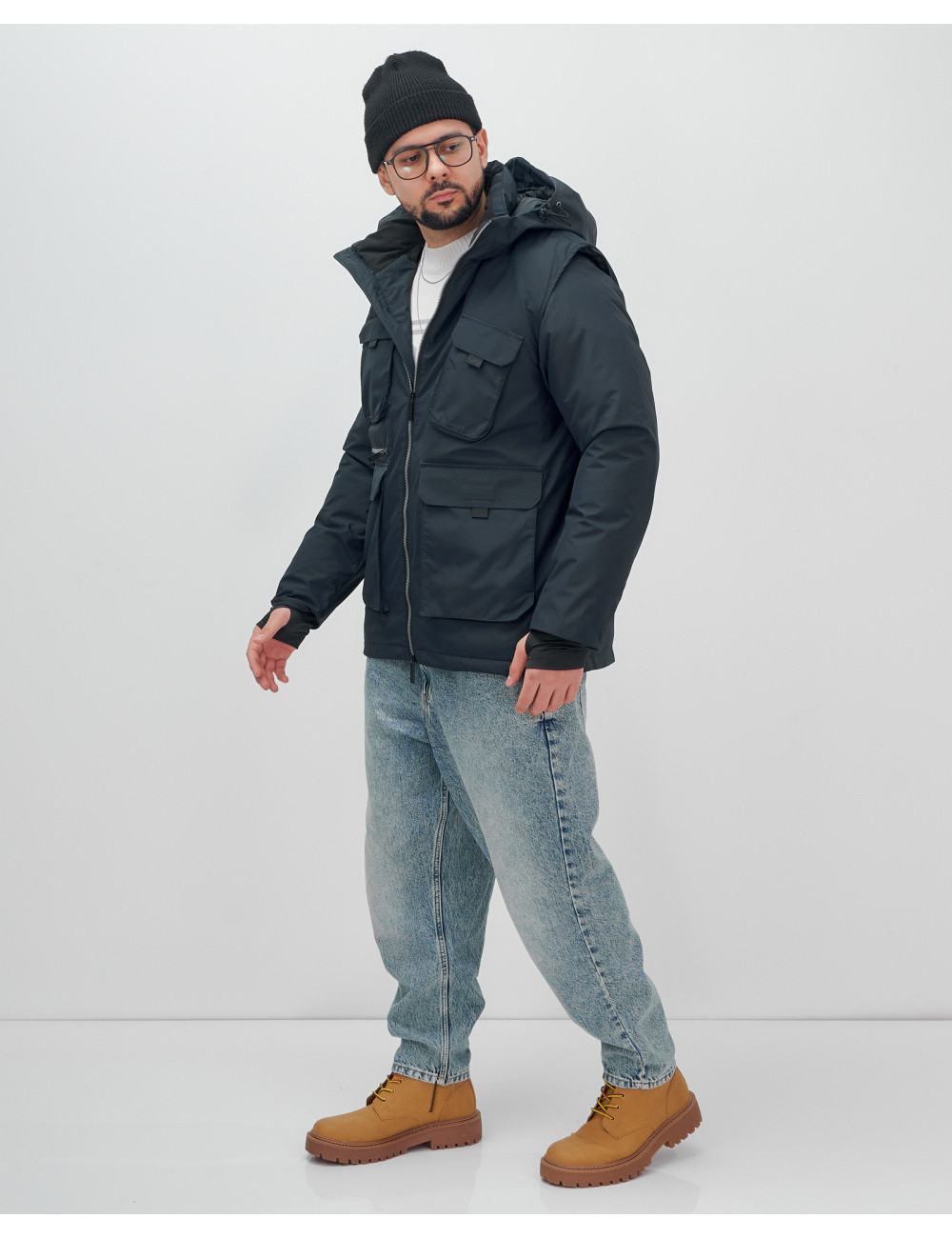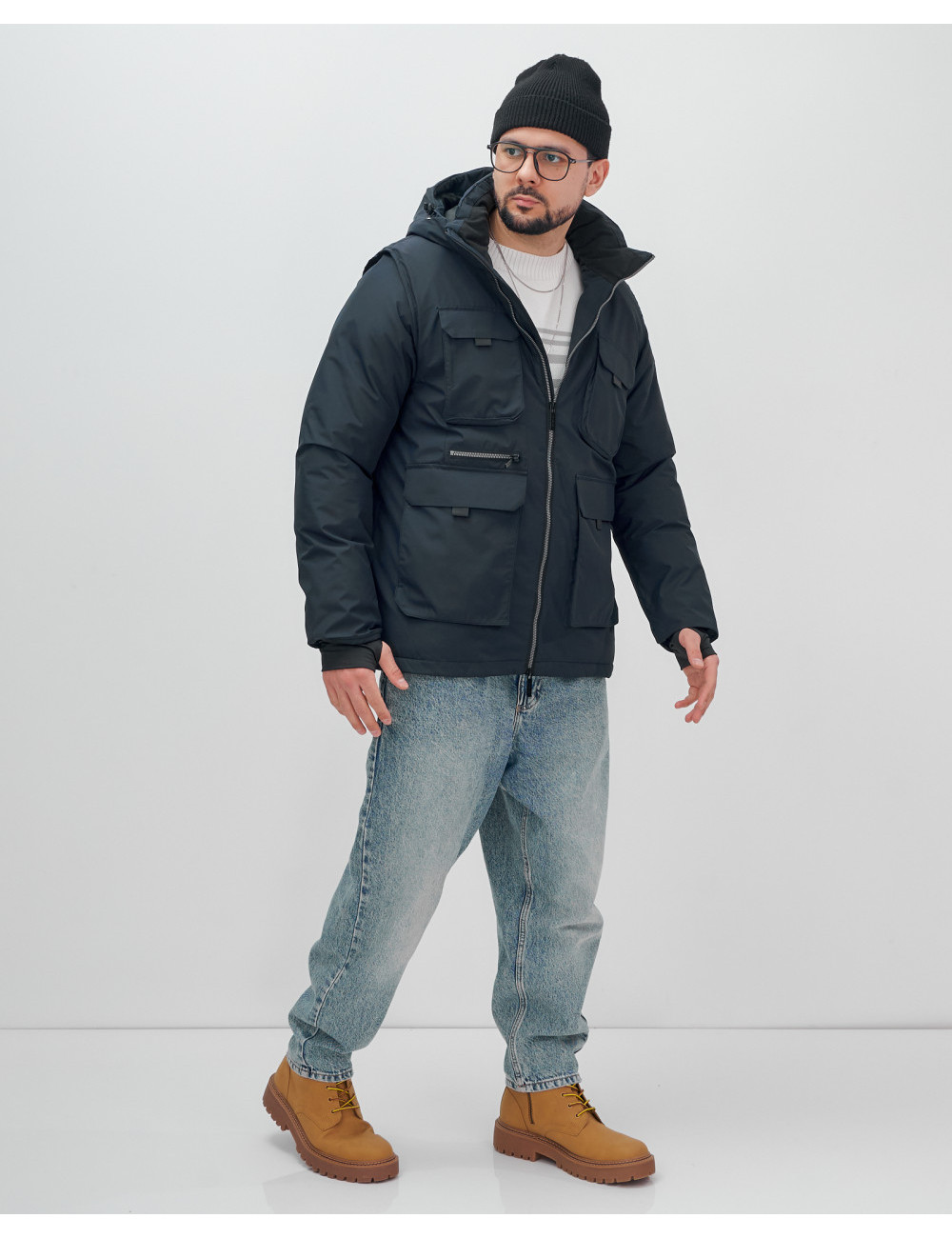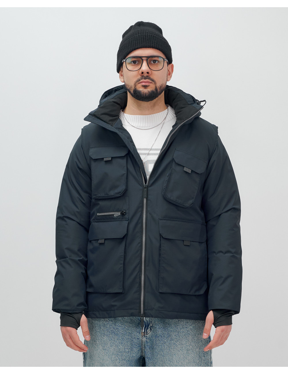 Не упустите шанс сделать свой гардероб более функциональным и стильным с нашей курткой-жилетом 2 в 1! Доставка по Москве и Московской области Мужская зимняя куртка-жилетка трансформер 2 в 1 тёмно-синего цвета