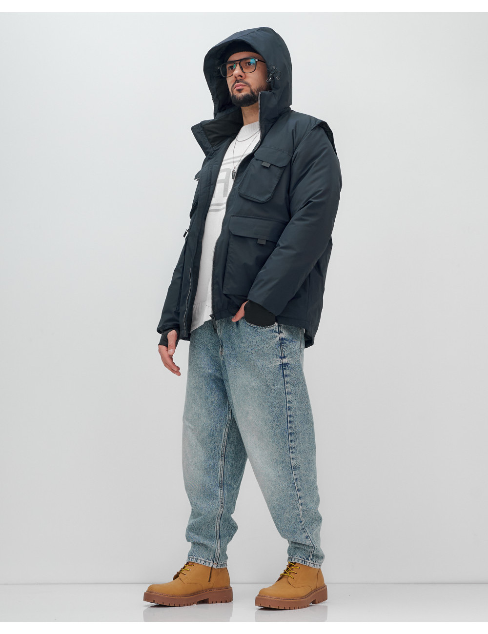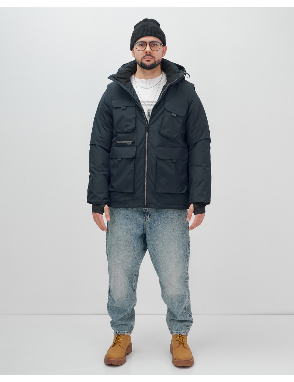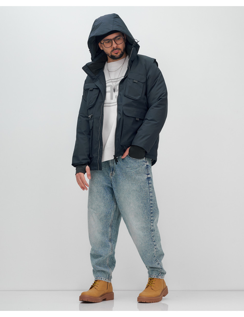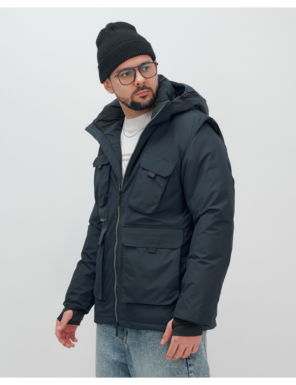 Не упустите шанс сделать свой гардероб более функциональным и стильным с нашей курткой-жилетом 2 в 1! Доставка по Москве и Московской области Мужская зимняя куртка-жилетка трансформер 2 в 1 тёмно-синего цвета