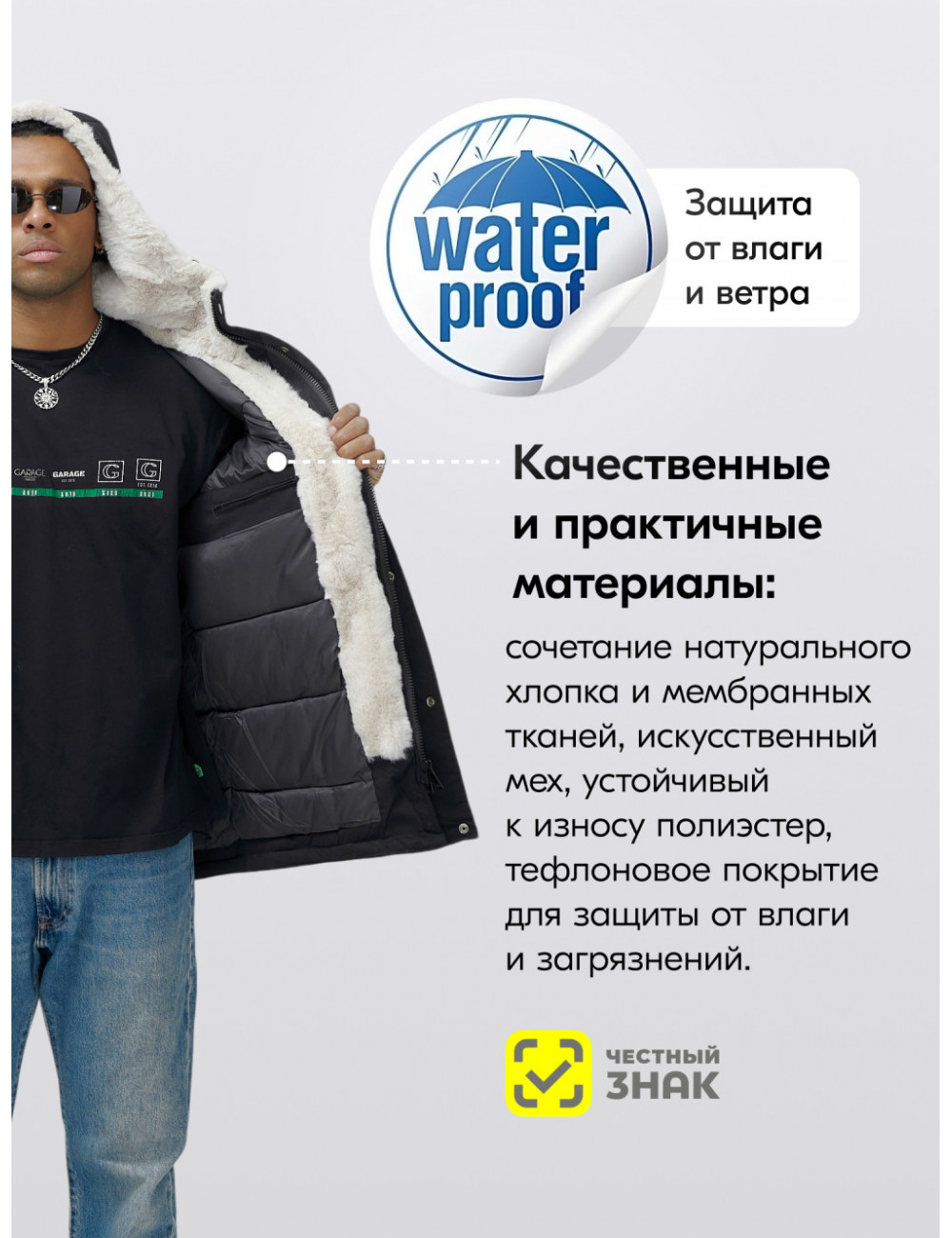 Длина ниже бедра: парка надёжно закрывает спину и защищает от пронизывающего ветра, обеспечивая максимальный комфорт в холодные дни.