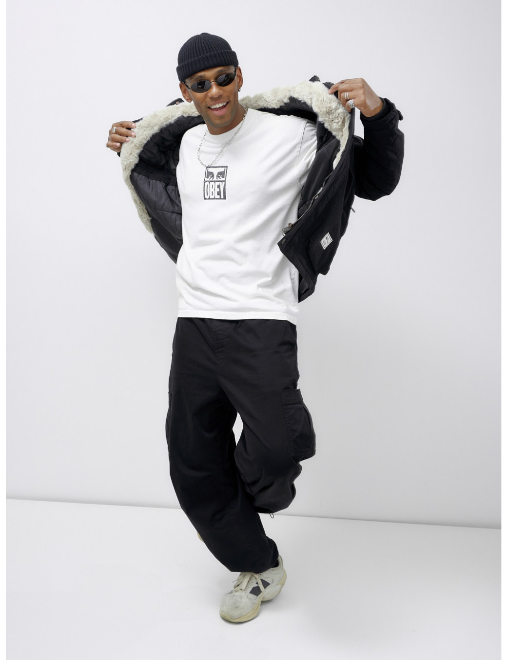 Крупная молния с двойным замком и ветрозащитная планка на кнопках обеспечивают не только защиту, но и стильный вид. Накладной карман на молнии на левом плече и вышитая надпись на груди добавляют индивидуальности.