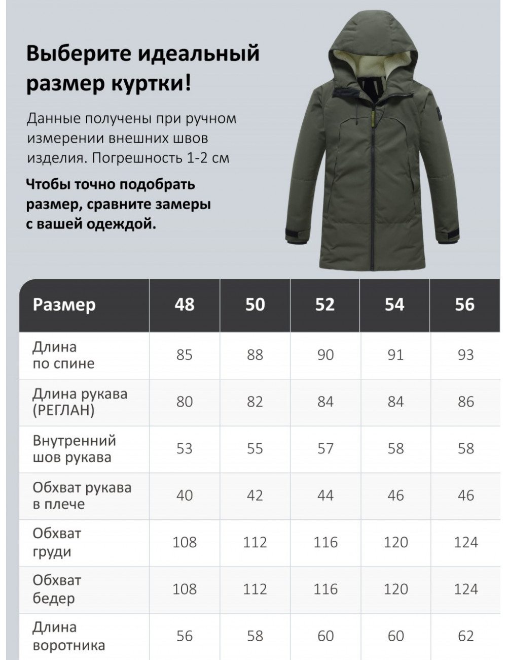 Помните, что допустимые отклонения от фактических замеров могут составить не более ±0,5 см. Доставка по Москве и Московской области Зимняя мужская парка с капюшоном хаки, для активного отдыха