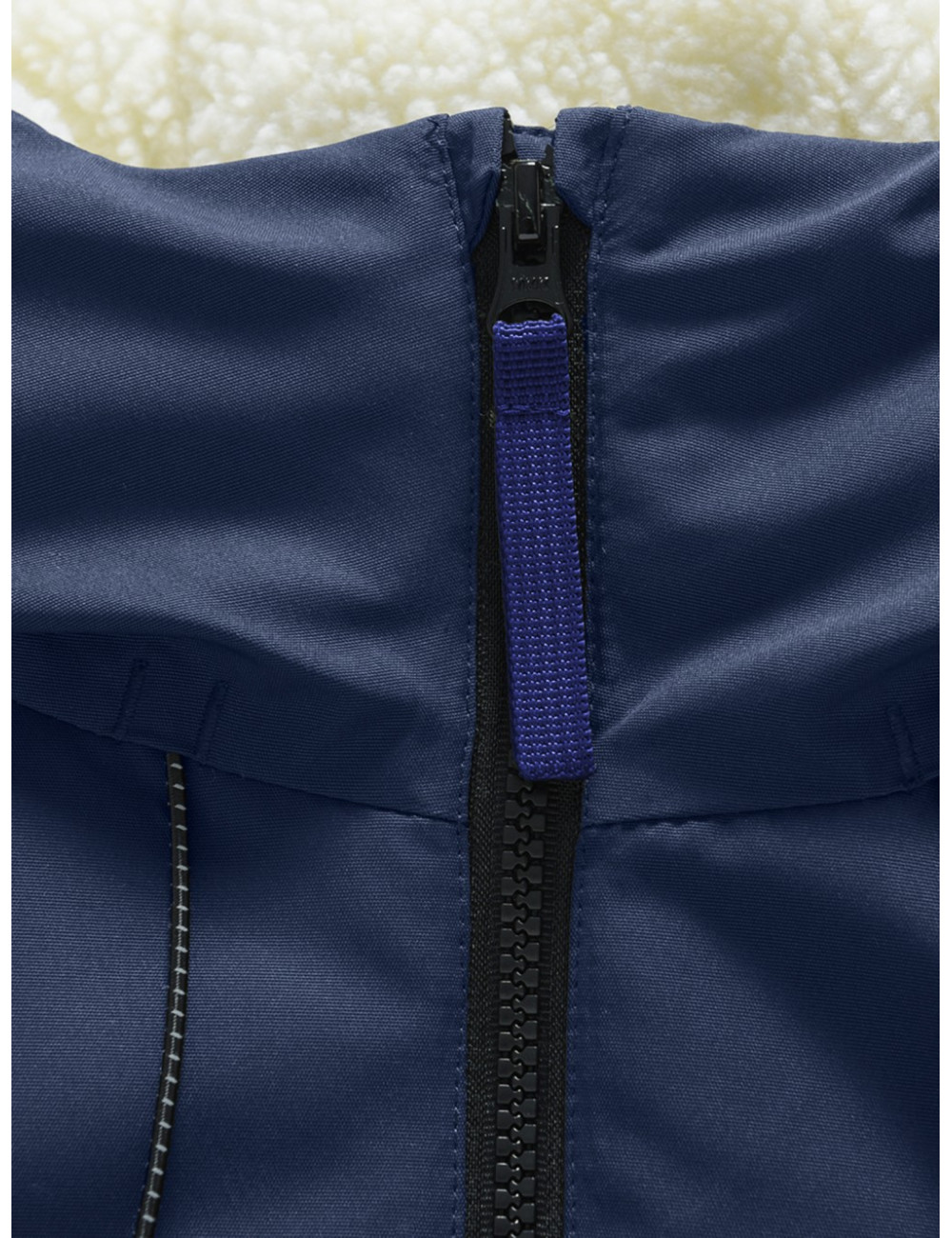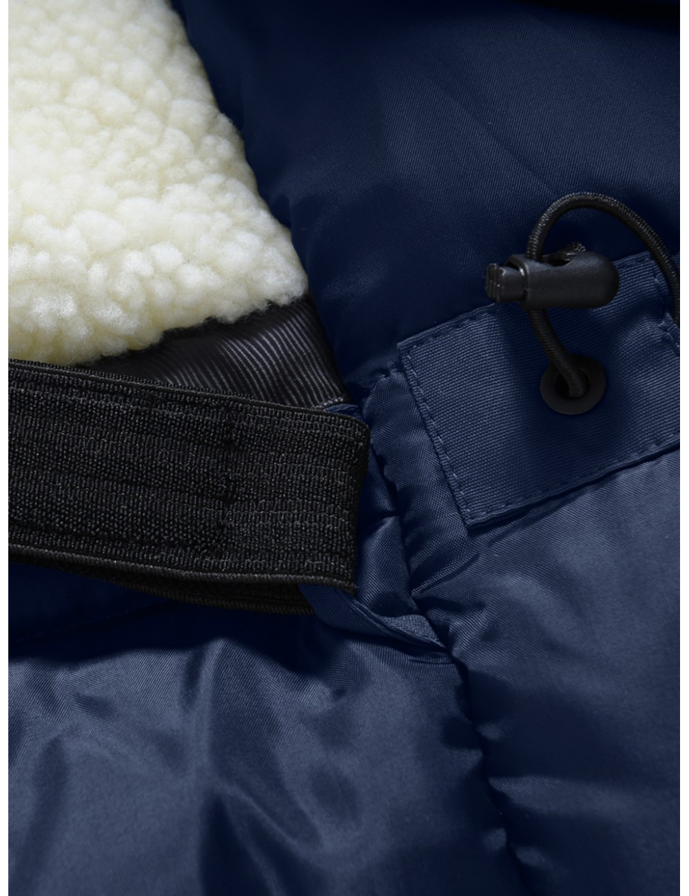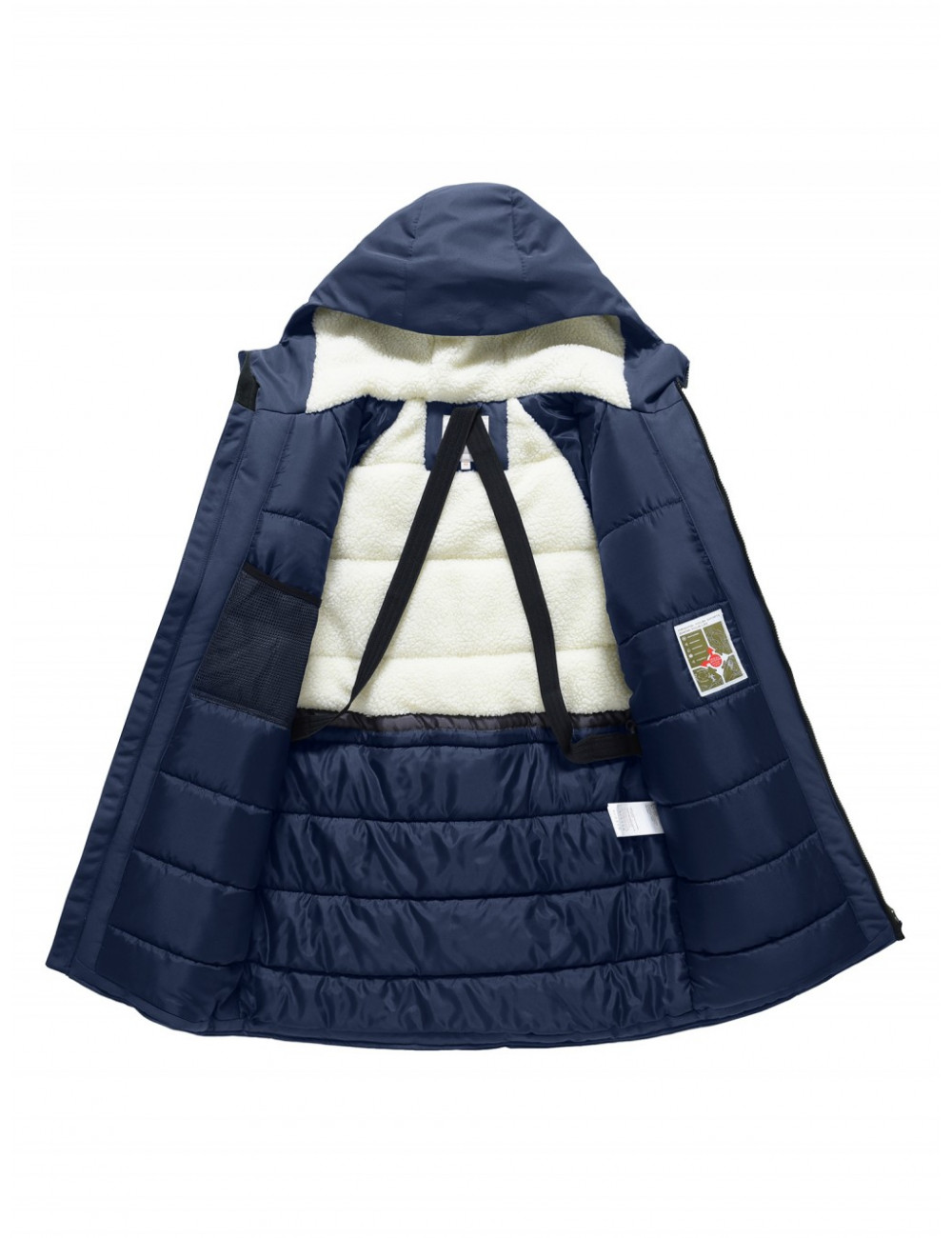 - Внутренняя подкладка из овчины, полиэстера и флиса делает парку тёплой и уютной.